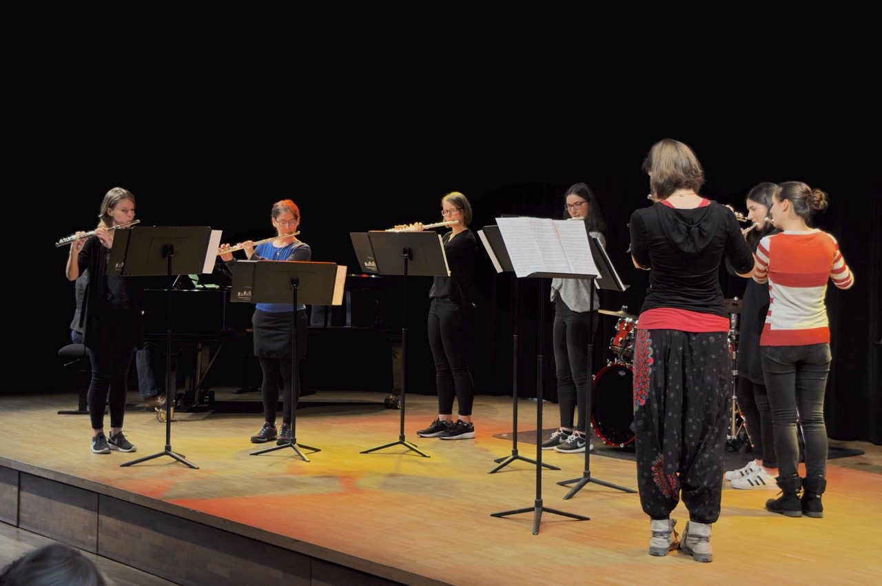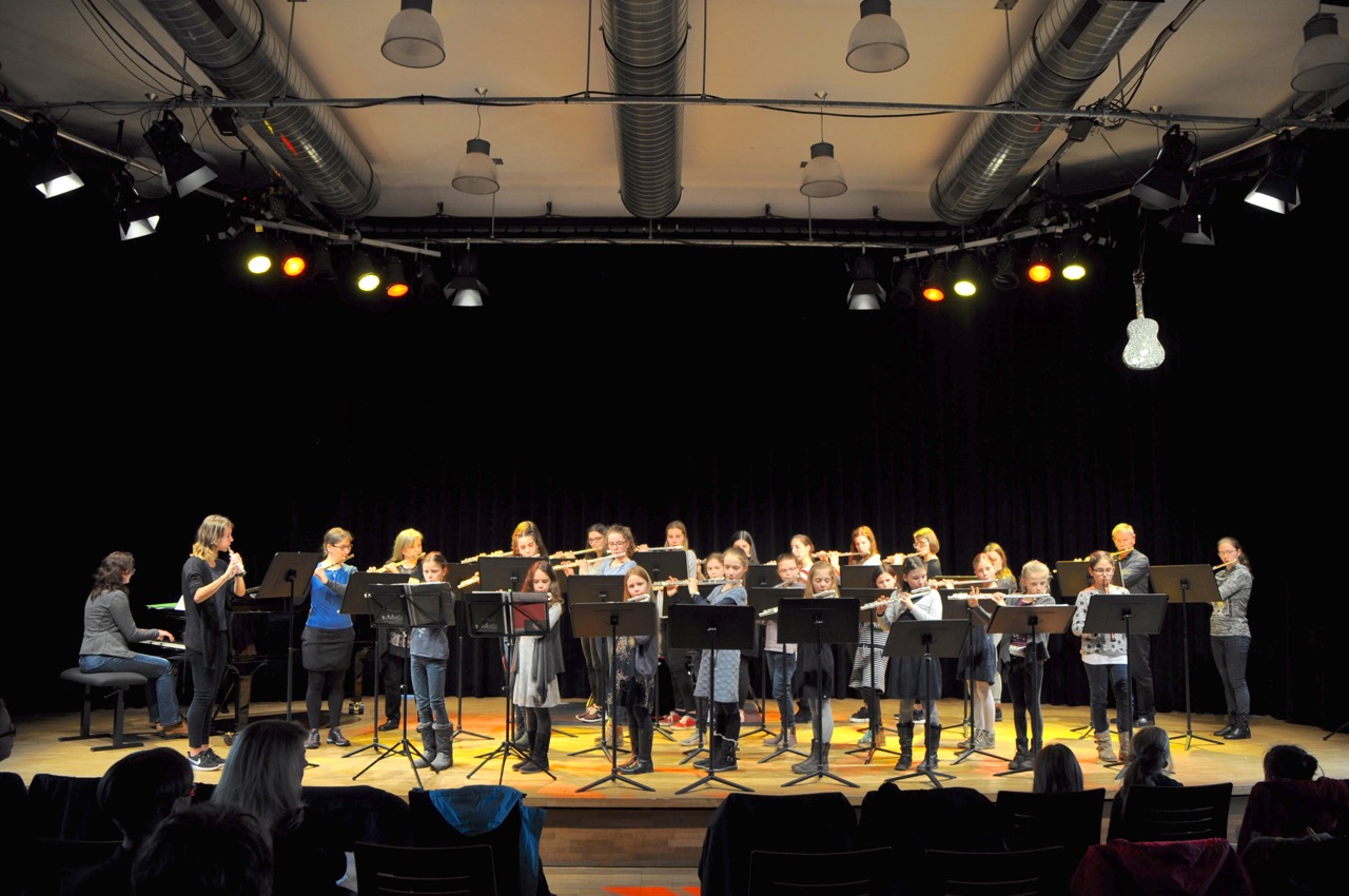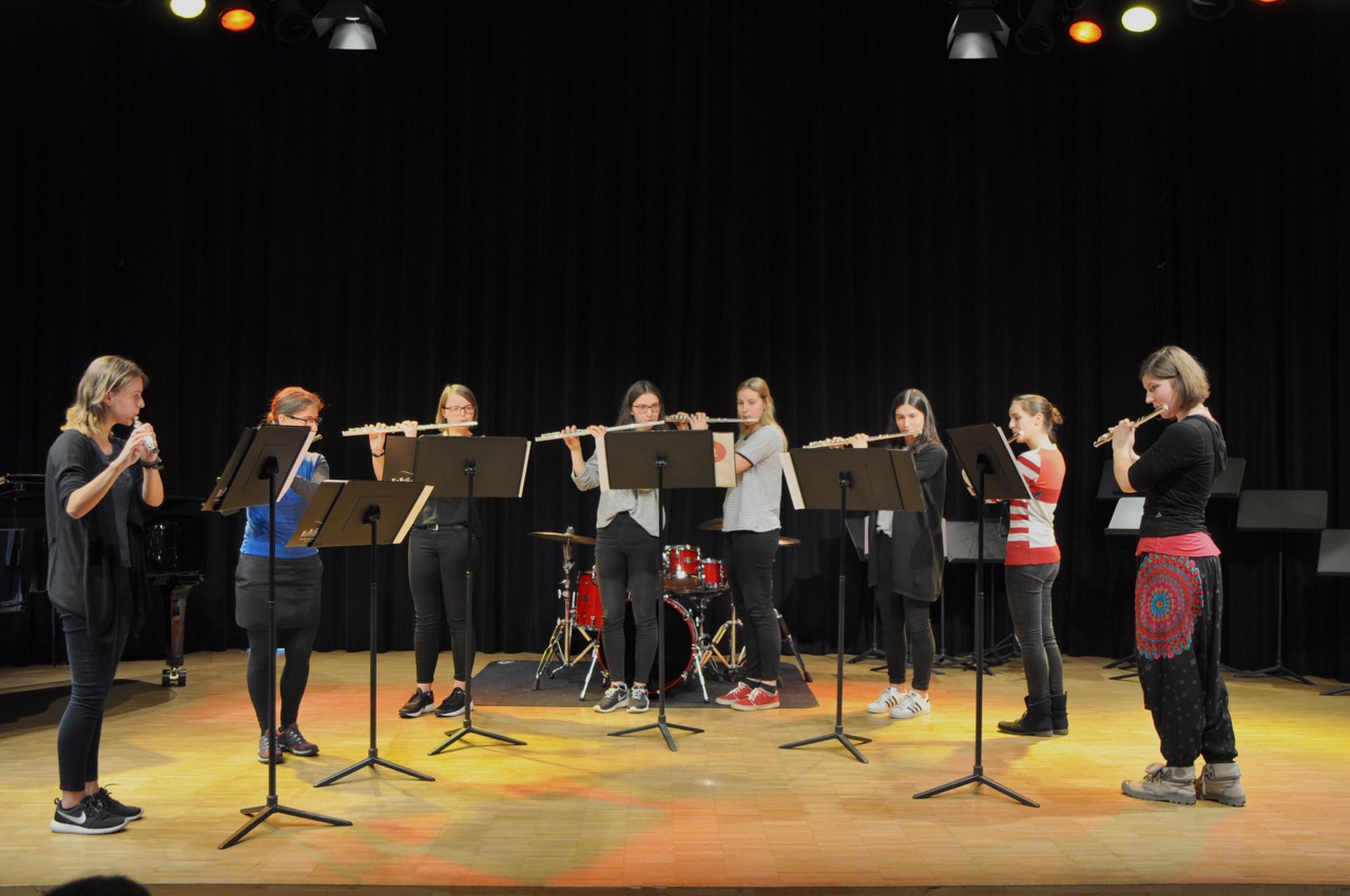 Heute fand in der Musikschule Fürth das Klassenvorspiel der Flötenklassen von Marias Lehrerin statt, bei dem auch Maria bei einer Reihe von Stücken mitgespielt hat.