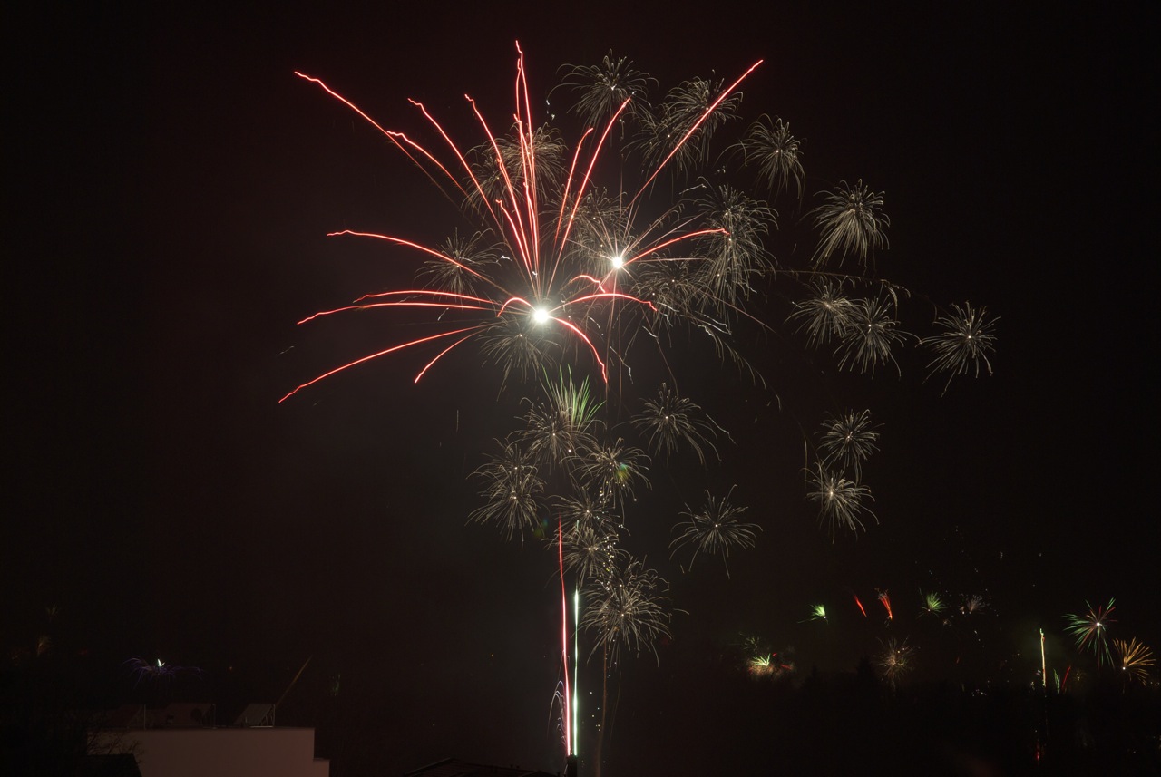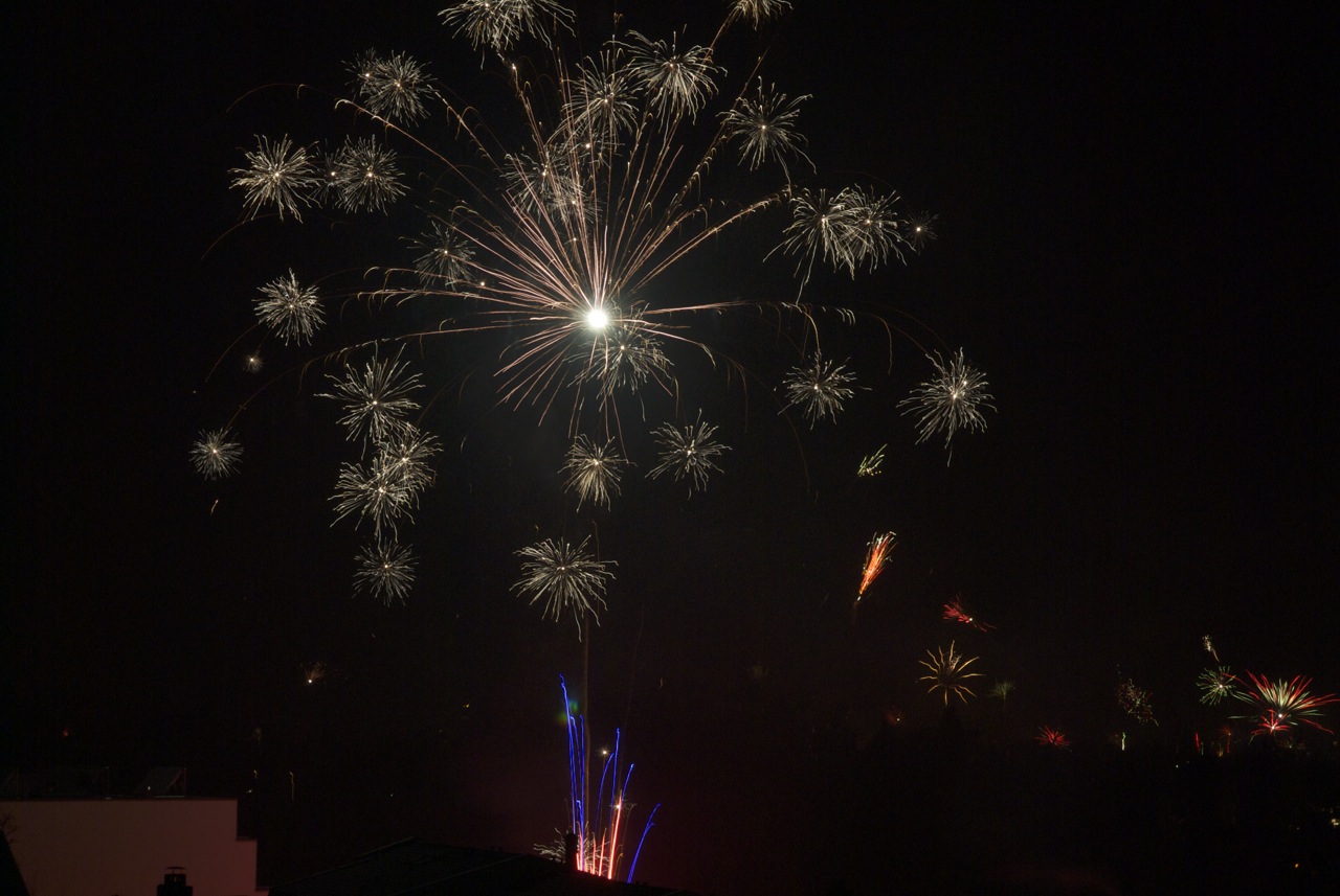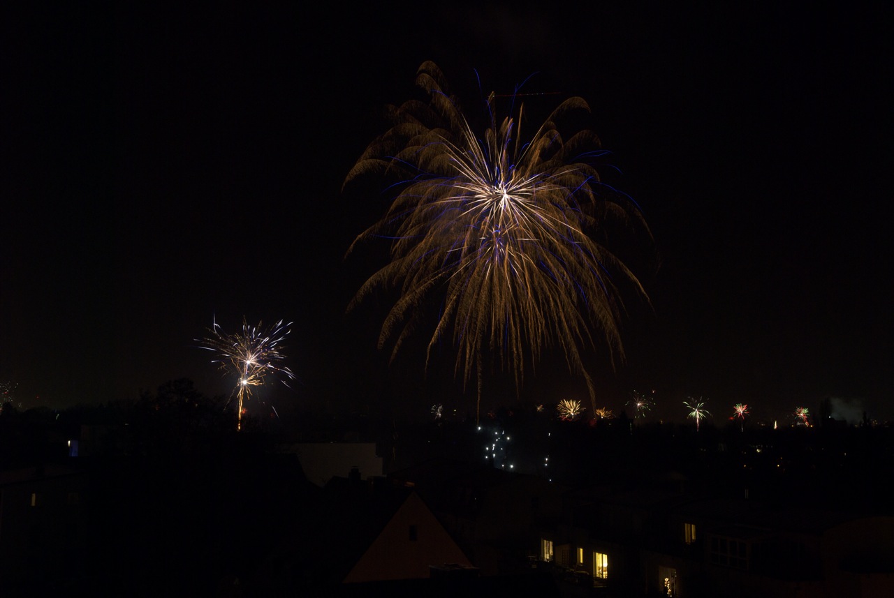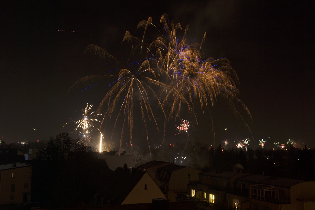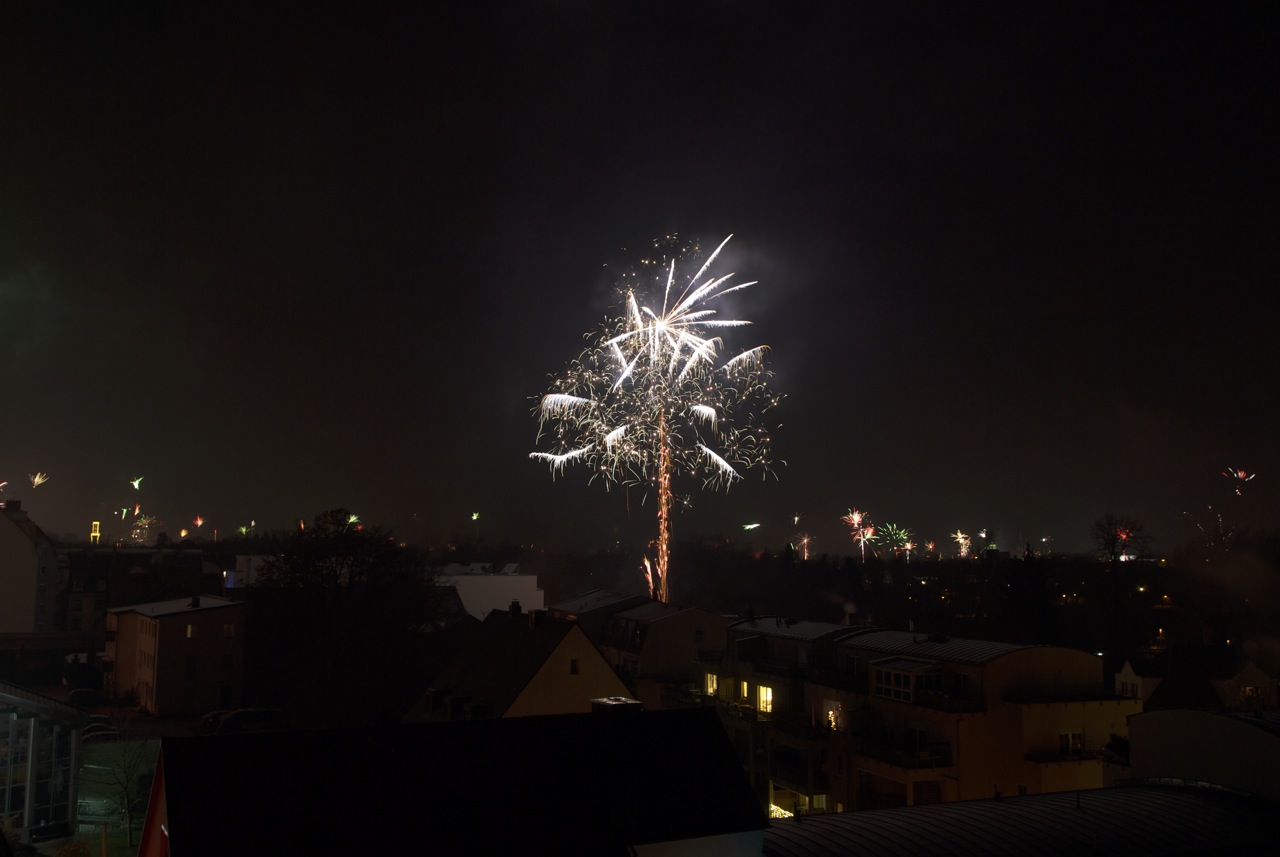 Wir wünschen alles Gute im neuen Jahr mit ein paar Fotos vom Silvesterfeuerwerk über Fürth aus der vergangenen Nacht von der Dachterrasse unserer Wohnung.