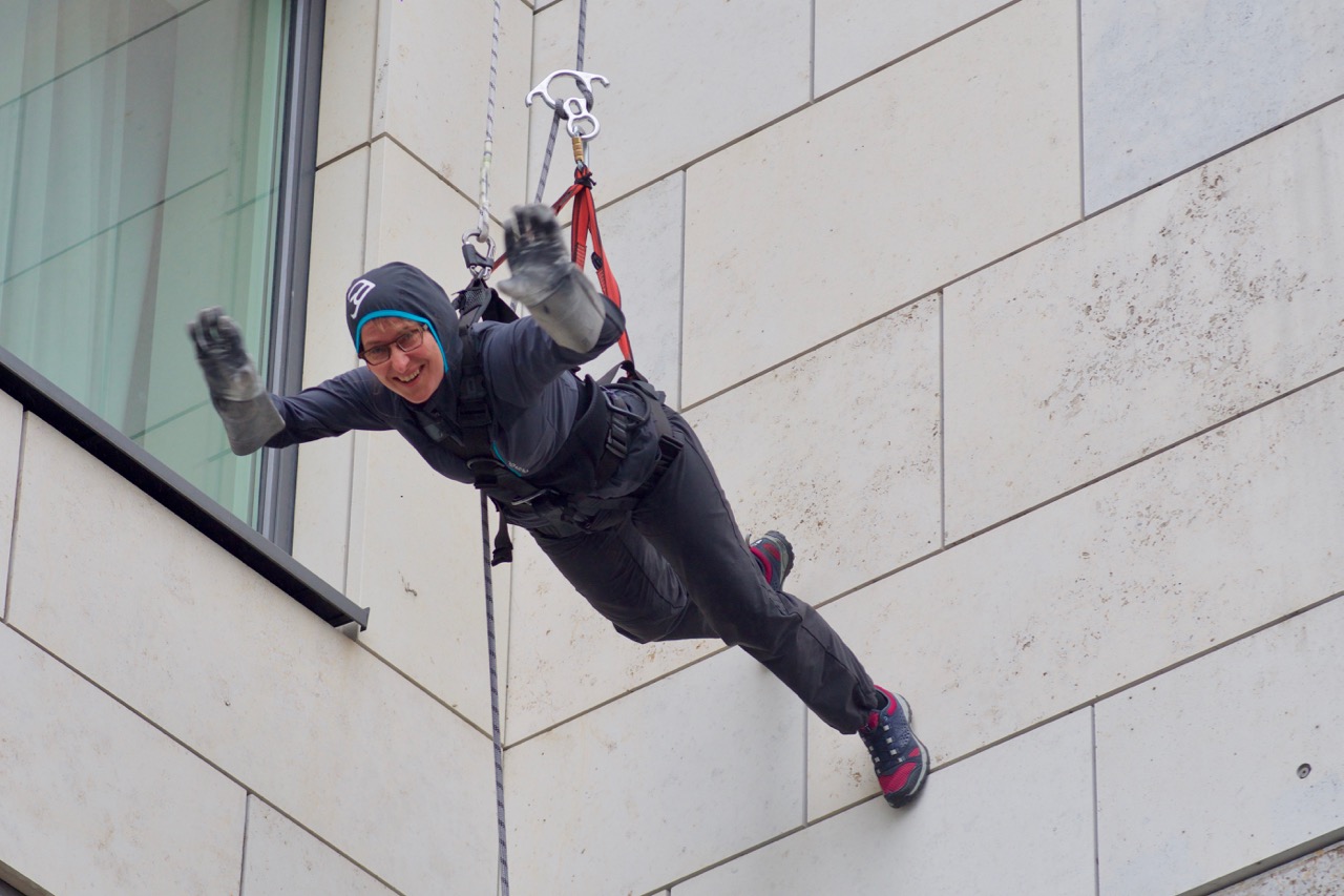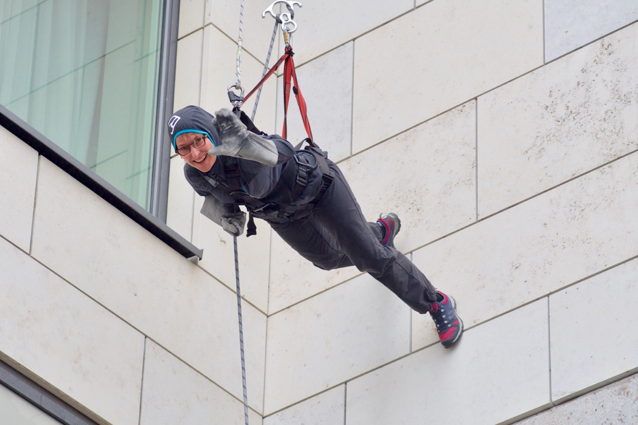 Am vergangenen Samstag stand in Berlin "House Running" auf dem Programm. Maria hatte dieses Event von ihren Ex-Kolleginnen und -Kollegen zum Abschied geschenkt bekommen und wie Ihr sehen könnt, hat es richtig Spaß gemacht, eine 65 m hohe Hausfassade herunterzulaufen.