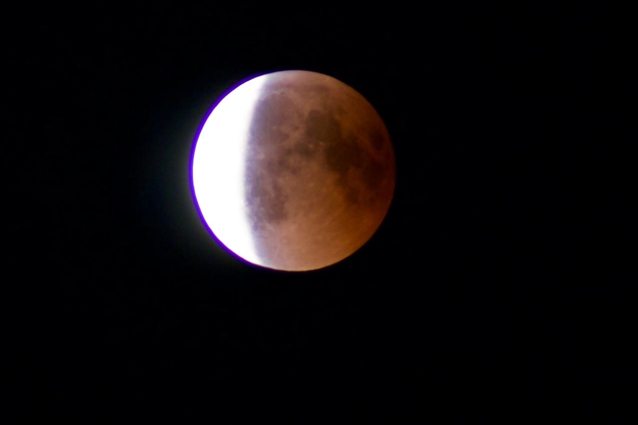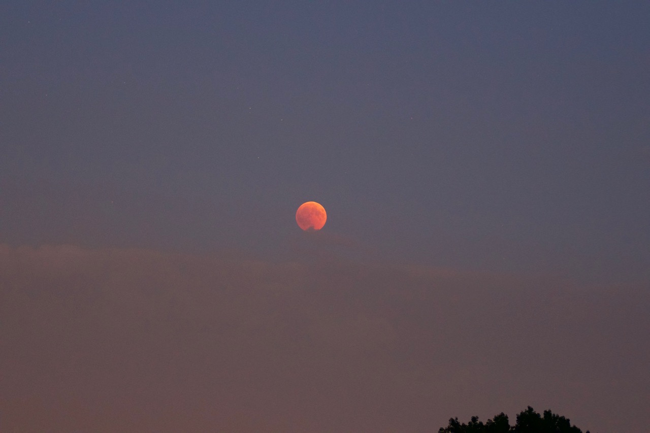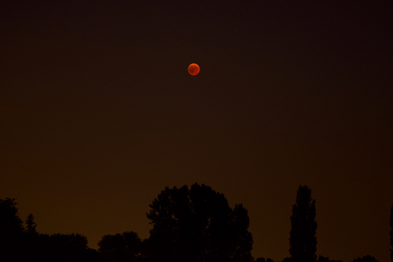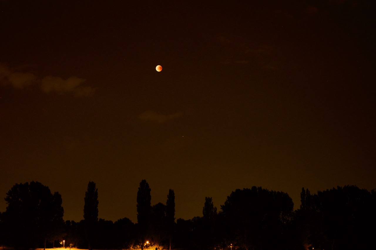 Vergangene Nacht gab es die längste totale Mondfinsternis dieses Jahrhunderts. Fast zwei Stunden lang dauerte die Kernschattenphase. Auf den Stadtwiesen an der Pegnitz gleich hinter unserer Wohnung sollten wir beste Sicht Richtung Südosten haben. Wie Ihr am ersten Foto erahnen könnt, verdeckten anfangs Schleierwolken am Horizont den Blick, doch ab einer guten halben Stunde nach Beginn der Kernschattenphase hatten wir dann doch noch freien Blick auf den "Blutmond".