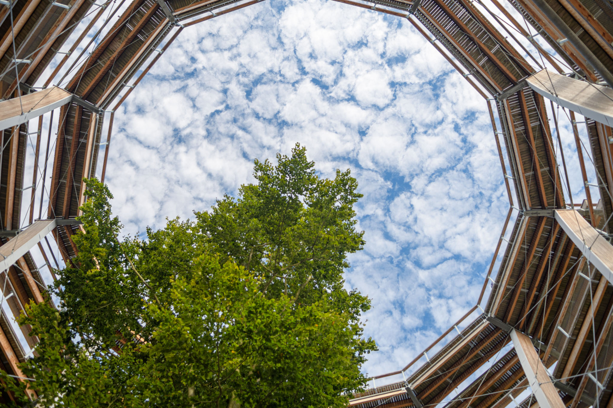 Vorgestern sind wir mal wieder aufs Rad gestiegen. Mit Bahn und Bus (mit Fahrradanhänger) ging es via Hirschaid nach Ebrach. Dort haben wir zuerst einmal den "Baumwipfelpfad Steigerwald" besucht und die Aussicht genossen, bevor wir auf die Räder gestiegen sind. Über Prichsenstadt, Münsterschwarzach, Dettelbach, Mainstockach und Kitzingen ging es nach Marktbreit.