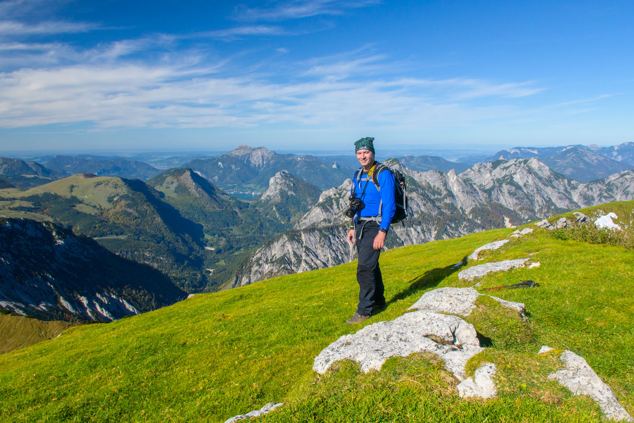 Letzten Samstag stand eine knackige Wanderung im Salzkammergut auf dem Programm. Es ging auf das Gamsfeld, den höchsten Berg in den Salzkammergut-Bergen. Von dort hatten wir bei bestem Herbstwetter eine wunderbare Aussicht auf den Wolfgangsee, den Dachstein und sogar bis zum Großglockner. Die Strecke von 20,5 km (hin und zurück) bei knapp 1.400 Höhenmetern klingt halbwegs moderat, doch die ersten 8 km ging es weitestgehend flach dahin, so dass sich fast der gesamte Anstieg auf die letzten zwei Kilometer drängte.