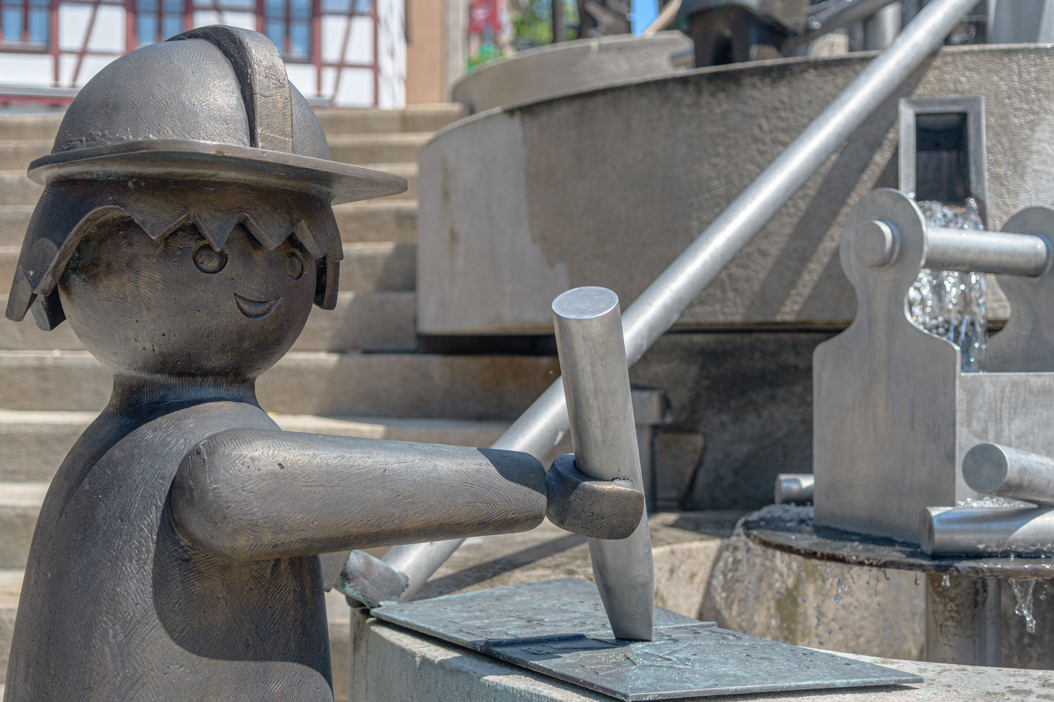 An unserer ersten Station – Zirndorf – fällt es beim Betrachten des Brunnens am Marktplatz nicht schwer, zu erraten, welche Firma hier ihren Sitz hat.