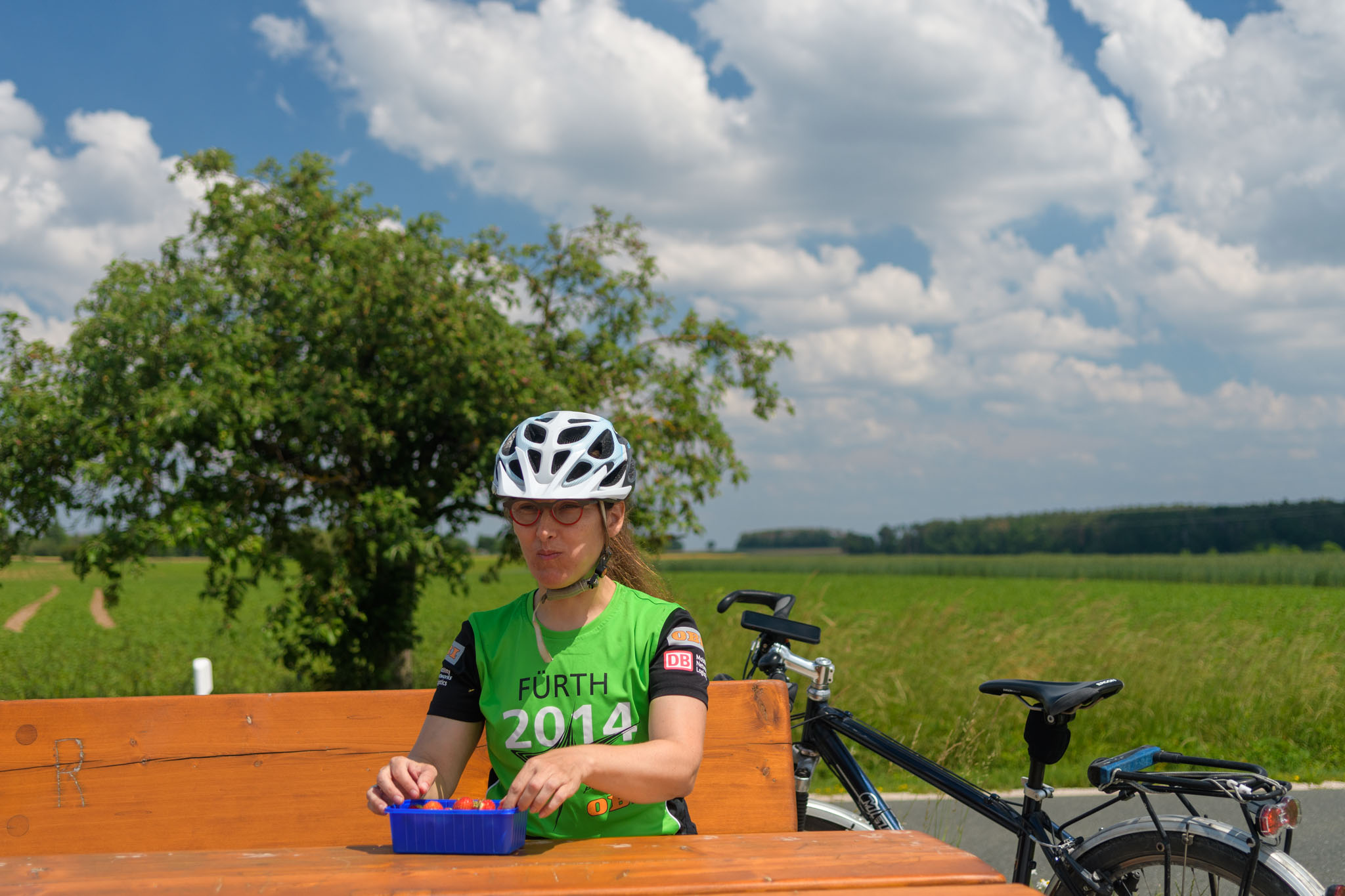 Auf dem Weg nach Ammerndorf gab es eine letzte kleine Rast, auf der wir die Erdbeeren vertilgt haben, die wir vorher an einem Stand unterwegs erstanden hatten.