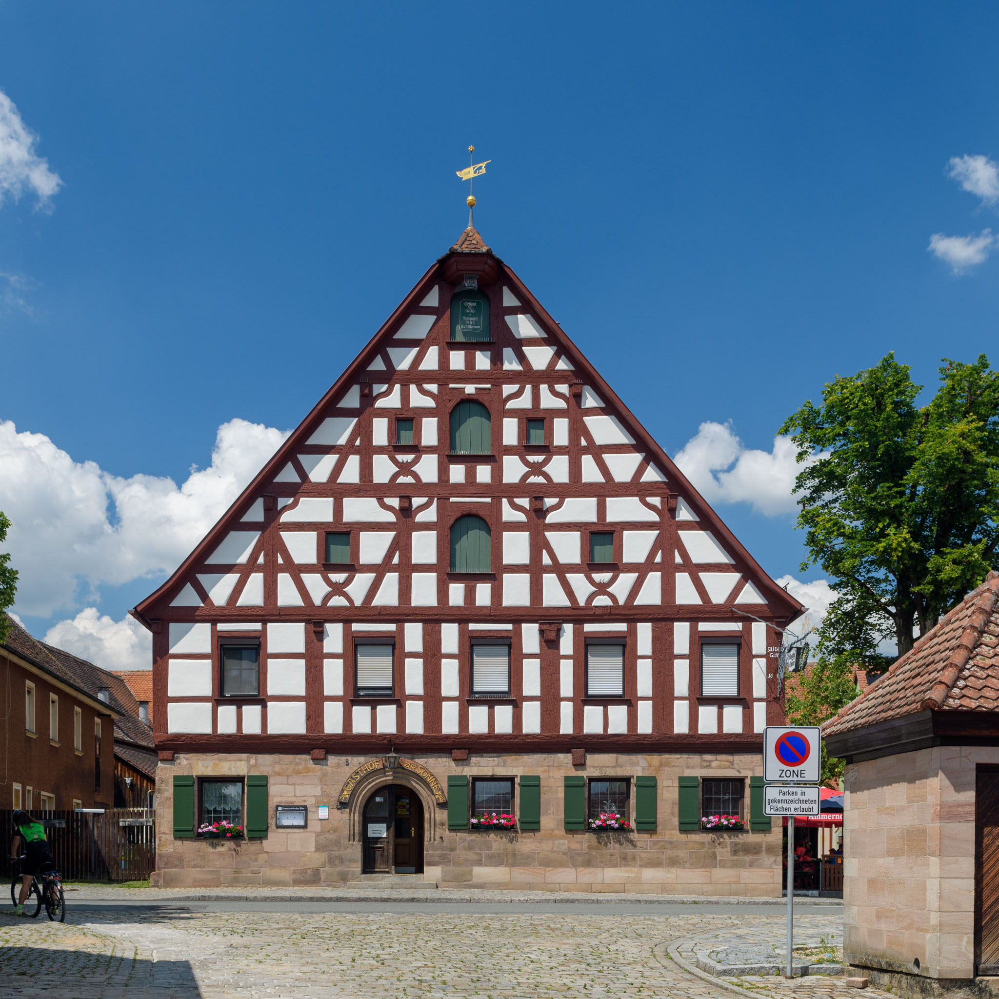 Cadolzburg stand sowohl gestern als auch heute auf dem Programm, allerdings haben sich die beiden Touren dort lediglich gekreuzt, so dass es keine weiteren Überlappungen gab. Der Burg Cadolzburg haben wir nach dem ausgiebigen Besuch von gestern heute aber natürlich nicht so viel Zeit gewidmet und haben stattdessen eine Eisdiele besucht und auch noch den Cadolzburger Aussichtsturm bestiegen.