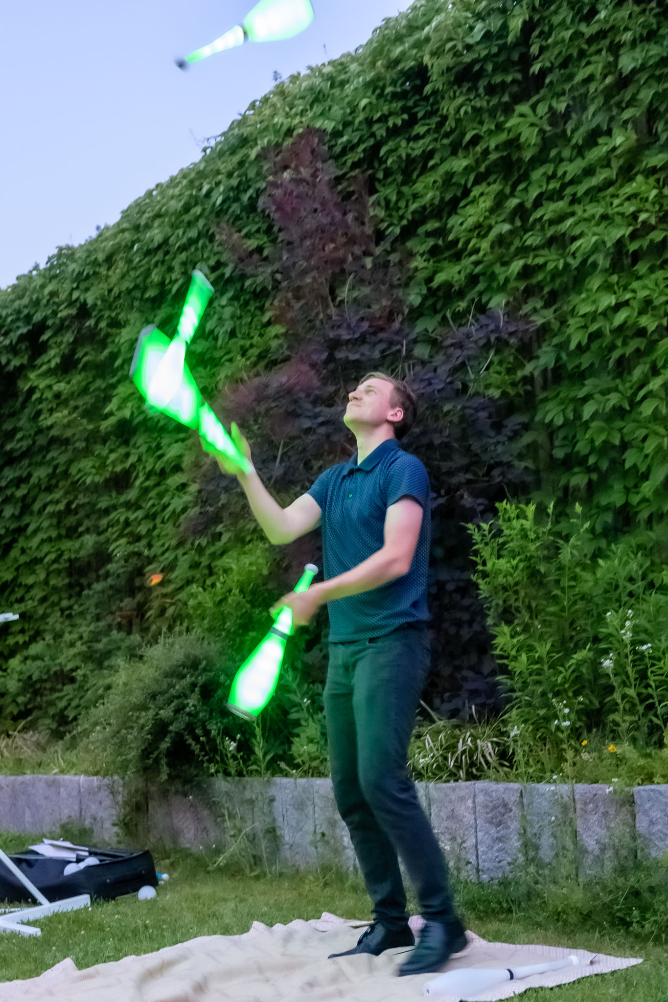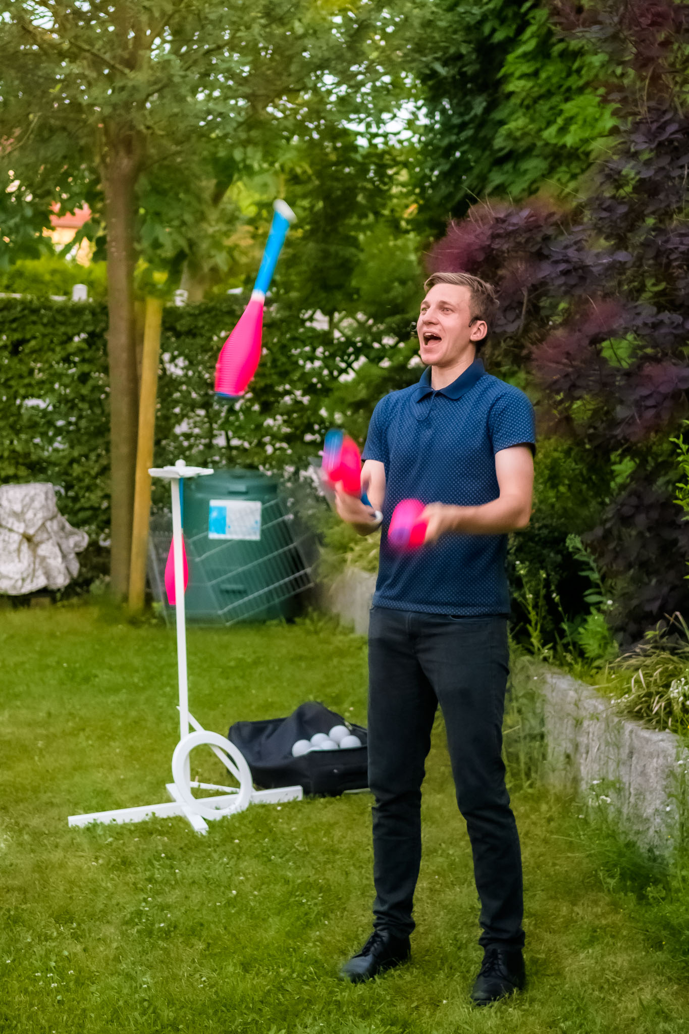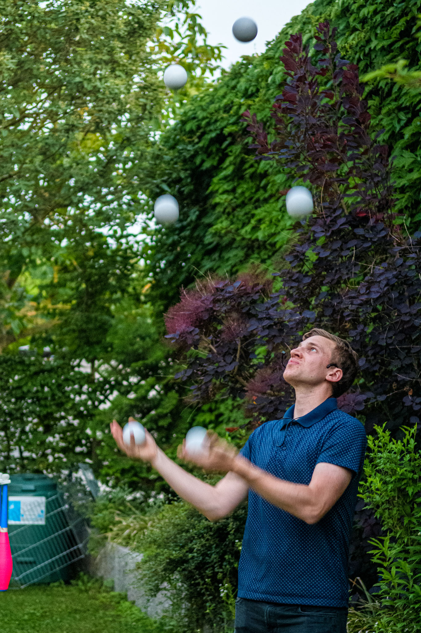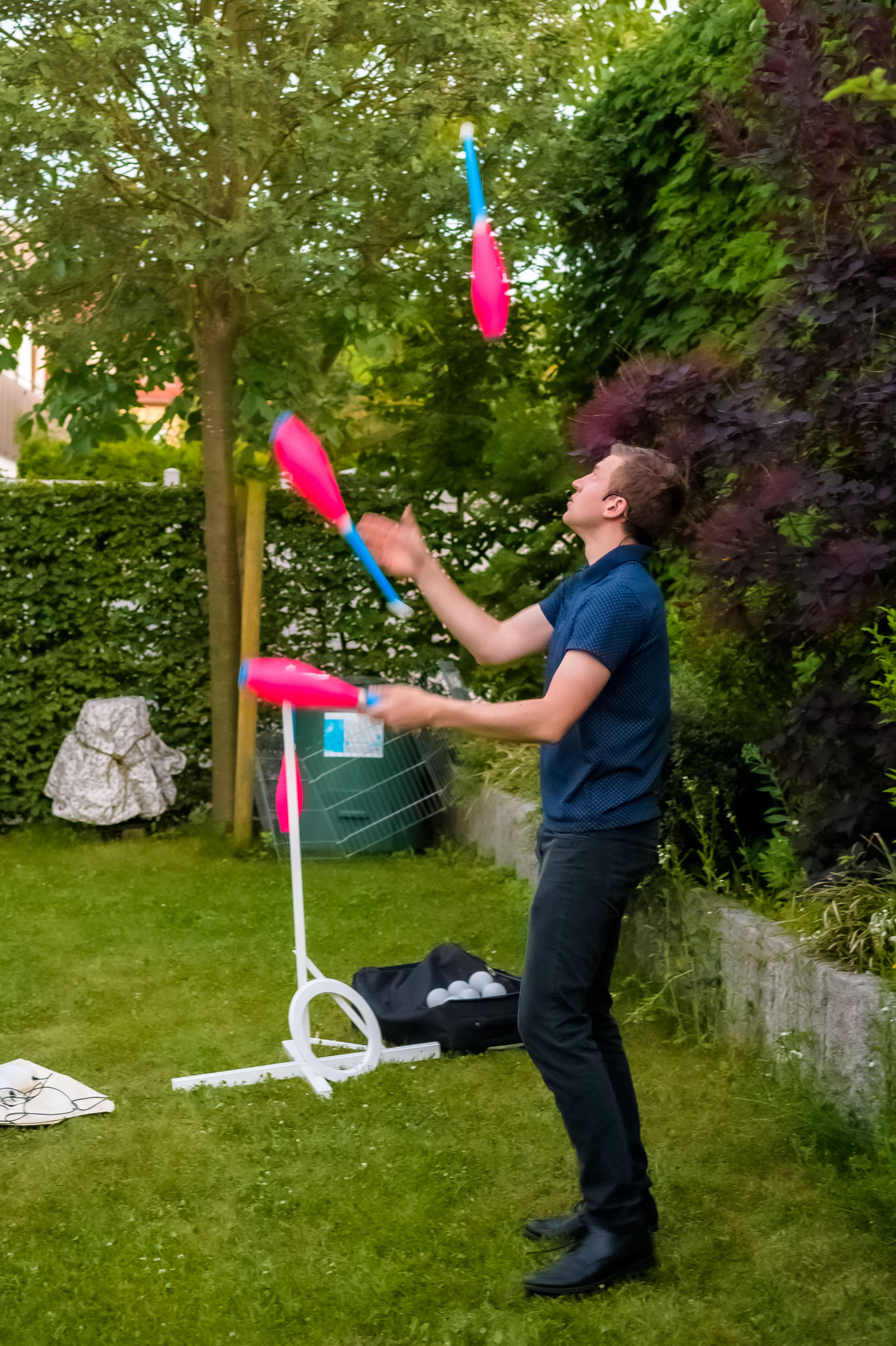- Und gestern hatte ein Freund in Erlangen Geburtstag. Nachdem inzwischen kleinere gemeinsame Treffen wieder erlaubt sind, haben ein paar Freunde inkl. uns einen Jongleur engagiert und die Fotos davon findet Ihr hier