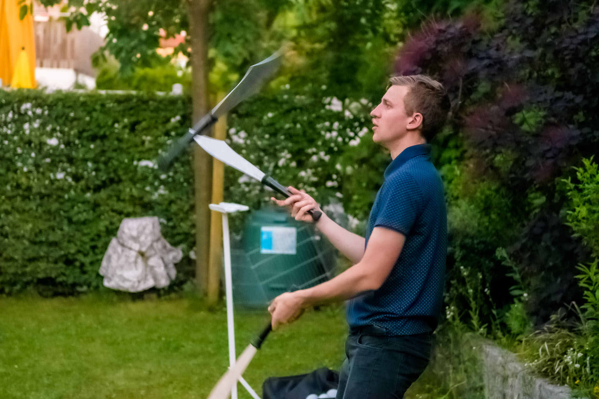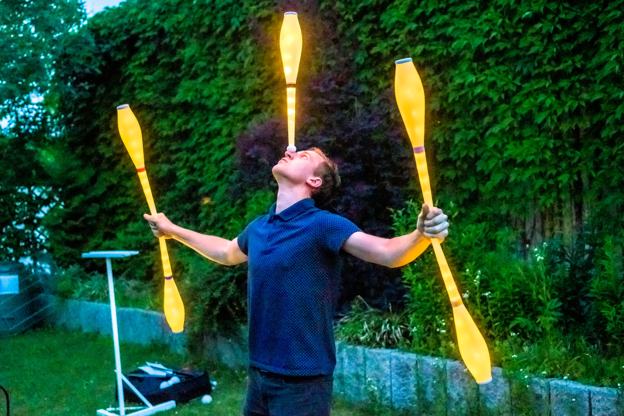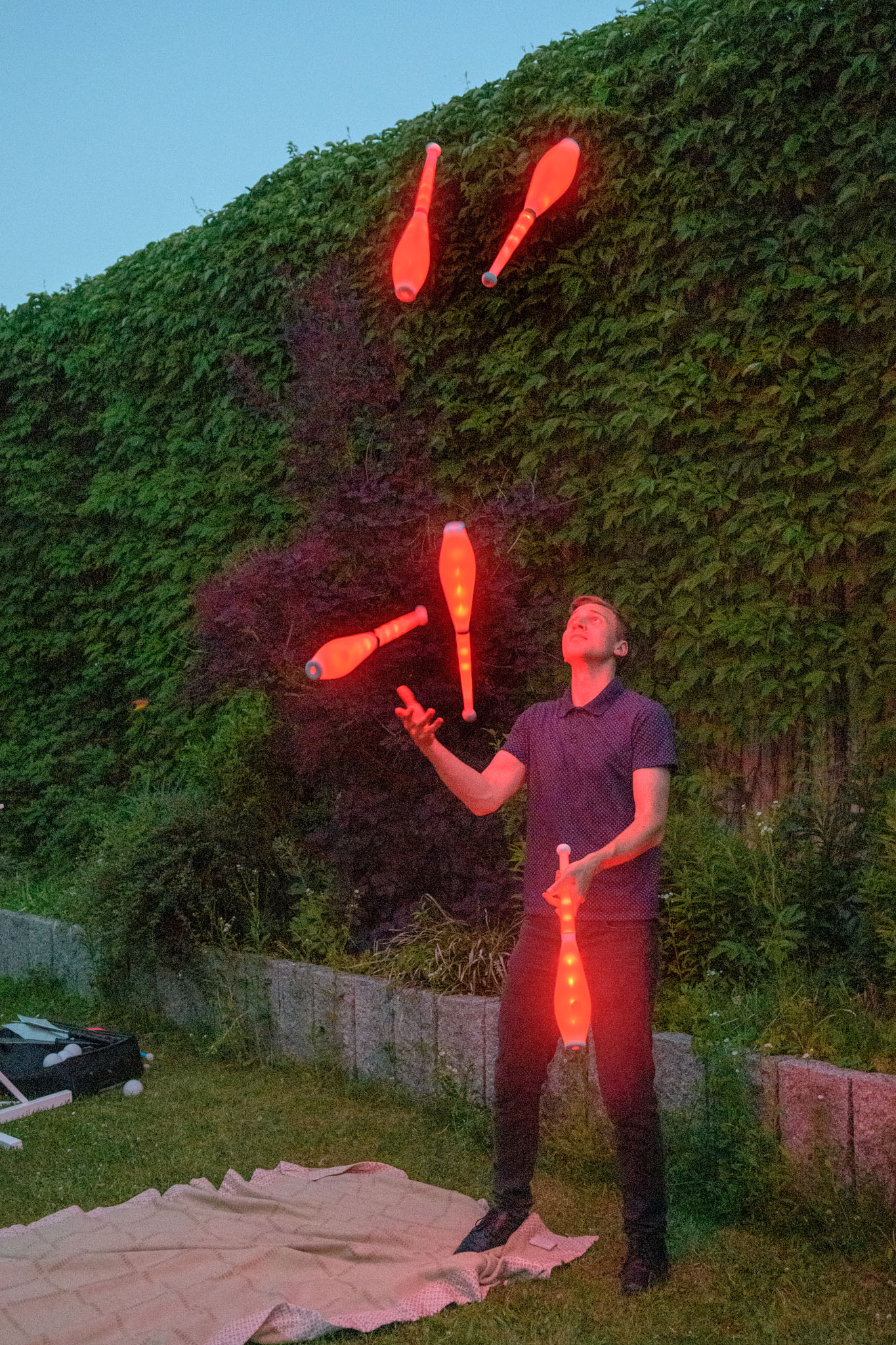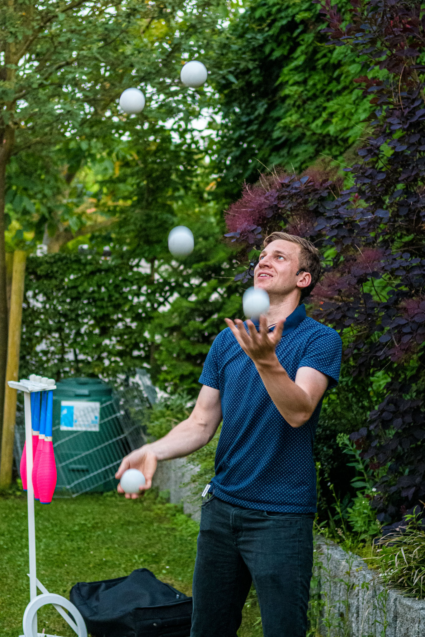 - Und gestern hatte ein Freund in Erlangen Geburtstag. Nachdem inzwischen kleinere gemeinsame Treffen wieder erlaubt sind, haben ein paar Freunde inkl. uns einen Jongleur engagiert und die Fotos davon findet Ihr hier