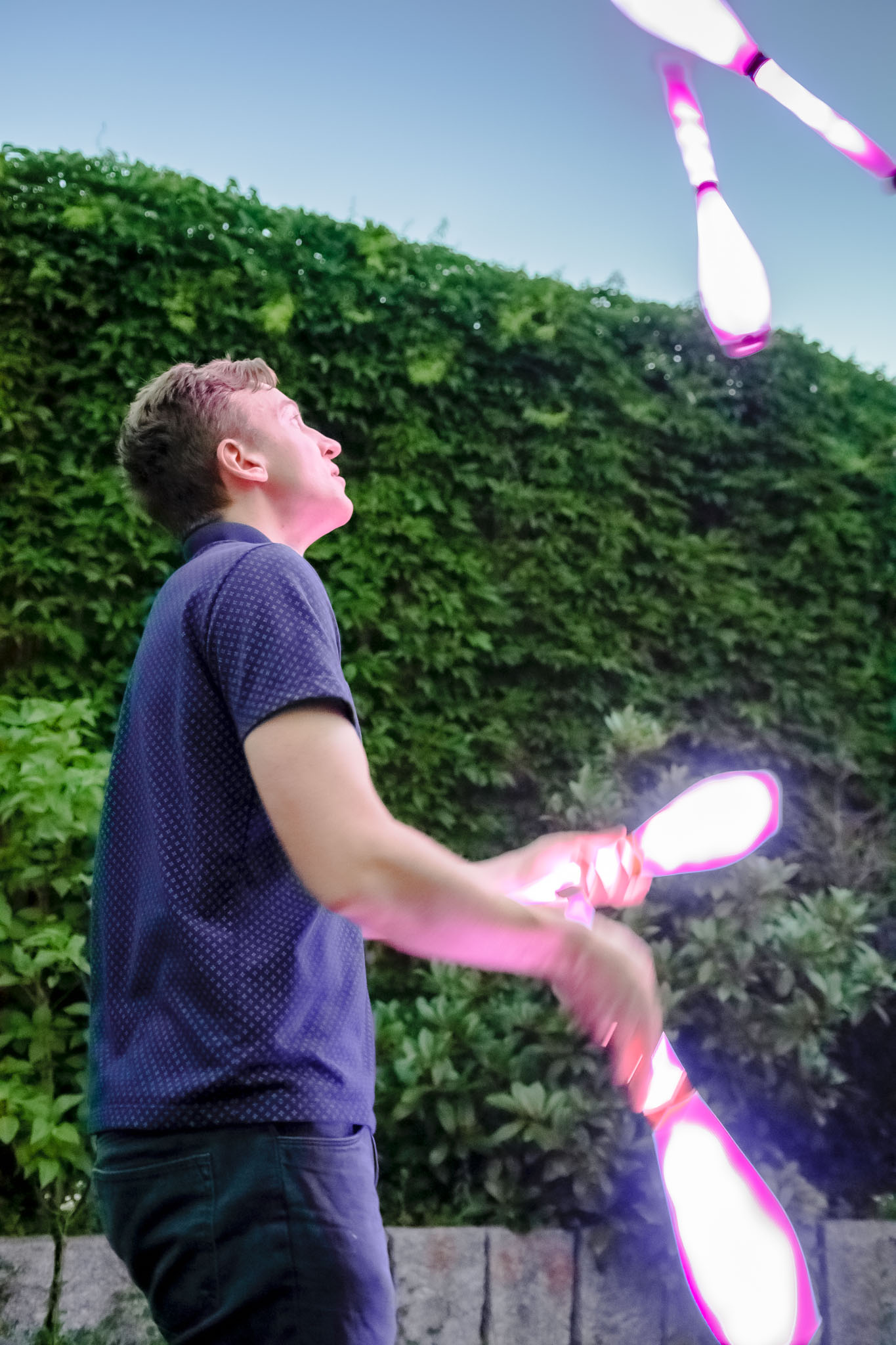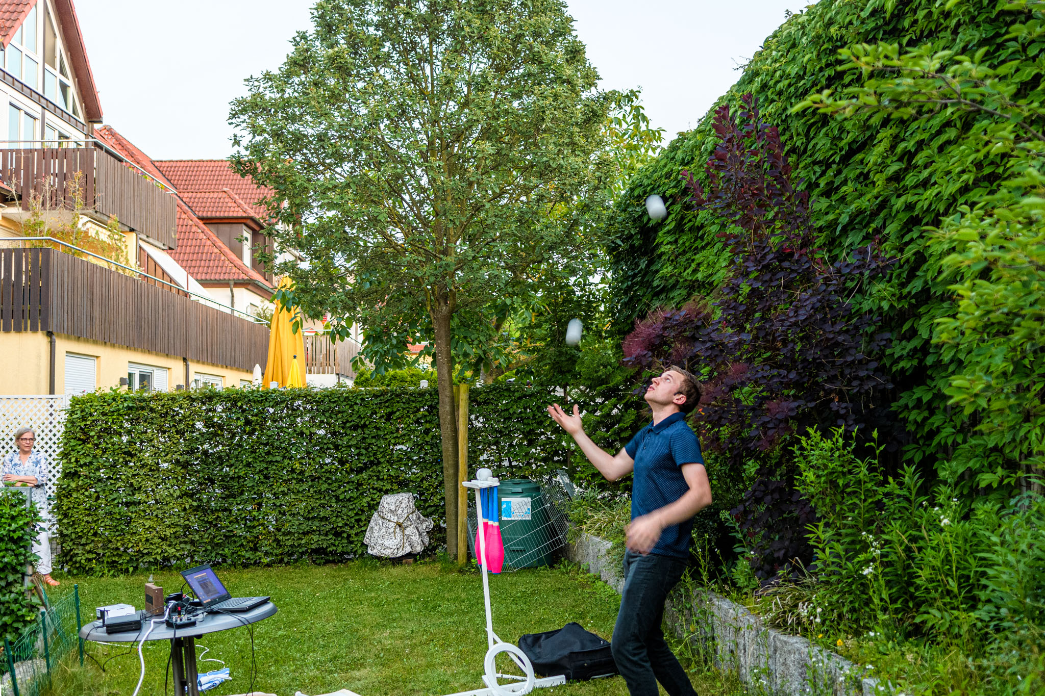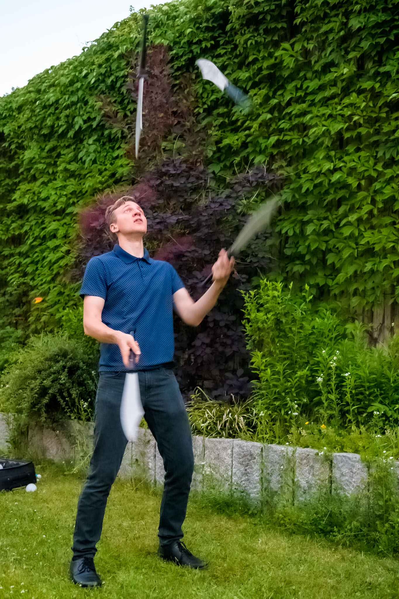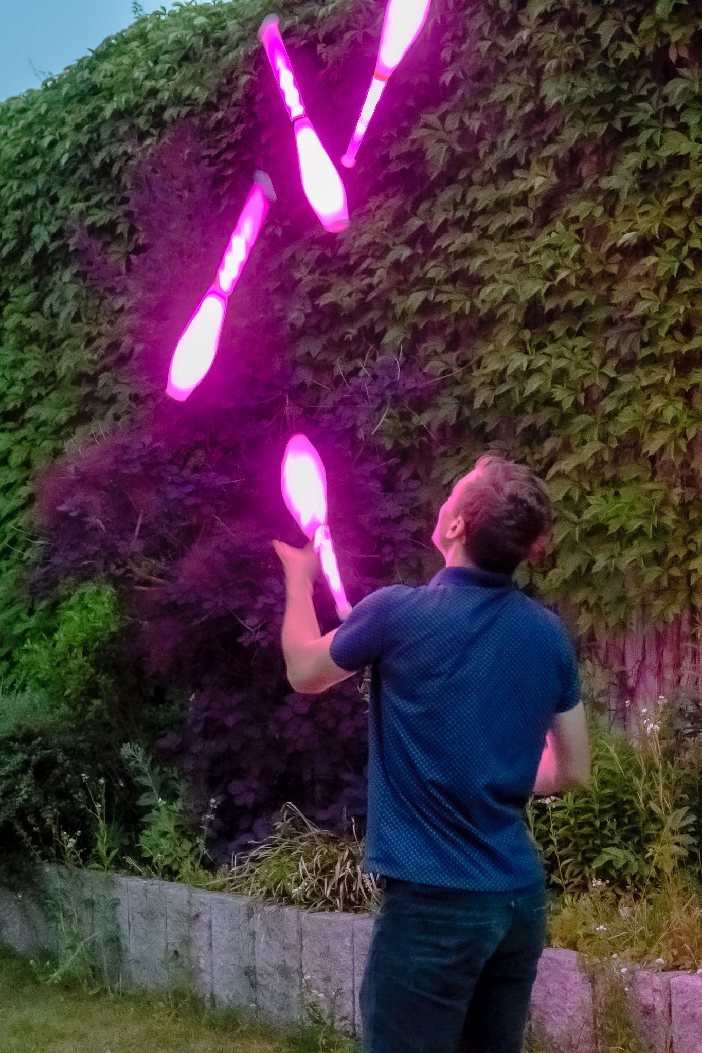 - Und gestern hatte ein Freund in Erlangen Geburtstag. Nachdem inzwischen kleinere gemeinsame Treffen wieder erlaubt sind, haben ein paar Freunde inkl. uns einen Jongleur engagiert und die Fotos davon findet Ihr hier