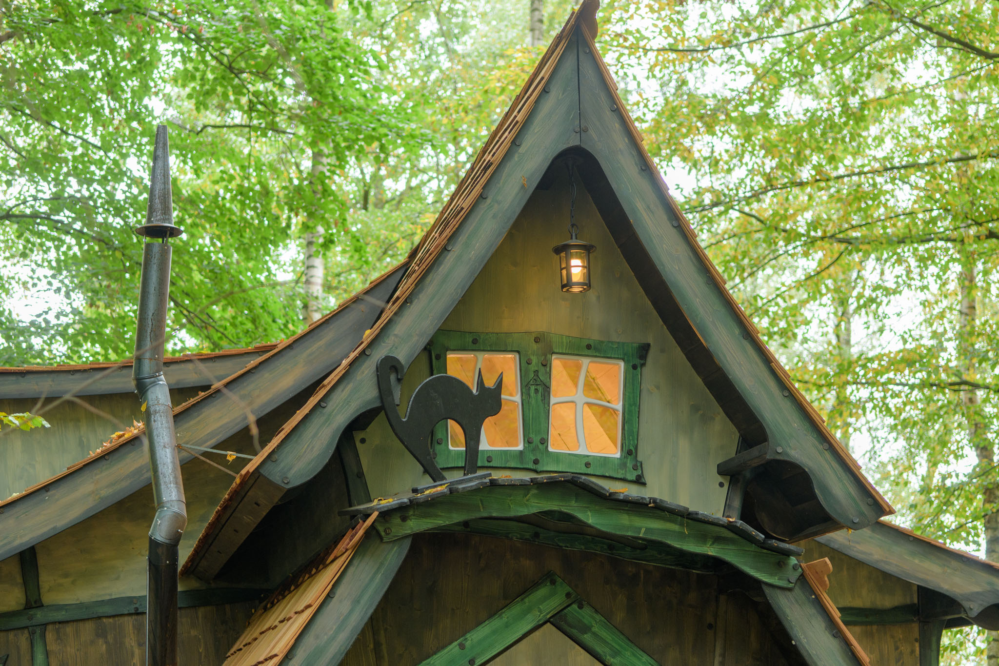 Vor ziemlich genau einem Jahr haben wir von Freunden zu unserer Jubiläumsfeier zwei Übernachtungen in einem Baumhaus im Spessart geschenkt bekommen. Corona-bedingt hat sich die Einlösung des Gutscheins ein wenig hinausgezögert, so dass wir ihn erst dieses Wochenende (Fr.-So.) einlösen konnten. Seit Mitte August – also brandneu seit ganz wenigen Wochen – gibt es mitten zwischen den Baumhäusern auch noch ein Hexenhäuschen, und das haben wir gebucht.