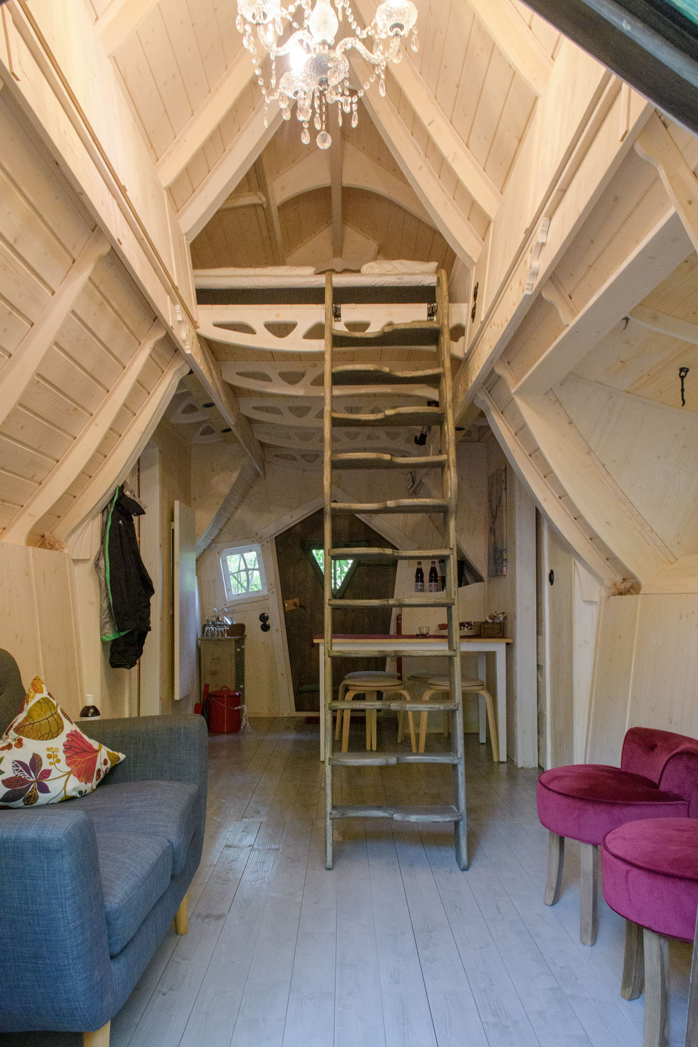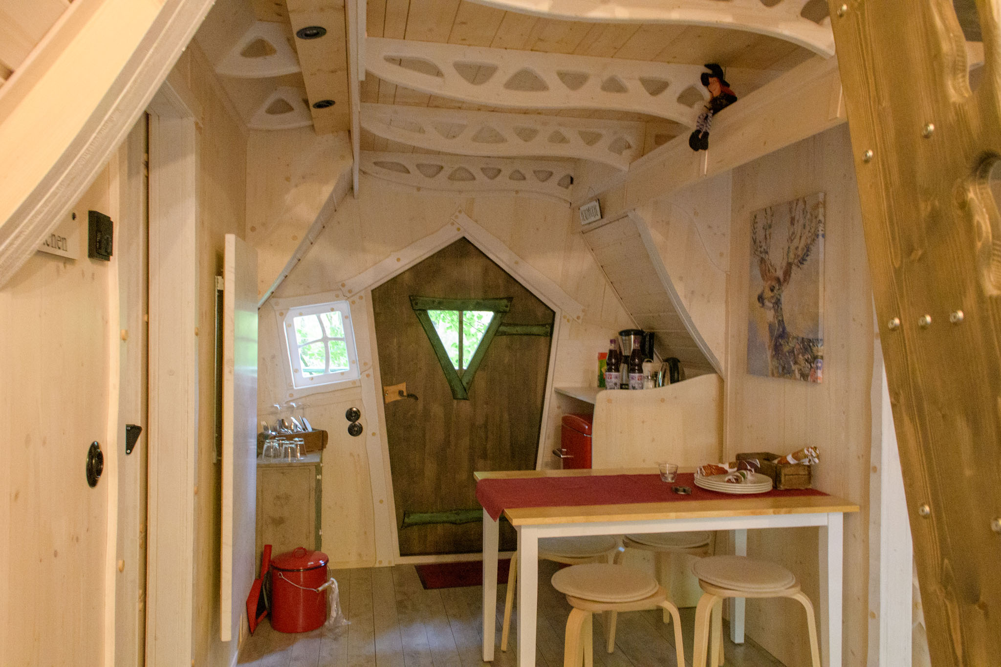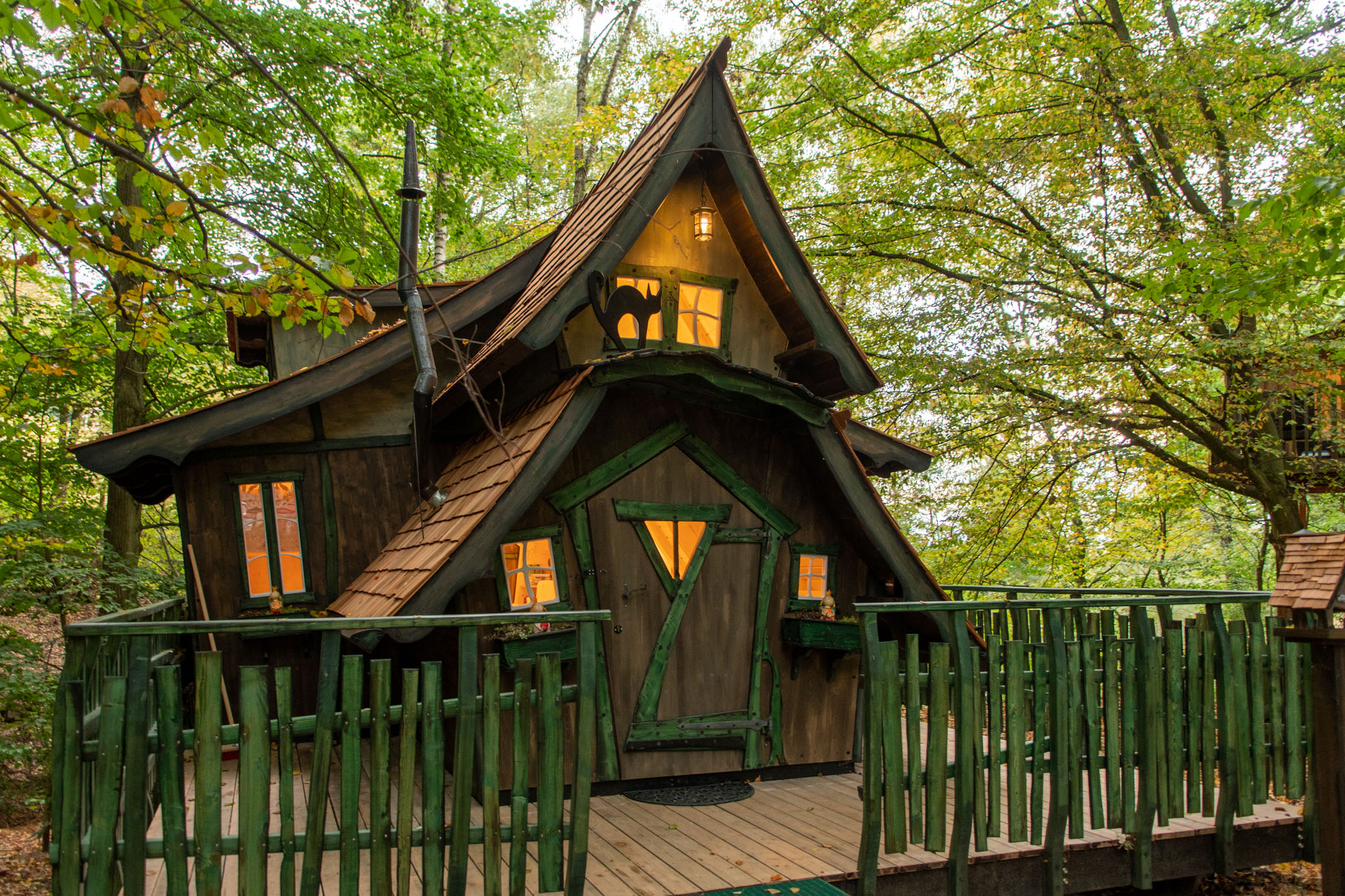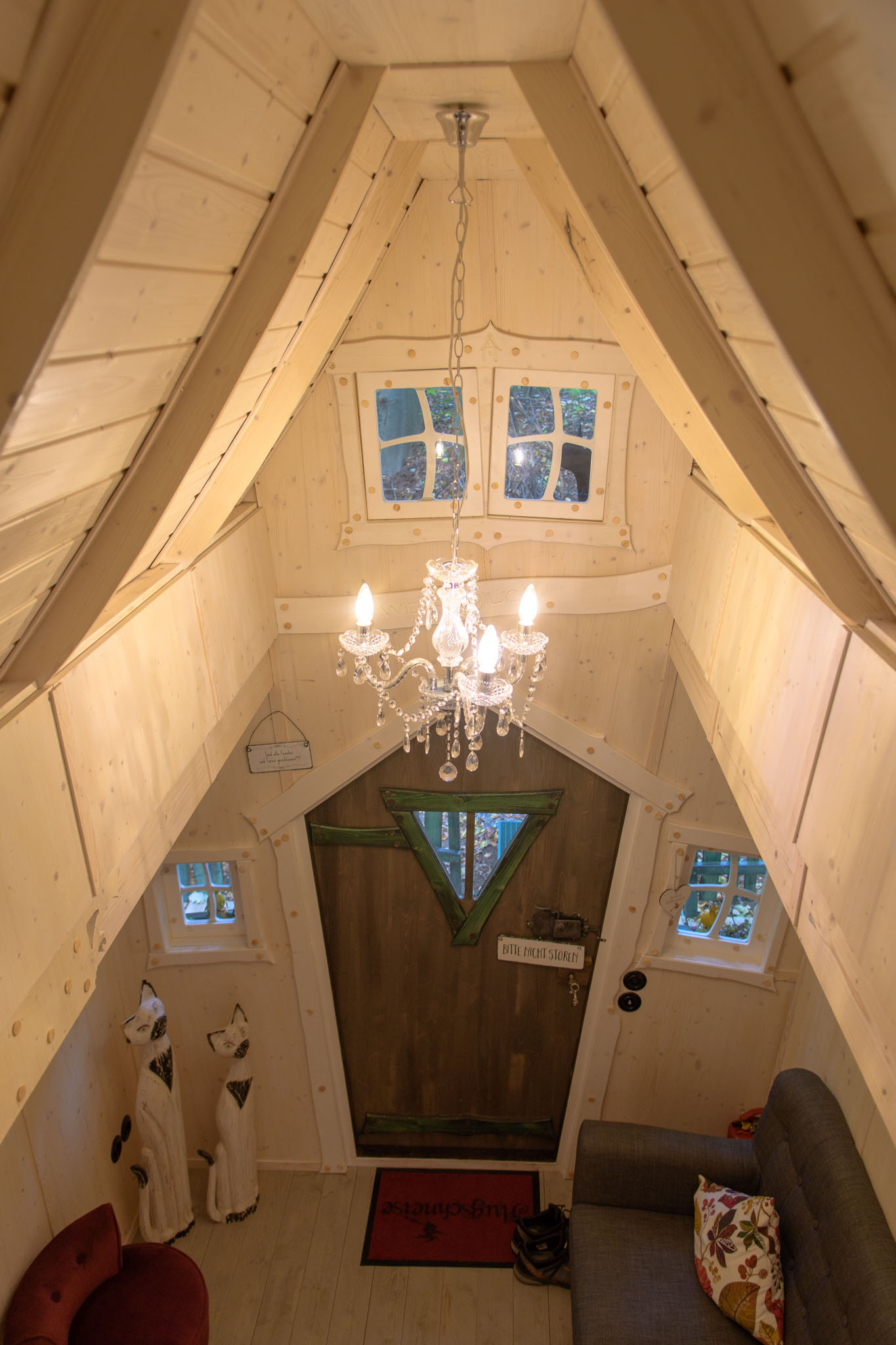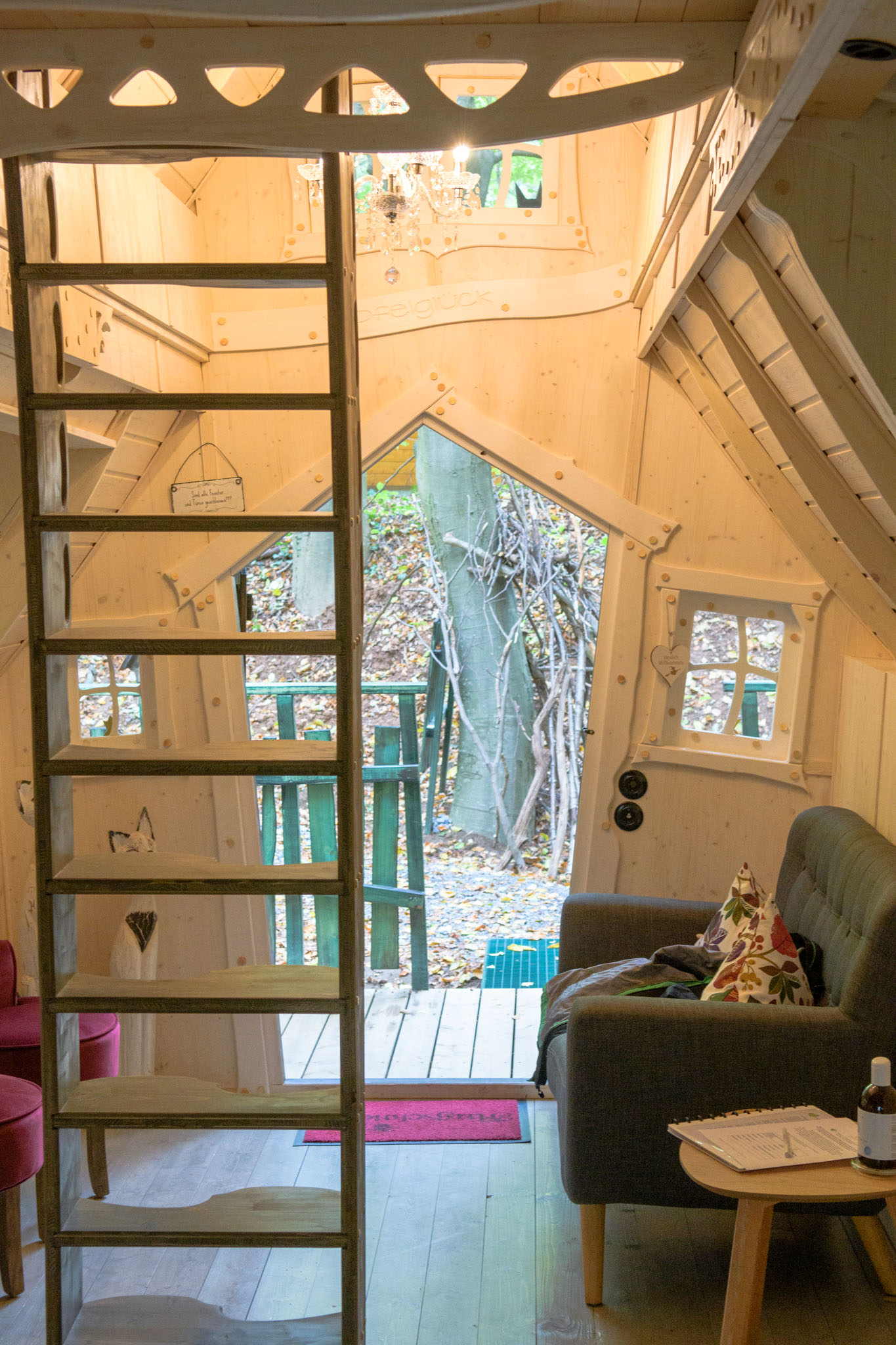Auf Foto elf seht Ihr, wie die Baumhäuser aussehen, in die es ursprünglich gehen sollte – ganz sicher auch nicht schlecht, aber das nagelneue Hexenhäuschen war natürlich schon besonders liebevoll gemacht.