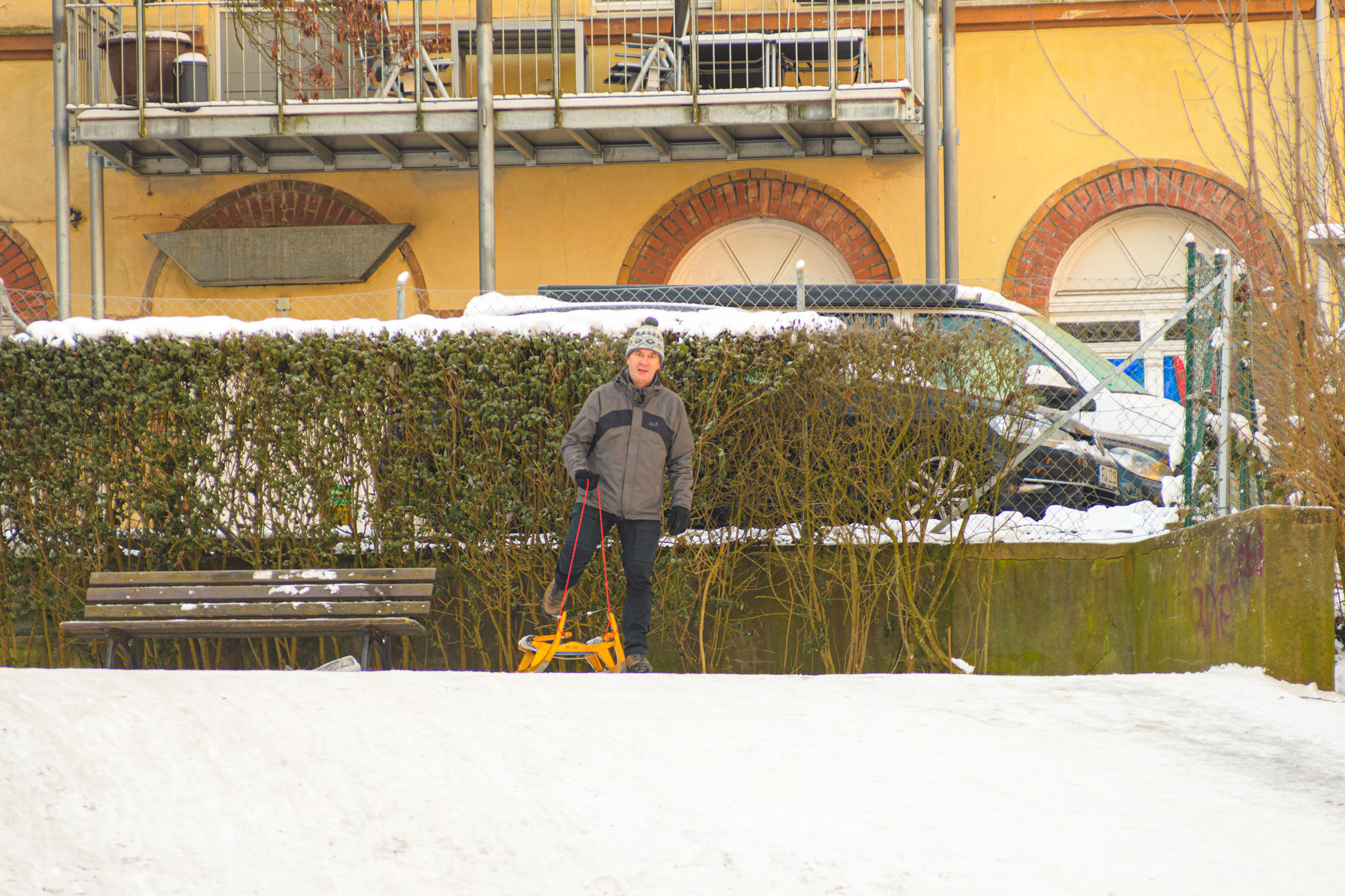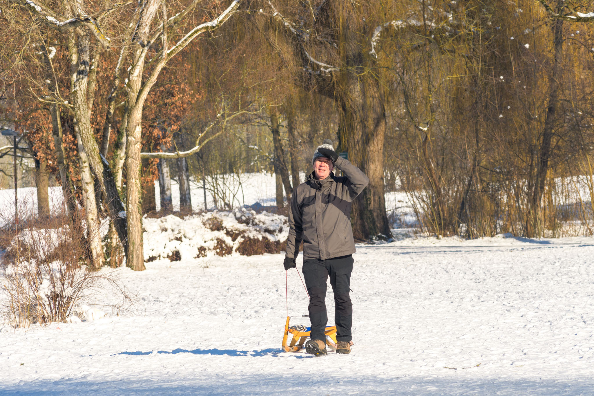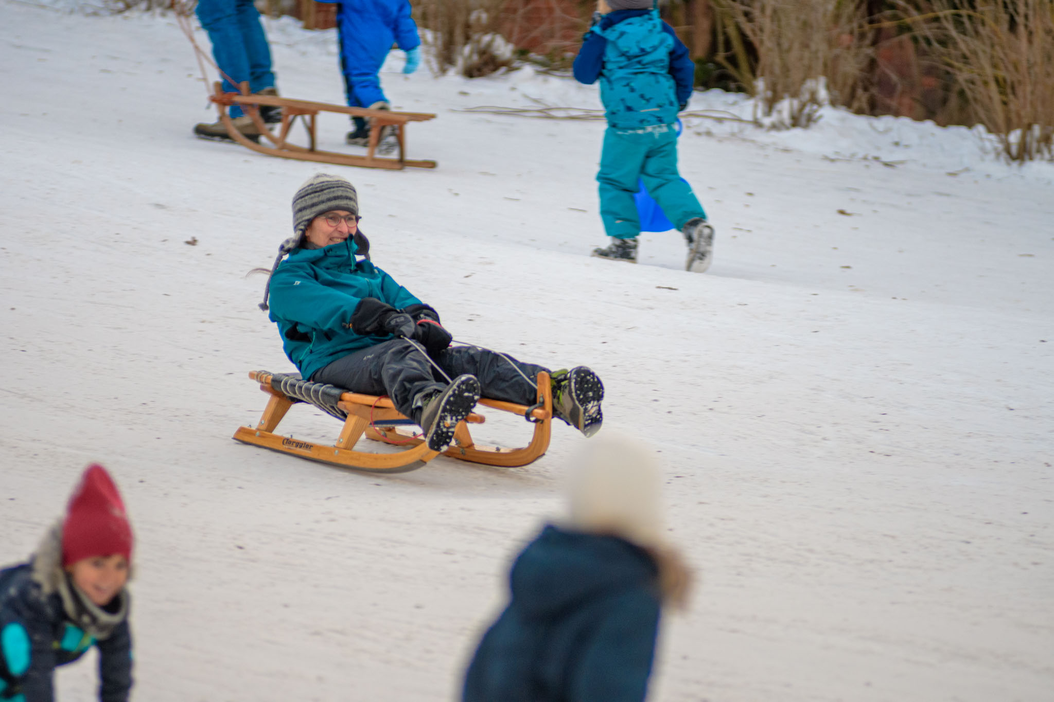 Am liebsten wären wir bei diesem sonnigen kalten Wetter mit viel Schnee jetzt gerne in der Schweiz zum Schlittenfahren. Doch da das wegen Corona natürlich nicht geht, haben wir unseren Schlitten unter den Arm geklemmt und sind damit zum Rodelhang im Fürther Stadtpark spaziert. 😊