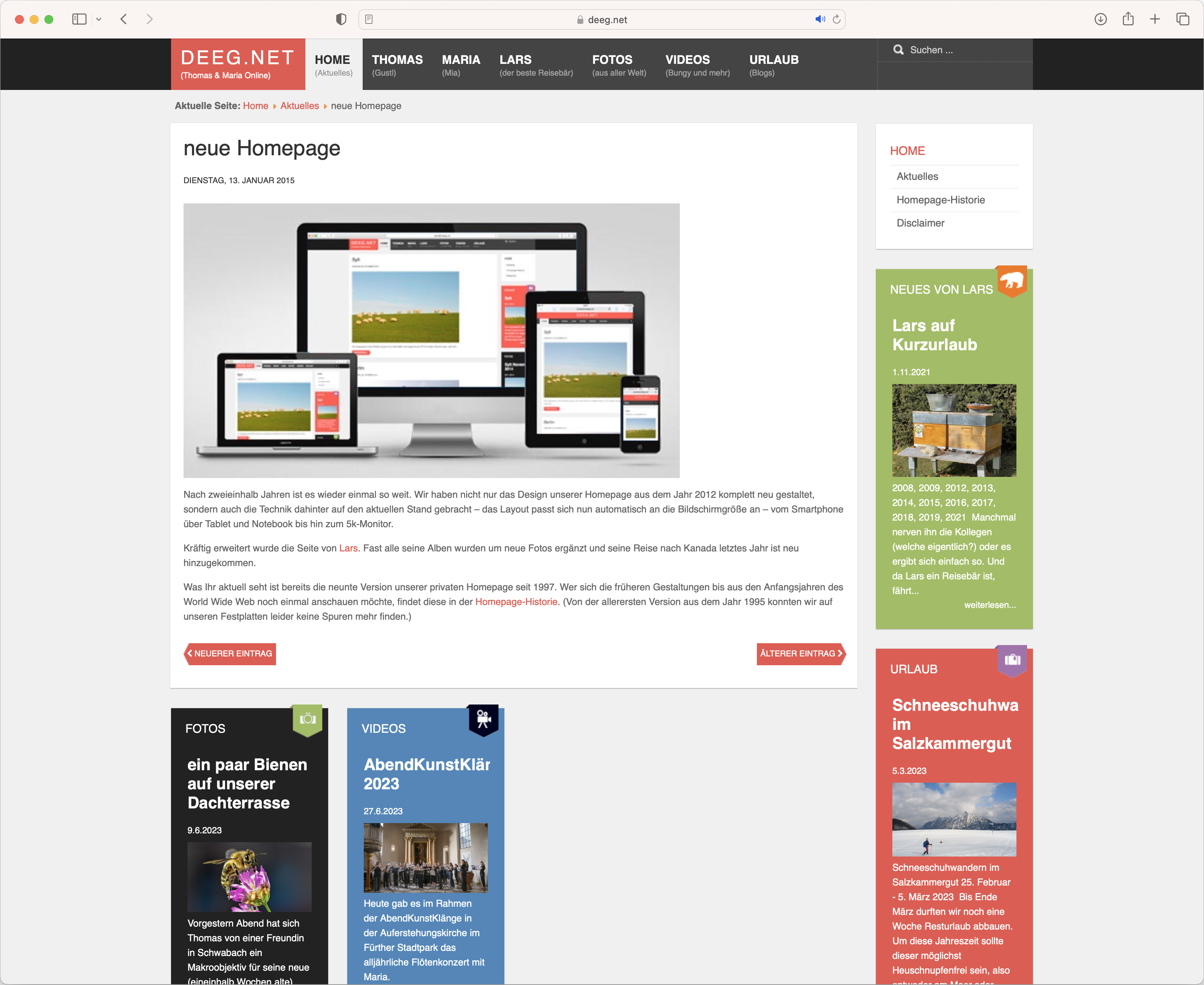 Drei Jahre später war die Nutzung von Geräten mit extrem unterschiedlich großen Bildschirmen (Handy – Tablet – Notebook – Desktop-Rechner) längst so selbstverständlich, dass Responsive Webdesign allmählich zum Standard wurde. Auch unsere neue Webseite reagierte nun auf unterschiedlich große Bildschirme und passte das Layout automatisch an.