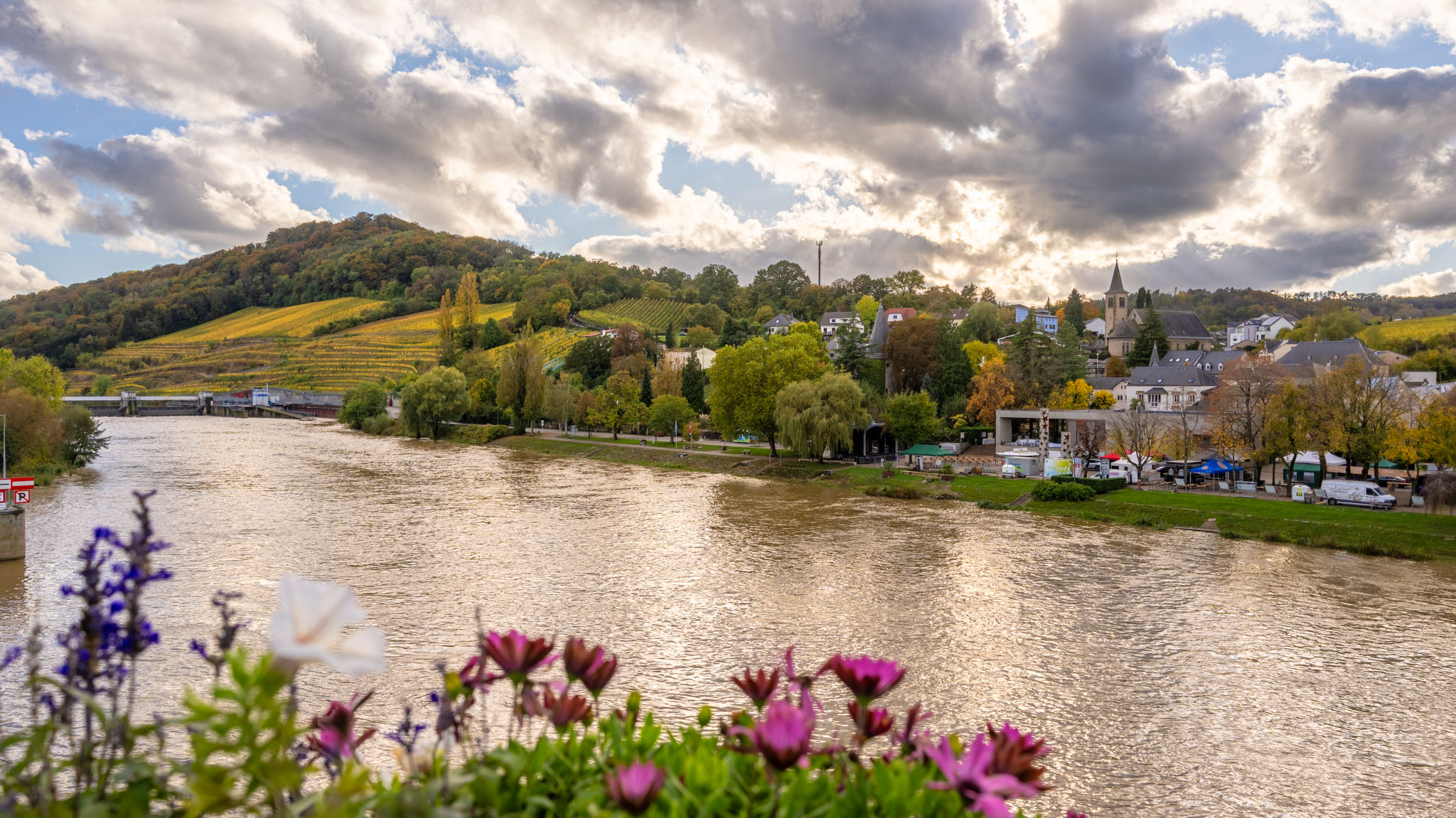Das drittletzte Foto zeigt übrigens Deutschland, Frankreich und Luxemburg. Die Blumen im Vordergrund hängen am Geländer auf der deutschen Seite der Moselbrücke, die Büsche am linken Bildrand wachsen in Frankreich und die gegenüberliegende Flussseite ist Luxemburg mit dem Ort Schengen.