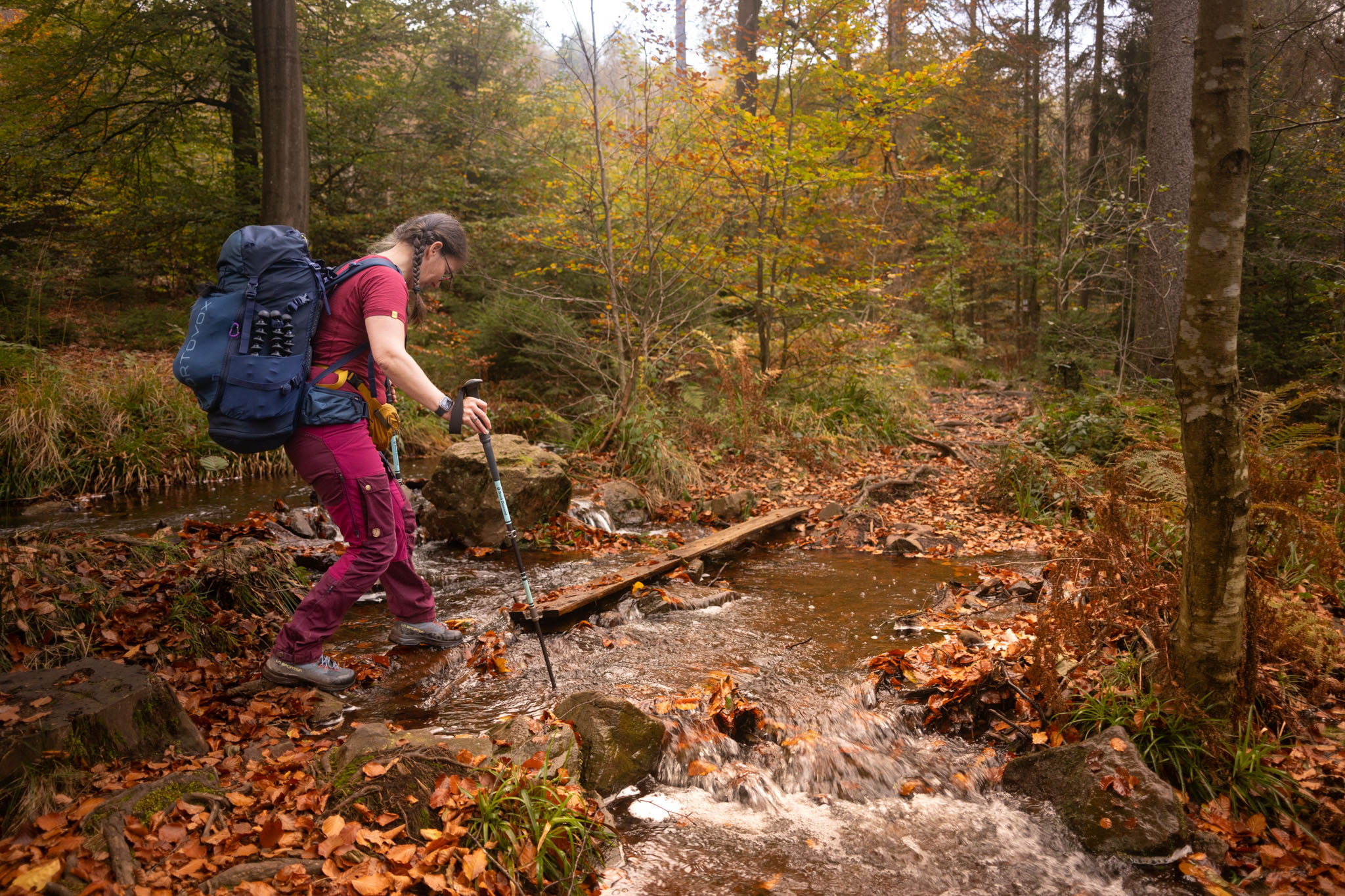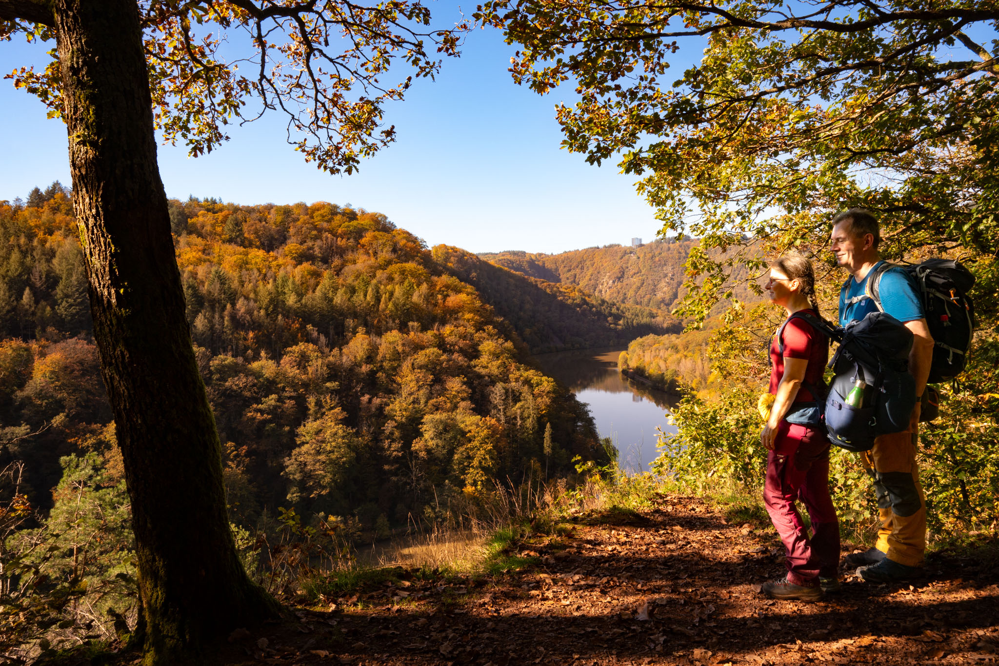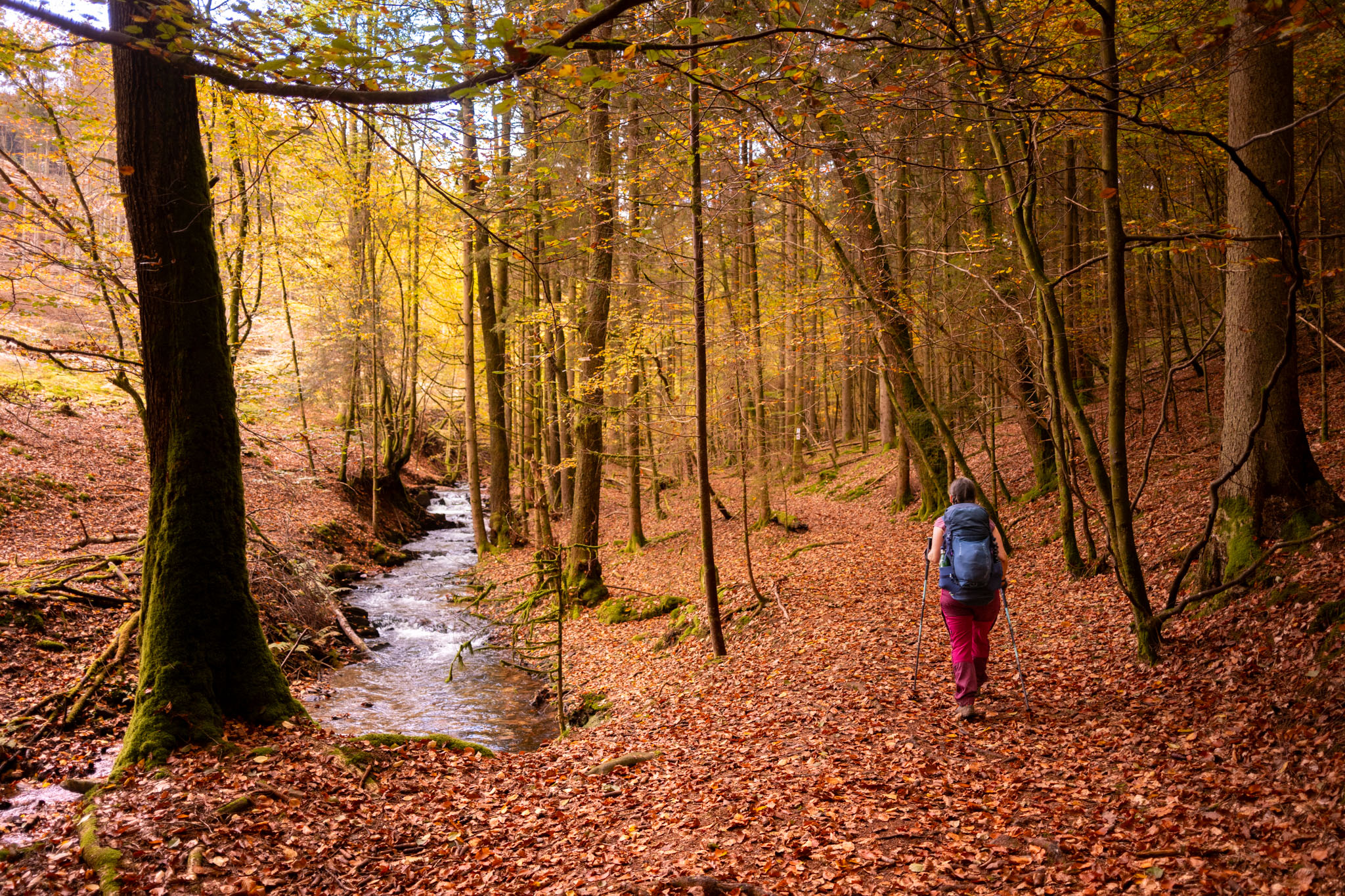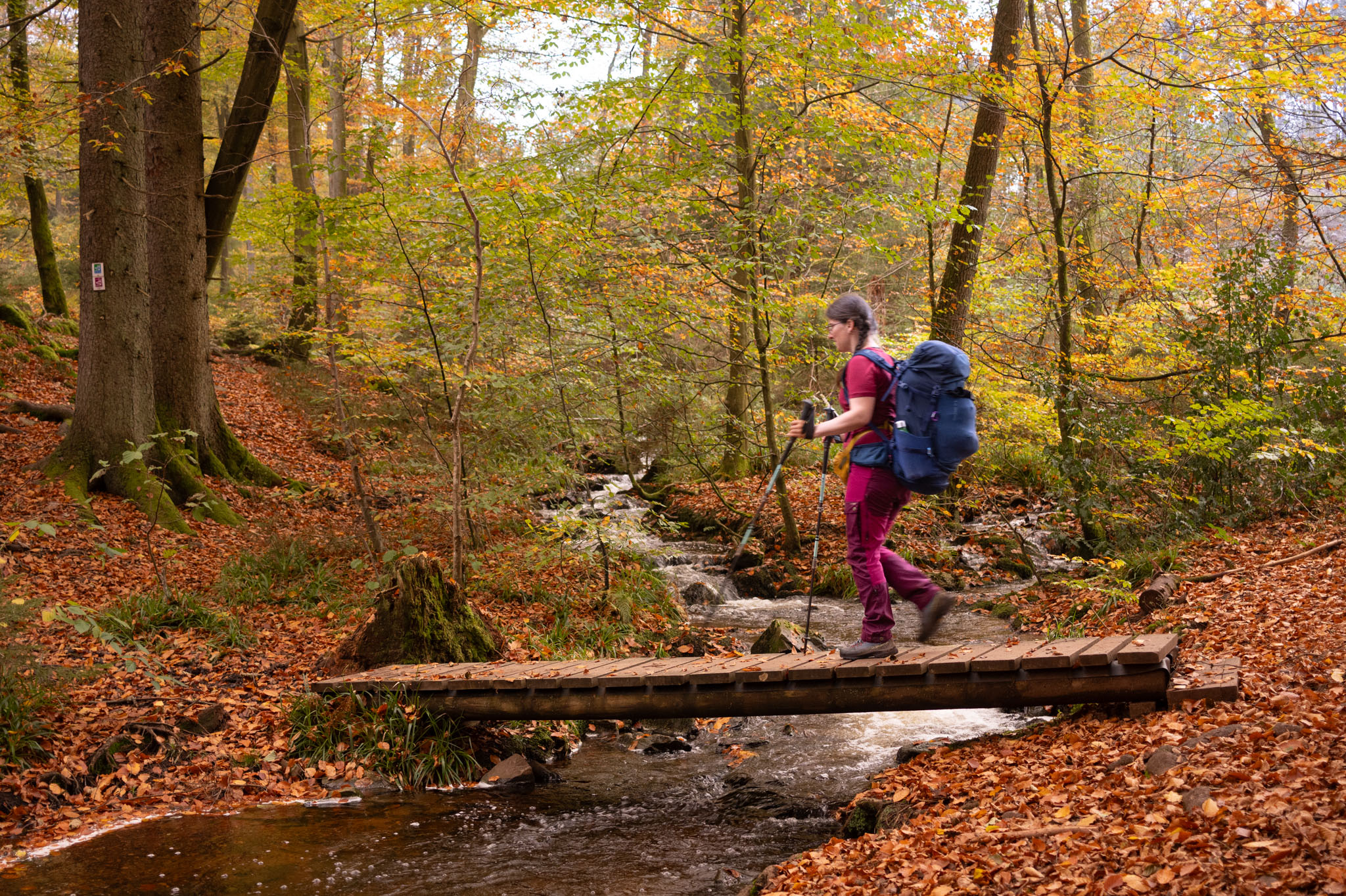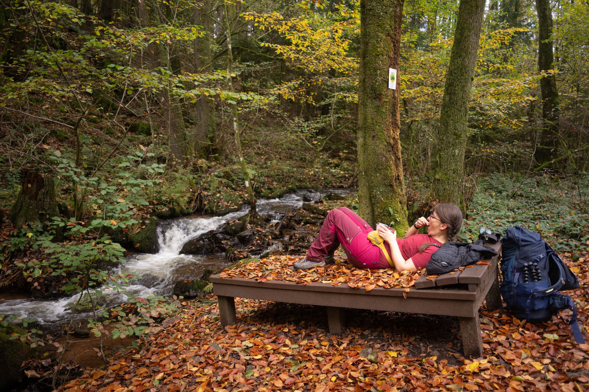 Als wir auf Google nach "angenehmen Urlaubszielen für Oktober" gesucht haben, wurden uns die Malediven, Madeira und der Hunsrück vorgeschlagen. Die Malediven haben wir selbstverständlich erst gar nicht in Erwägung gezogen. Madeira steht zwar schon seit vielen Jahren auf unserer Urlaubsliste, aber dafür planen wir eher mit zwei Wochen. Also sind wir in den Hunsrück gefahren und sind die ersten sieben Etappen des Saar-Hunsrück-Steigs gewandert – selbstverständlich mit komplettem Gepäck für die gesamte Woche auf unserem Rücken.