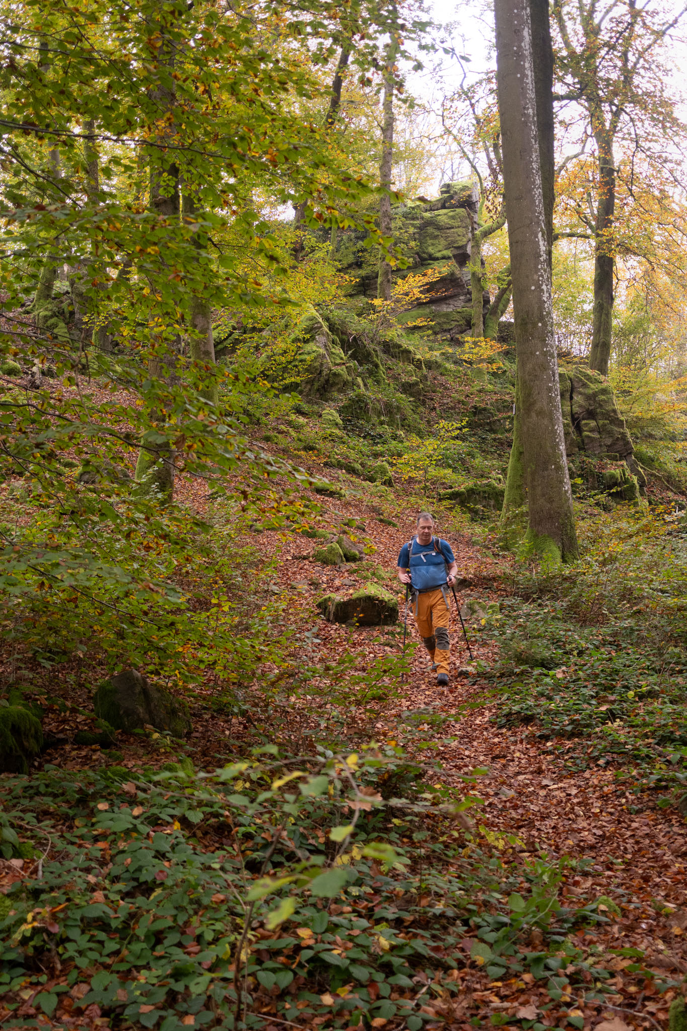Heute hat es die Sonne nur ein kleines bisschen geschafft, die Wolkendecke aufzureißen. Dafür ging es nach der gestrigen Entspann-Etappe heute deutlich länger und vor allem richtig in den Hunsrück rein. Auch seinen dritten Namensbestandteil hat sich der Saar-Hunsrück-Steig heute redlich verdient.