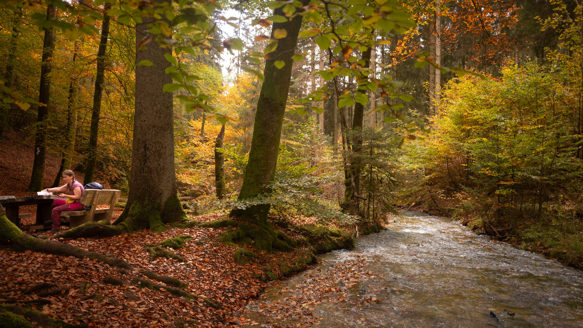 Heute gab es die längste und zugleich auch anstrengendste Etappe in diesem Urlaub. An unzähligen Bachläufen entlang ging es ständig (für Hunsrück-Verhältnisse) steil bergauf und wieder bergab. Lt. Komoot sind in Summe 1.080 Höhenmeter zusammengekommen!
