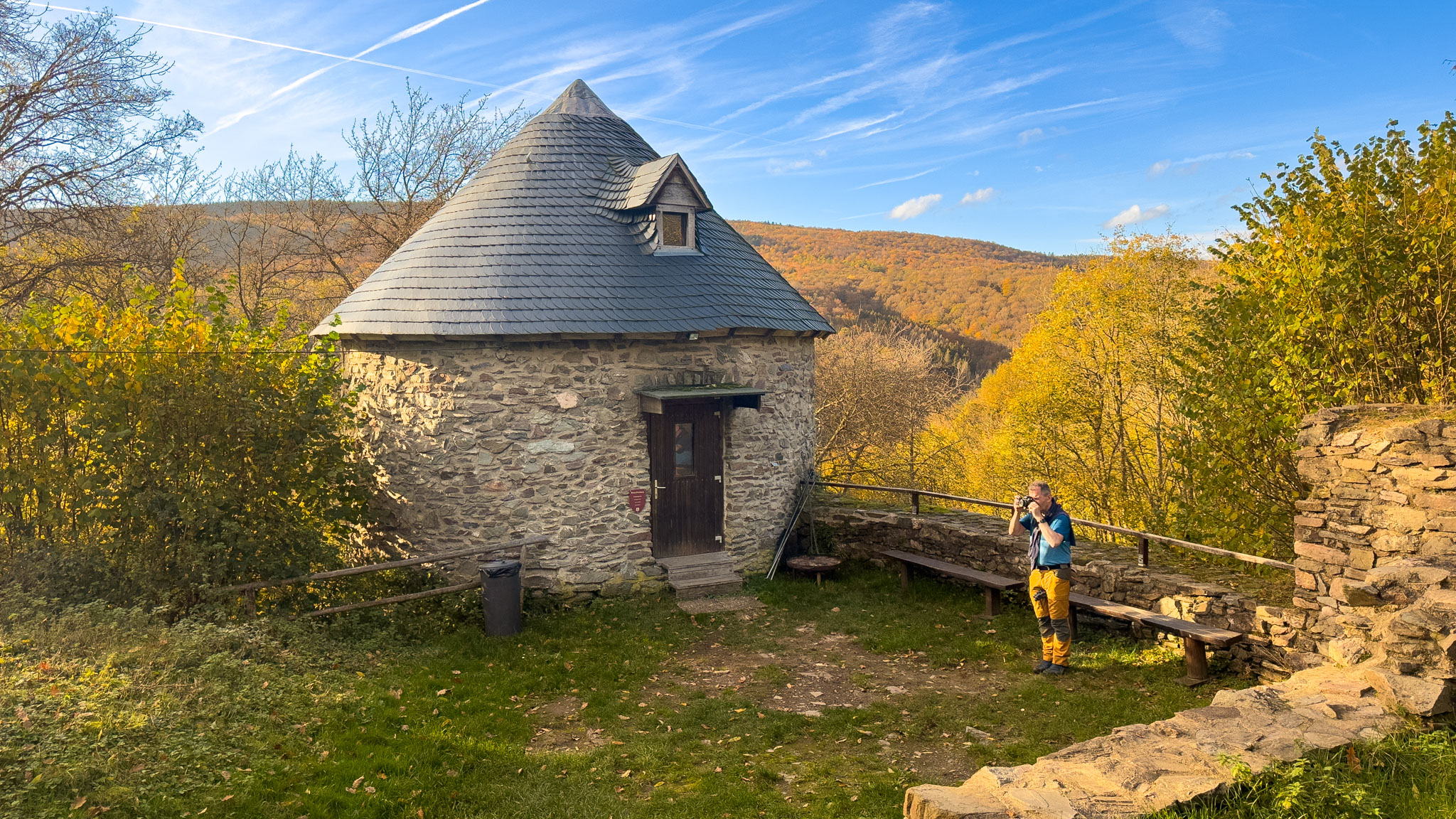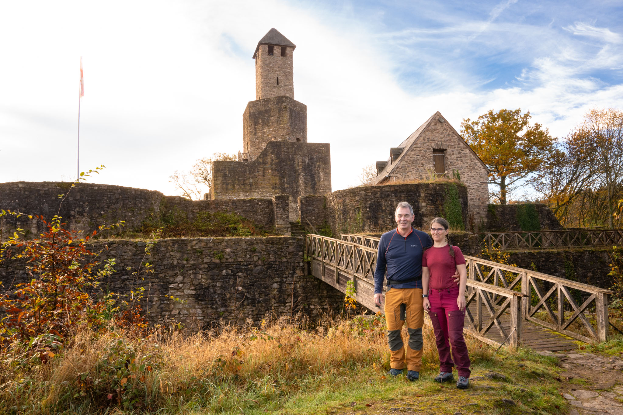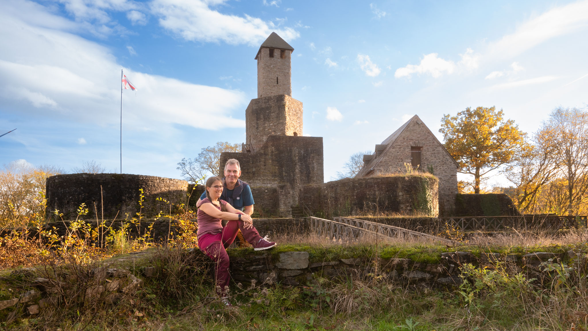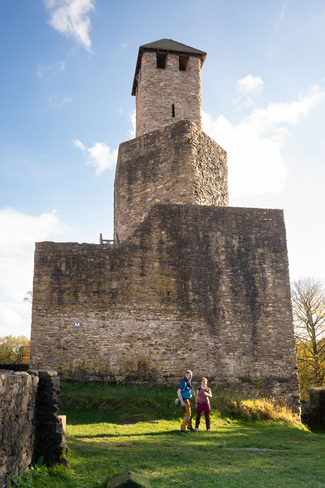 Heute früh sind wir noch einmal hoch zur Burg Grimburg, um ein Selfie machen zu können, bei dem wir nicht direkt im Gegenlicht stehen.