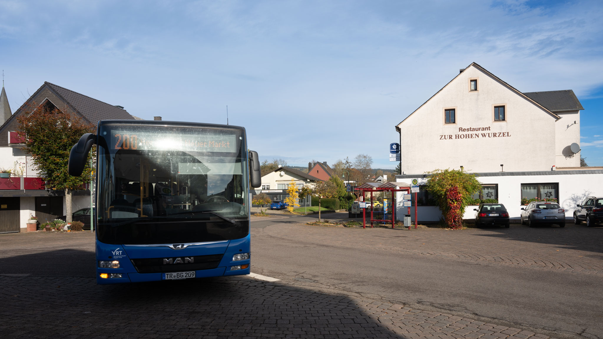 Am Wochenende fährt nur jeweils alle zwei Stunden ein Bus in den Nachbarort Hermeskeil oder nach Trier.