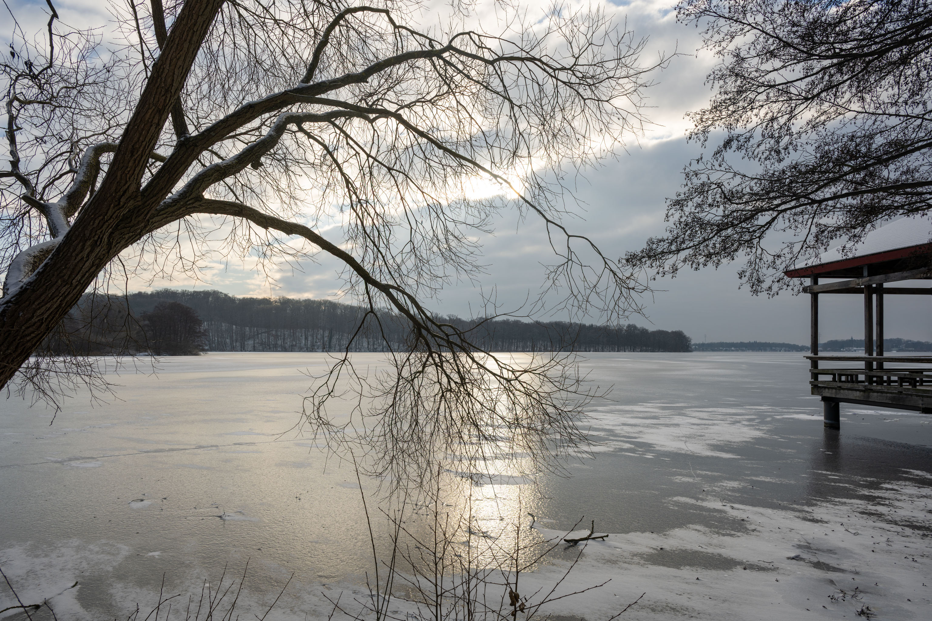 So ein zugefrorener See ist übrigens alles andere als still. Nachdem wir völlig alleine unterwegs und weite Teile des Sees schneefrei waren, konnte man die Bewegungen im Eis – das Knarzen und Krachen – richtig laut hören. Teilweise bewegten sich die Geräusche direkt unter uns durch das Eis.
