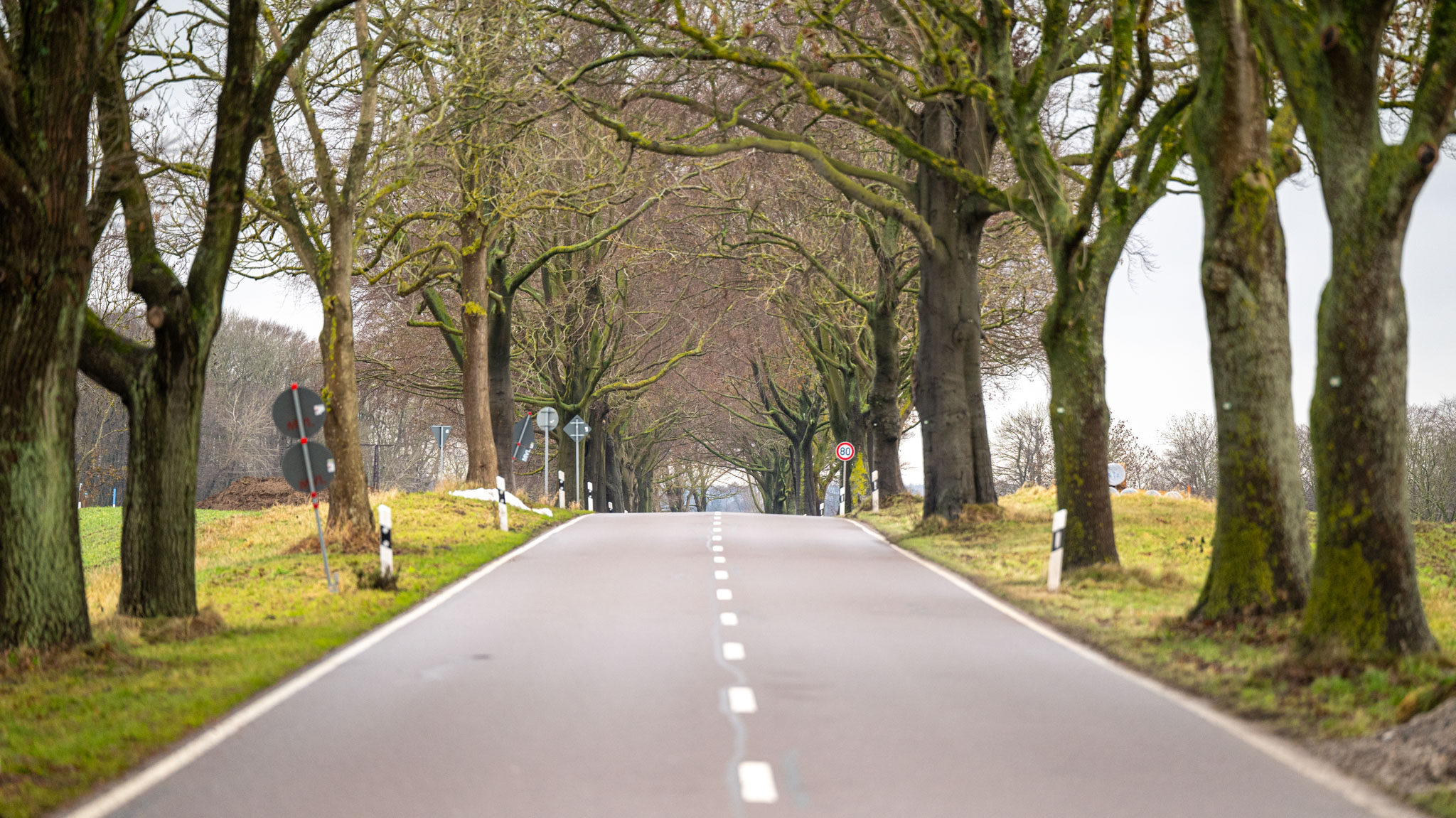 Ist die schönste Allee Rügens auch interessant, wenn sie nicht wie im Frühling und Sommer mit grünem Laub bedeckt ist? Oder wenn sie keine gelben oder roten Blätter wie im Herbst trägt? Oder wenn sie im Winter nicht voller Schnee oder in Nebelschwaden gehüllt ist, wie noch vor zwei Tagen, sondern einfach nur an einem grauen Dezembertag laubfrei ist? Diese Frage haben wir uns gestern Abend gestellt, als wir überlegt haben, was wir heute auf Rügen anschauen wollen.