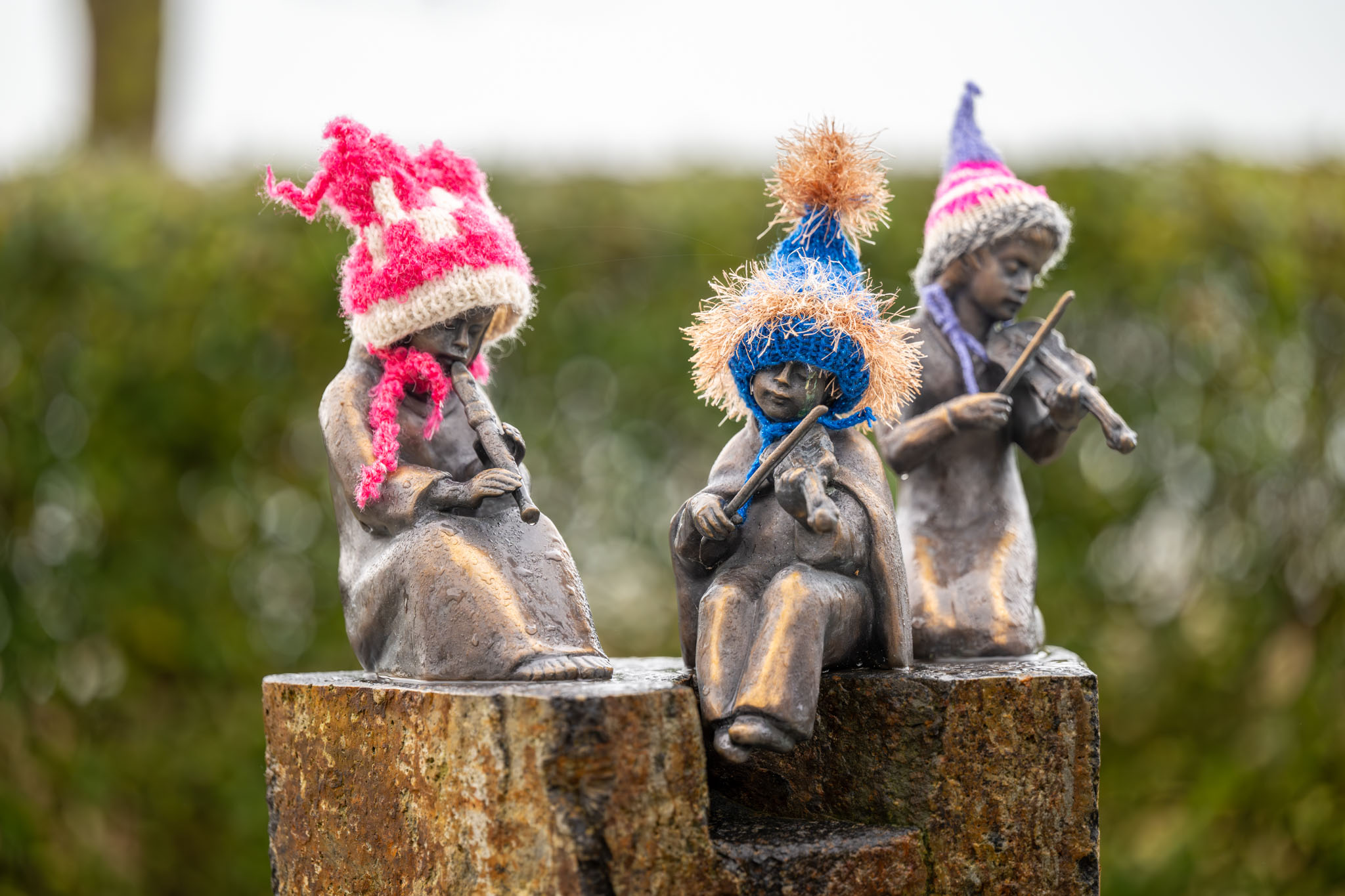 Auf dem Weg haben wir an der Binzer Strandpromenade festgestellt, dass sich dort um die vielen kleinen Skulpturen gekümmert wird. Alle hatten wärmende Mützen auf. 😉