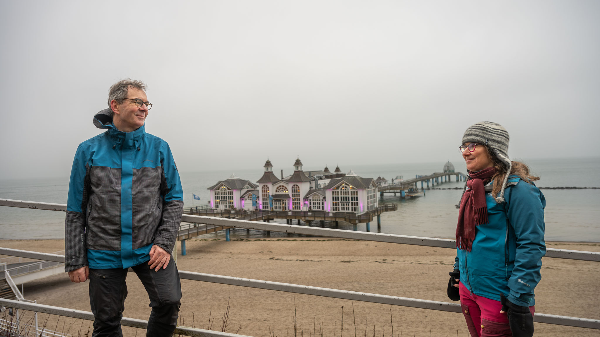 In Sellin haben wir dann nochmal unser Stativ ausgepackt, um weitere Selfies zu machen – diesmal mit der Seebrücke. (Lars hat an beiden Stellen auch Fotos von sich bekommen, die demnächst auch auf seiner Seite zu sehen sein werden.)