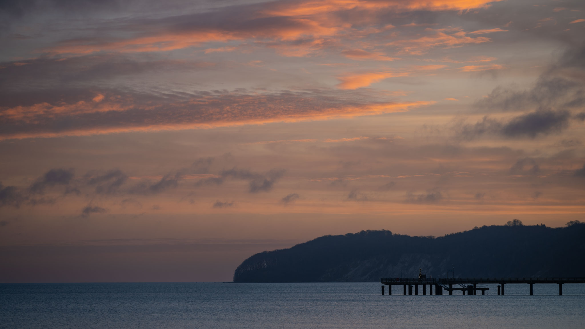 Am Morgen ist Maria zuerst einmal mit Kamera die paar Meter von unserer Ferienwohnung zum Binzer Strand gegangen, um den Sonnenaufgang zu fotogarfieren. (Ich habe es vorgezogen, noch ein paar Minuten länger liegen zu bleiben und dann die warme Dusche zu genießen.)