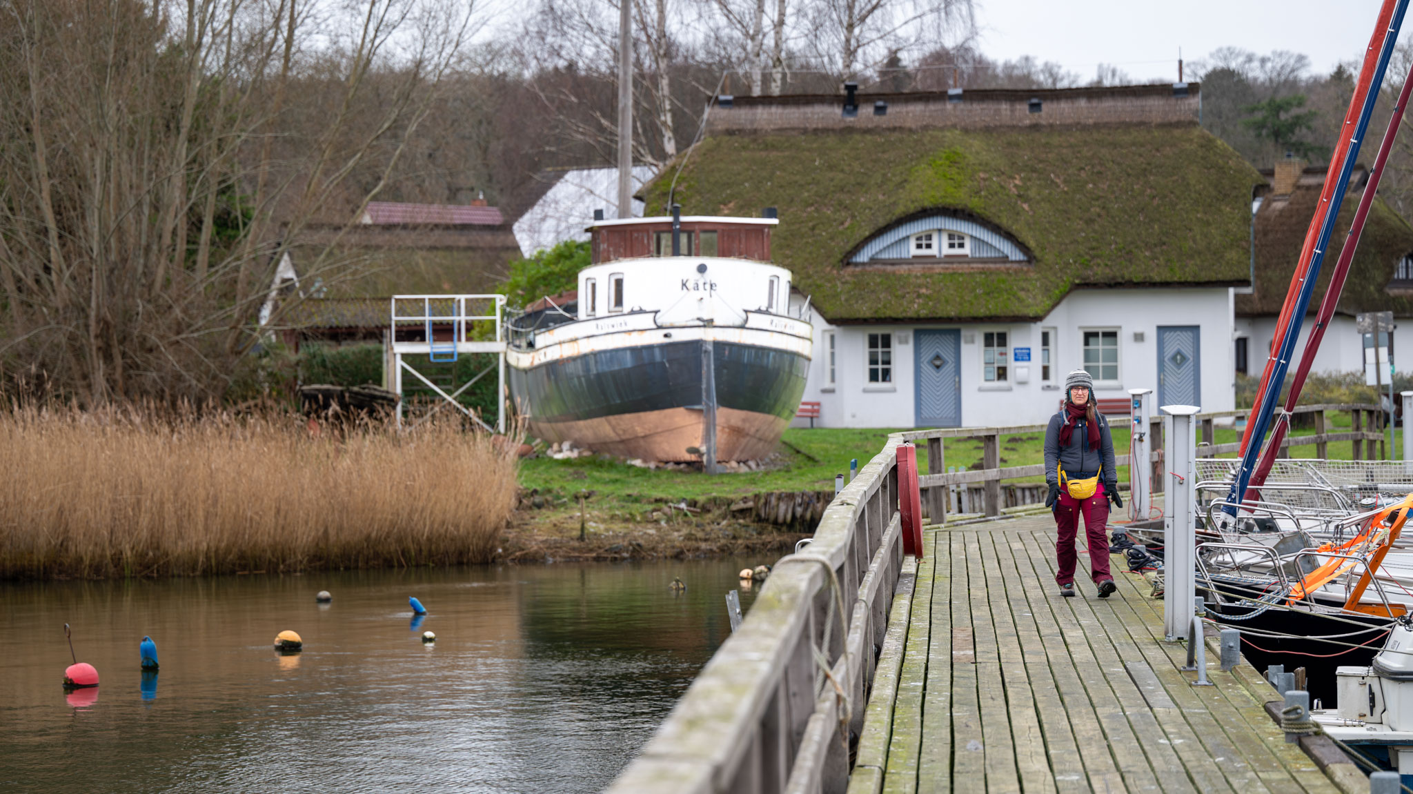 Unsere heutige Wanderung führte uns von Lietzow nach Westen an der Küste des Großen Jasmunder Boddens entlang, der heute mit unzähligen Schwänen bevölkert war. Im Gegensatz zu den letzten eineinhalb Wochen waren heute durchaus auch andere Leute unterwegs, je näher wir dem Dorf und dem Schloss Ralswiek kamen. Im Hafen von Ralswiek gab es dann zusätzlich auch noch Reiher (u. a. Silberreiher) so nah, dass man sie sogar fotografieren konnte.