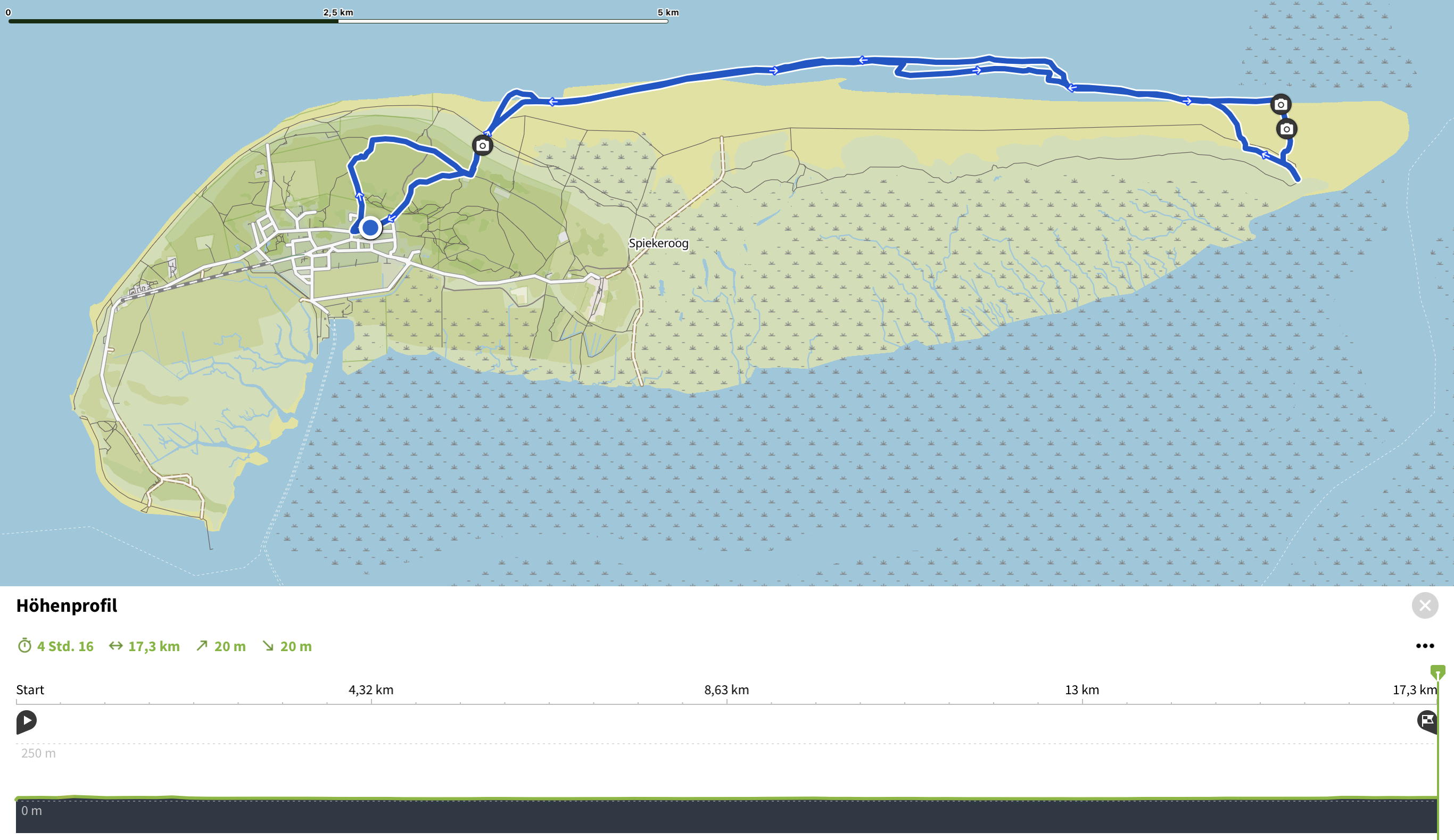 Heute stand endlich unsere erste lange Inselwanderung an. Anders als auf Langeoog letztes Jahr ist dies auf Spiekeroog gar nicht so einfach. Spiekeroog ist zwar kaum kleiner, allerdings von der Struktur deutlich unterschiedlich. Zum einen liegt der Ort etwas zentraler, so dass die Strecken bis an die Inselenden nicht so lange sind. Zum anderen ist der ganze östliche Teil während der Brutsaison als Naturschutzgebiet nicht begehbar.