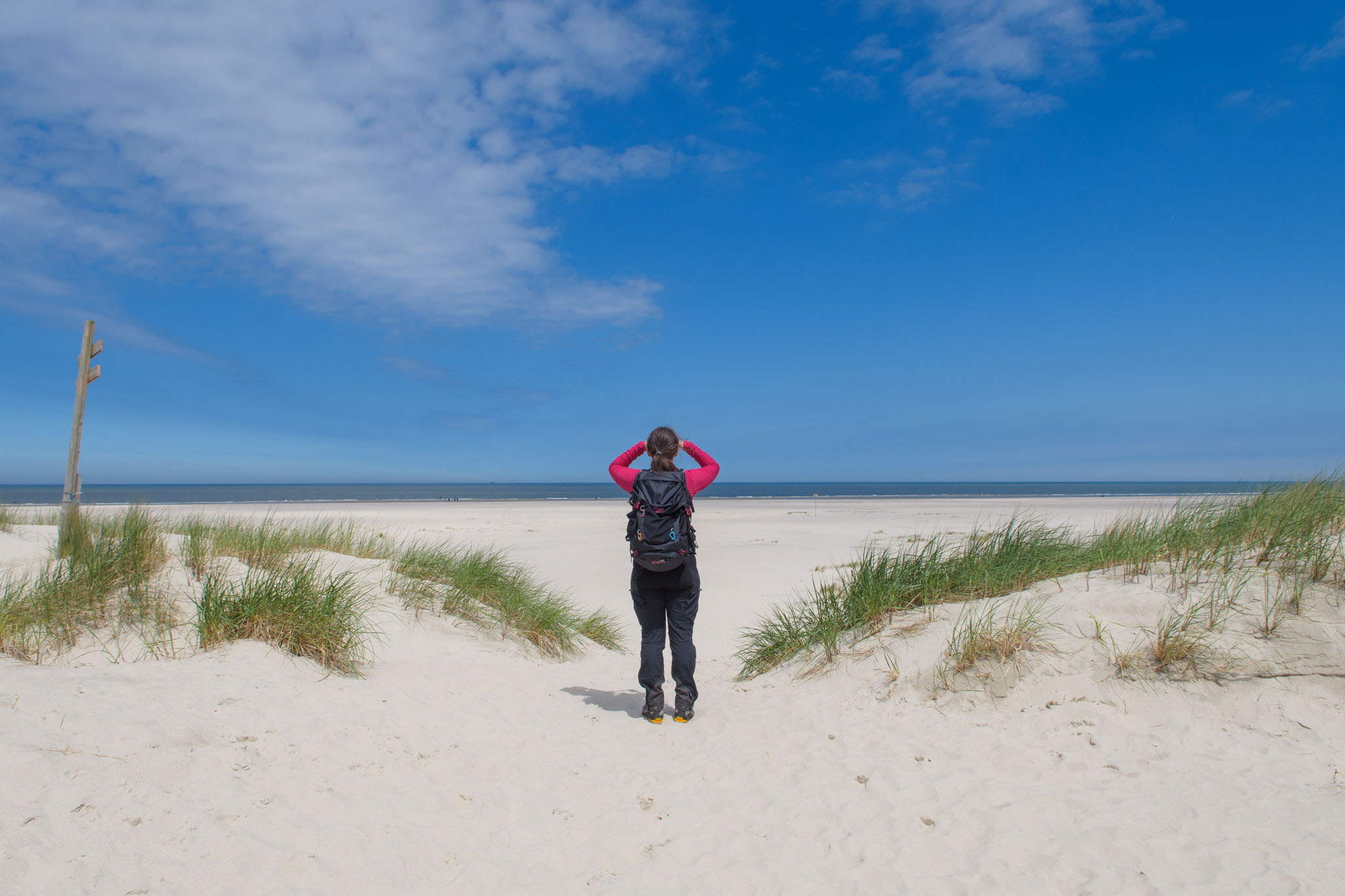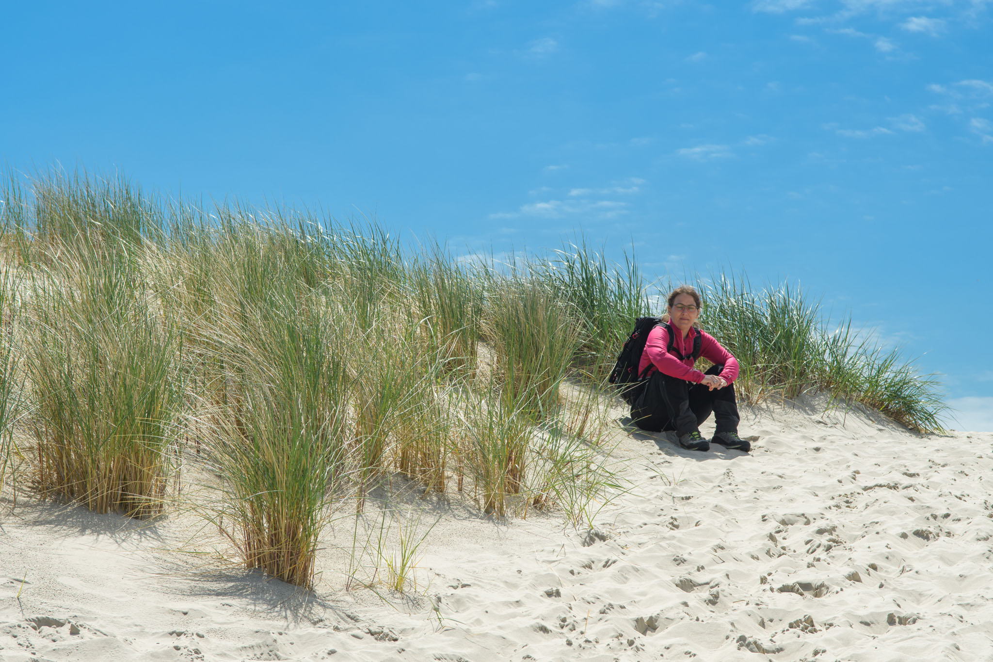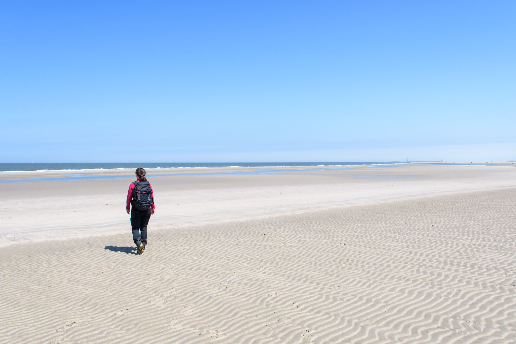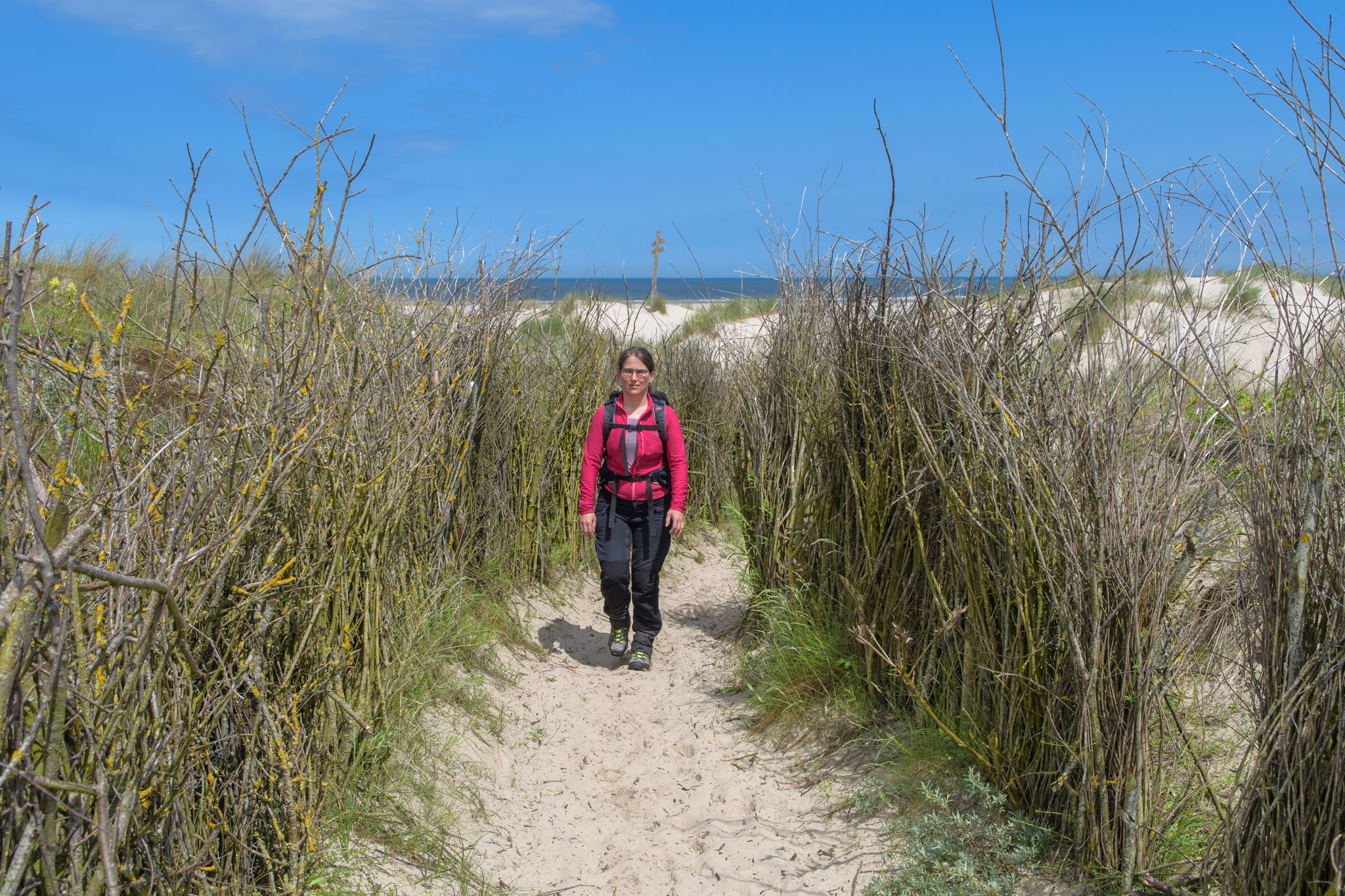 Am Strand entlang kommt man allerdings doch bis ganz ans Ostende. Weil es weniger anstrengend und damit schneller geht, wollten wir ursprünglich im Inselinneren zurück zu unserem Quartier wandern, doch dort waren dann Verbotsschilder. So mussten wir uns rückwärts schon sputen, denn wir wollten im Ort noch ein Eis essen, um 19 Uhr mussten wir zu einer Pflicht-Infoveranstaltung für eine große Wattwanderung übermorgen und für 19:30 Uhr hatten wir einen Tisch zum Abendessen reserviert – das ist hier nötig, obwohl gar nicht so viele Gäste auf der Insel sind.