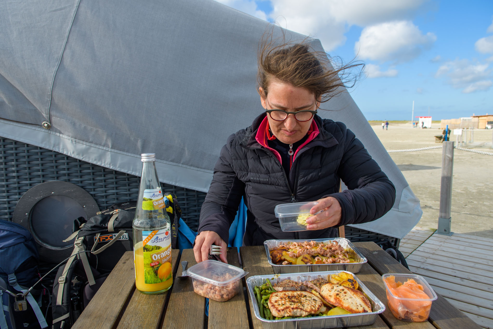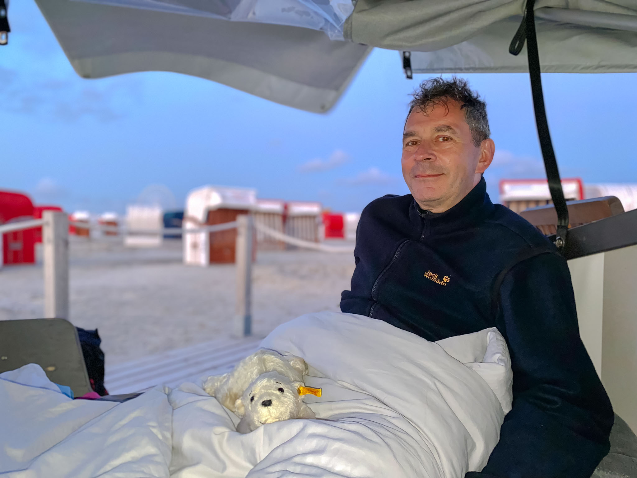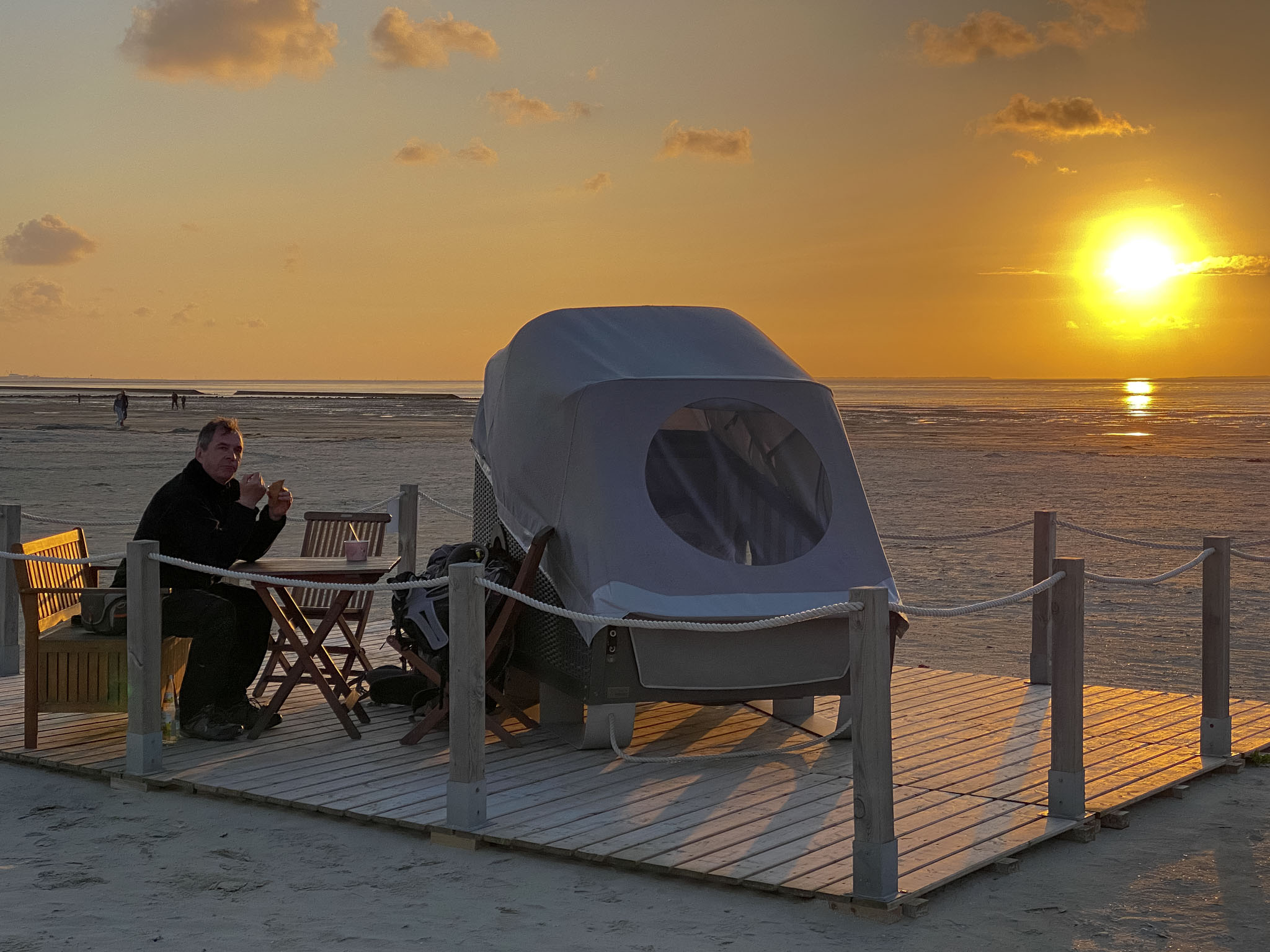 Vergangene Nacht haben wir zum Abschluss in Bensersiel im Schlafstrandkorb übernachtet – weswegen wir überhaupt an die Nordsee gefahren sind. Auf den Fotos seht Ihr, was wir dort in und um den Schlafstrandkorb von gestern Nachmittag bis heute früh so gemacht haben. Das Wetter hat auch an unserem letzten Urlaubstag (fast) perfekt gepasst. Lediglich etwas weniger Wind hätten wir uns gewünscht. Auf der anderen Seite war es sehr interessant, in der Nacht das Pfeifen des Windes zu hören, während man schön angenehm und warm im Strandkorb lag.