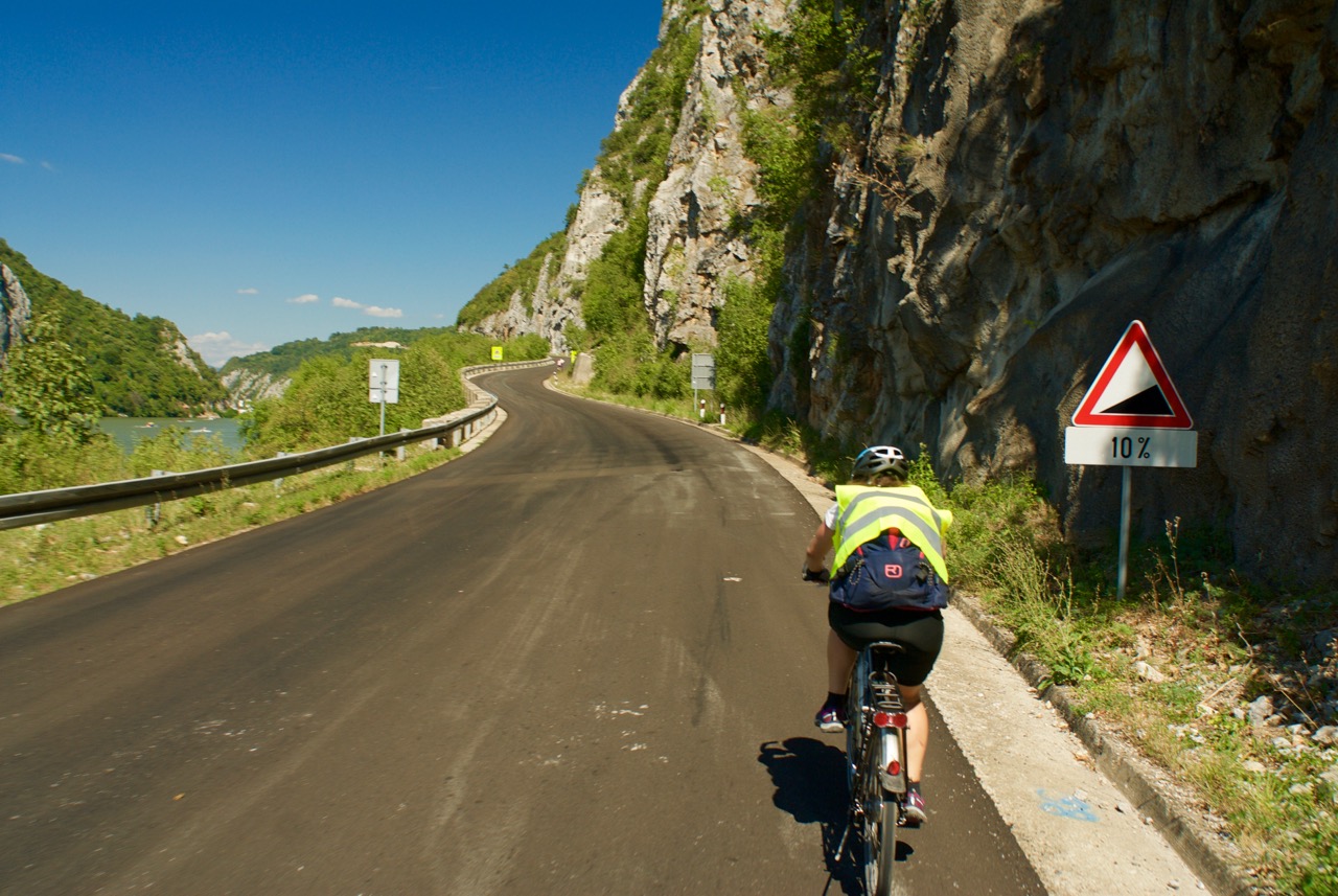 Gleich am zweiten Tour-Tag stand die erste Königsetappe an. Auf knapp 90 km und 650 Höhenmetern bei fast 30 °C im Schatten (aber Schatten gab es kaum) ging es zum Donaudurchbruch "Eisernes Tor" an der Grenze zwischen Serbien und Rumänien. Das Eiserne Tor gilt als einer der imposantesten Taldurchbrüche Europas. Die Donau wird hier auf 200 m verengt und ist bis zu 77 m tief, so dass der Grund 15 m unter dem Meeresspiegel liegt.