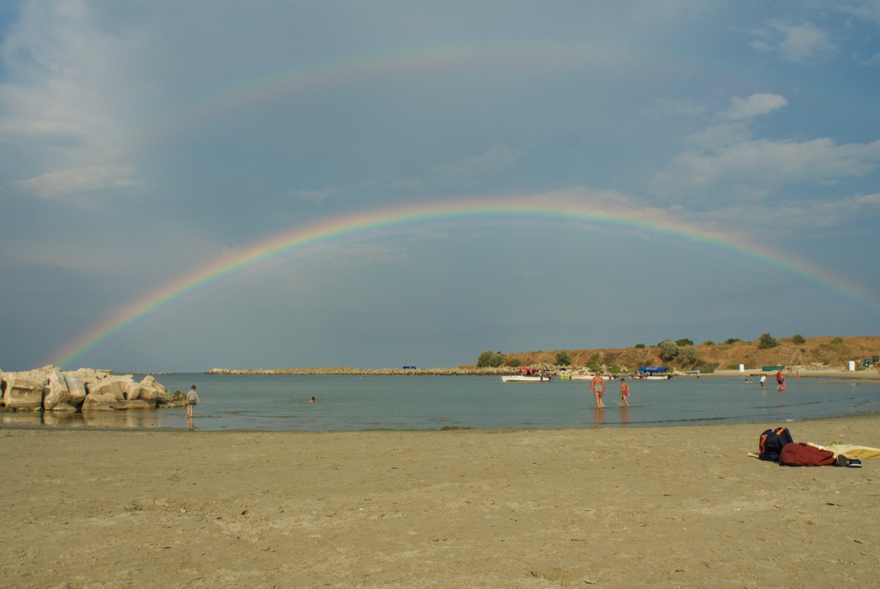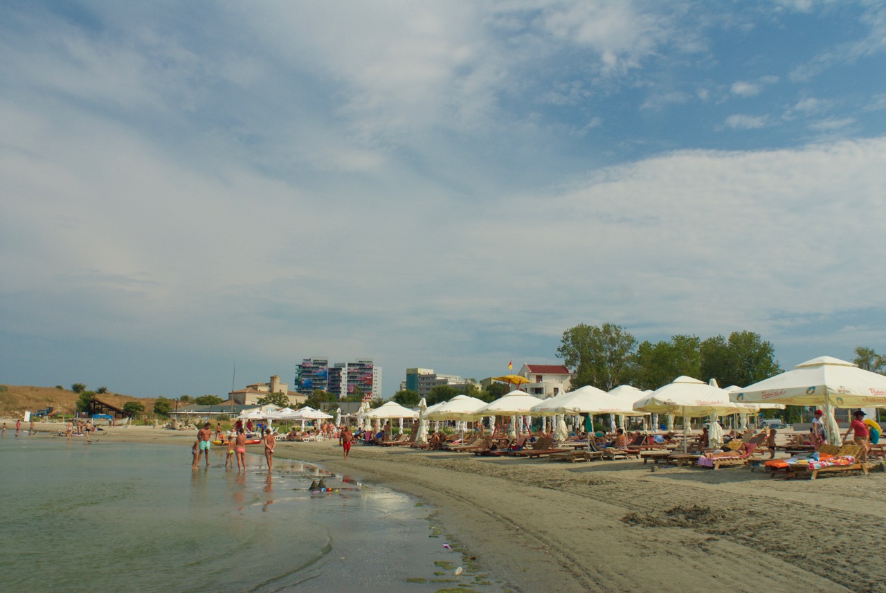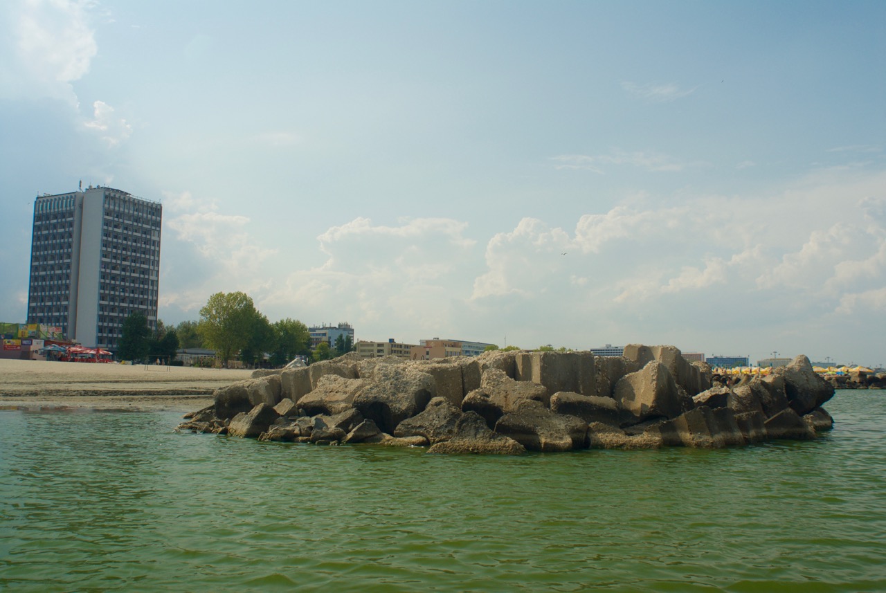 Eigentlich ist die Donau bei Călărași, wo wir übernachtet haben, nur noch etwa 100 km vom Schwarzen Meer entfernt, doch durch das Dobrudscha-Plateau muss sie hier nach Norden abbiegen und schafft es erst ganz im Norden Rumäniens an der Grenze zur Ukraine, ins Schwarze Meer zu fließen. Das hat uns aber nicht davon abgehalten, heute schon im Schwarzen Meer zu baden: Wir haben am Nachmittag einfach den Bus Richtung Constanța (Konstanza) ans Schwarze Meer genommen.