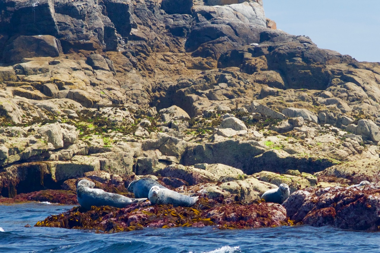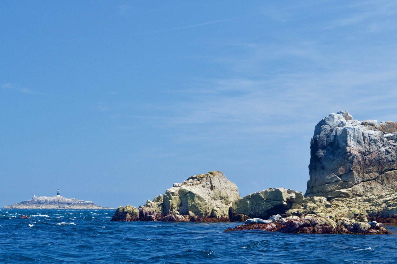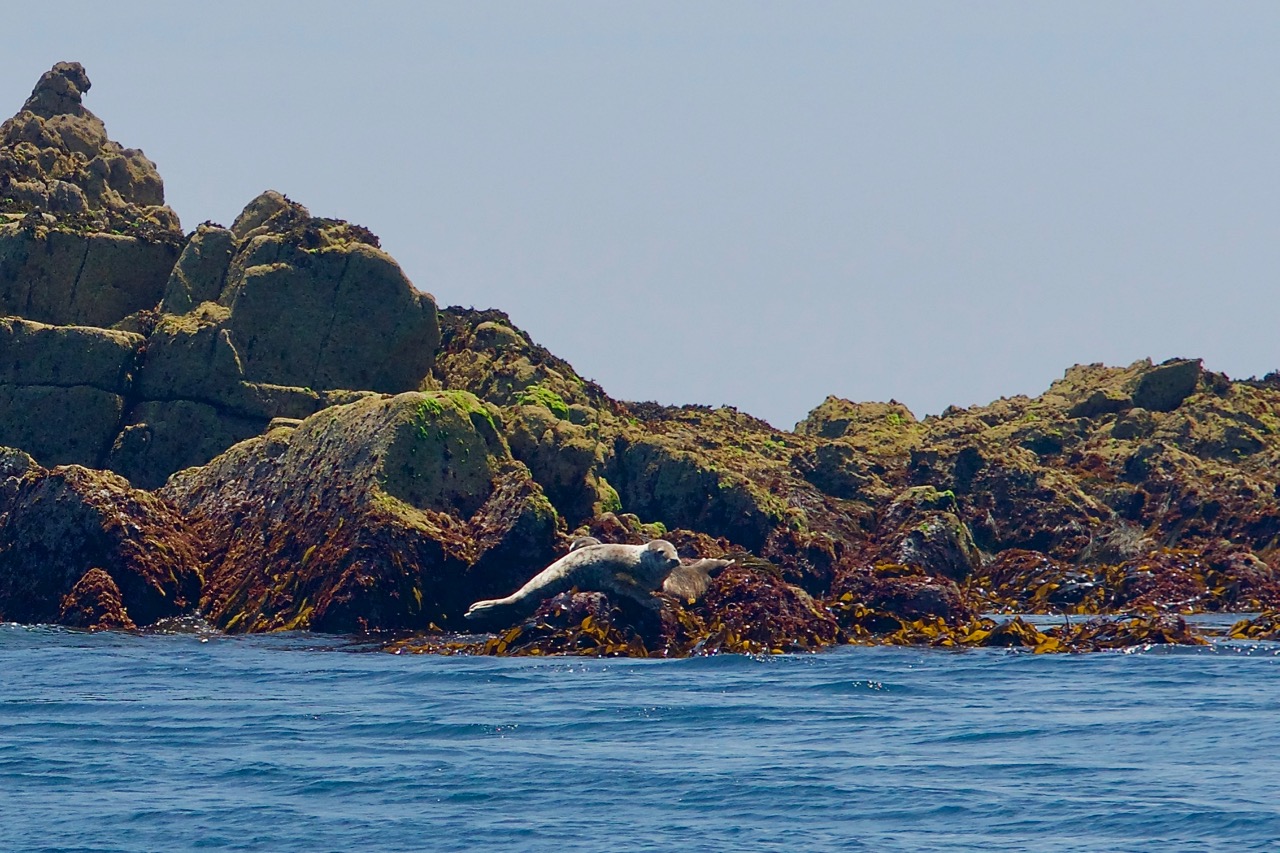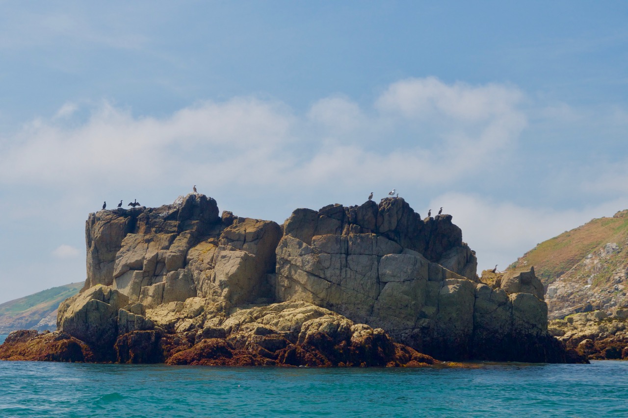 An unserem letzten Tag im Ärmelkanal ging es mit einem ziemlich kleinen, ziemlich schnellen, ziemlich roten Boot noch einmal um einige Inseln rund um Guernsey und Herm. Unser eigentliches Ziel waren Puffins. Die haben wir zwar nicht gesehen, dafür Delfine, Robben und div. andere Vögel.