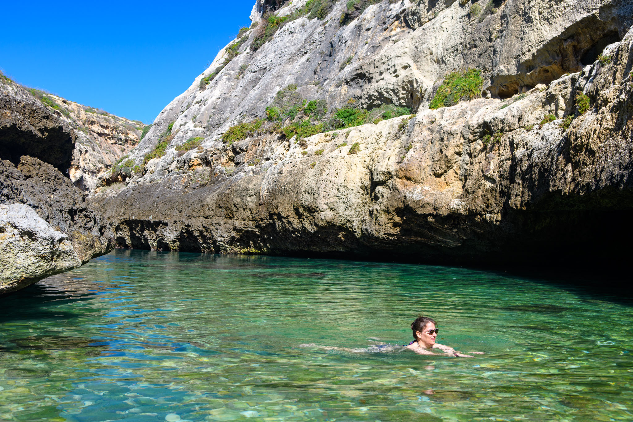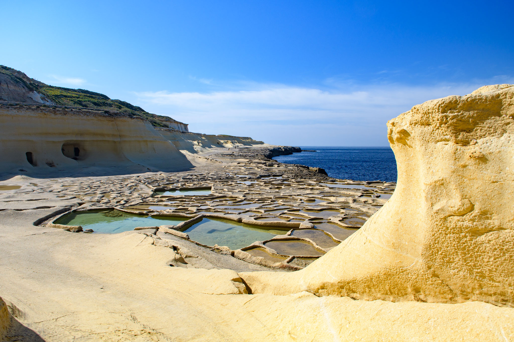 Gozo ist die kleine Insel im Nordwesten von Malta und auf die ging es gestern. Unsere Wanderung ging in Rabat (Victoria), der Hauptstadt von Gozo, los und führte uns nach Norden zum Tal Wied il-Għasri mit seiner wunderschönen engen Badebucht. Da dorthin kein Bus fährt, war diese trotz ihrer Schönheit alles andere als überlaufen. Weiter ging es an der Küste entlang zu den Salzpfannen bei der Xwejni-Bucht. Seit der Römerzeit wird dort Salz gewonnen und ein Teil der Salinen wird auch heute noch dafür genutzt.
