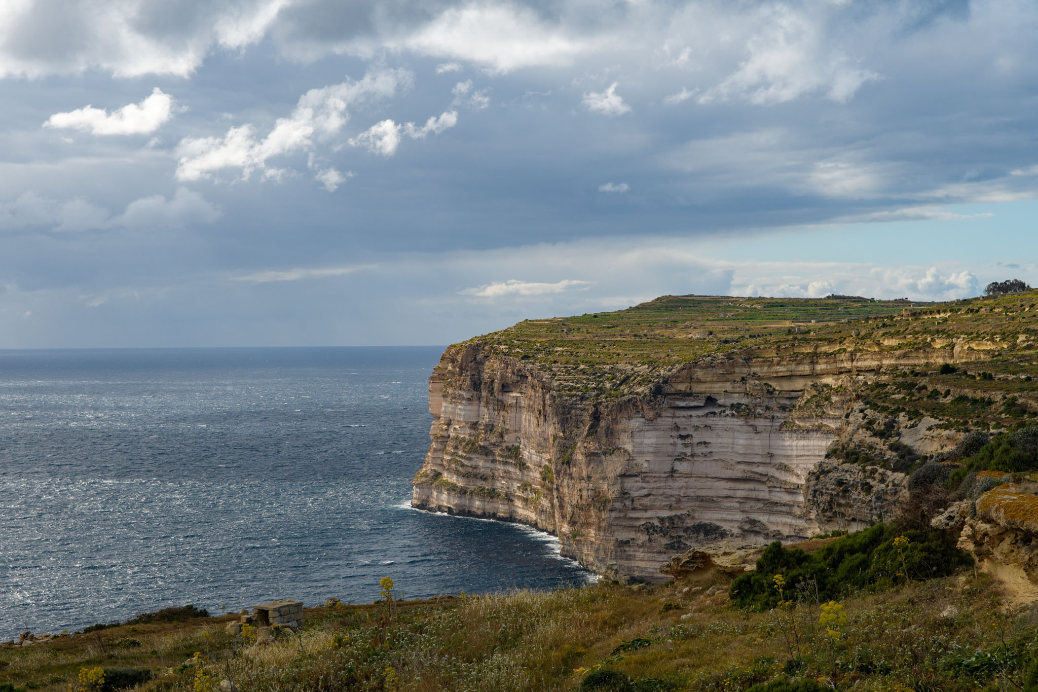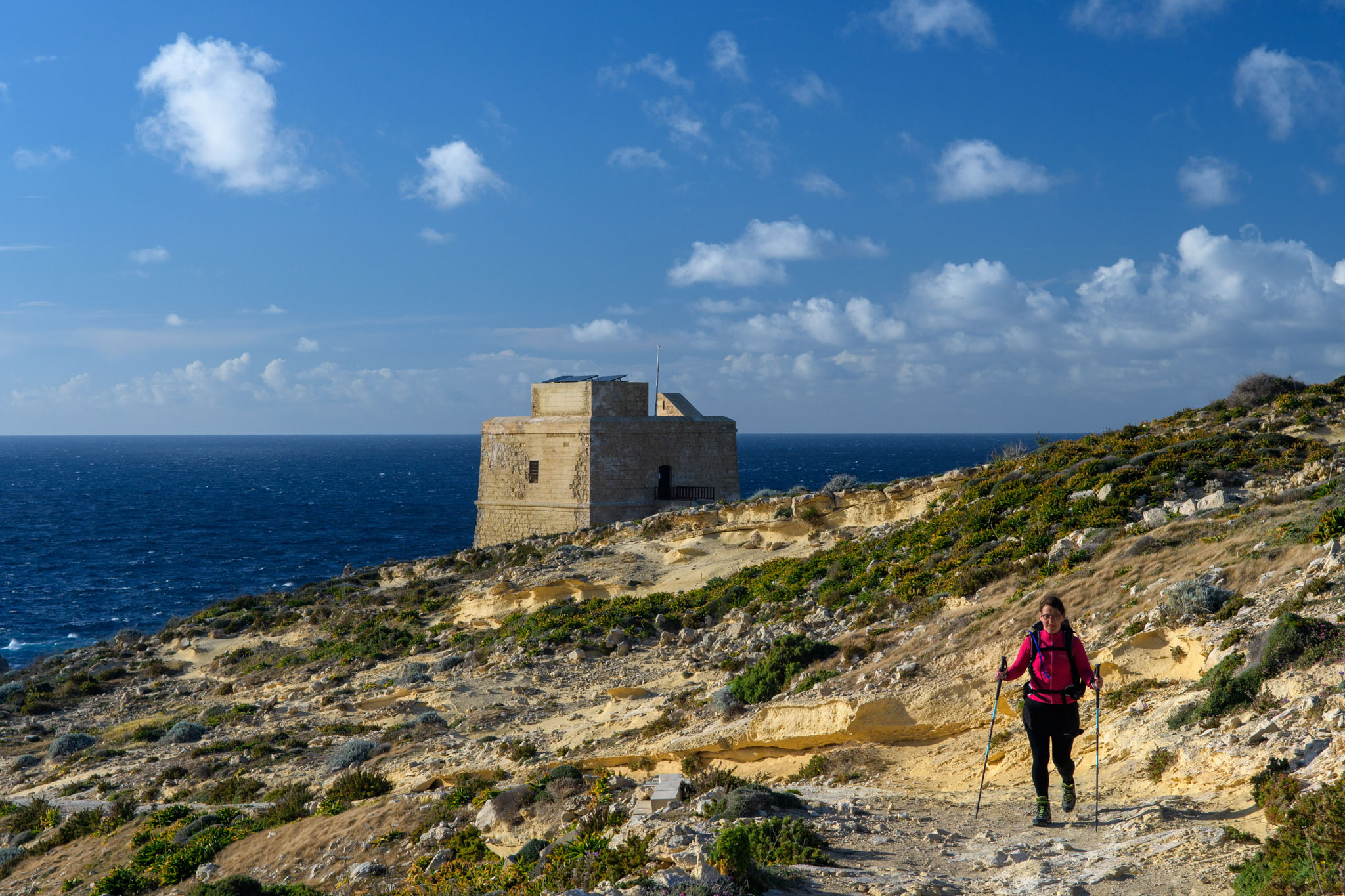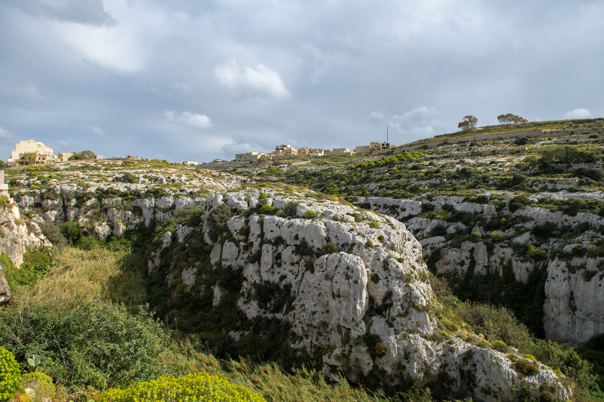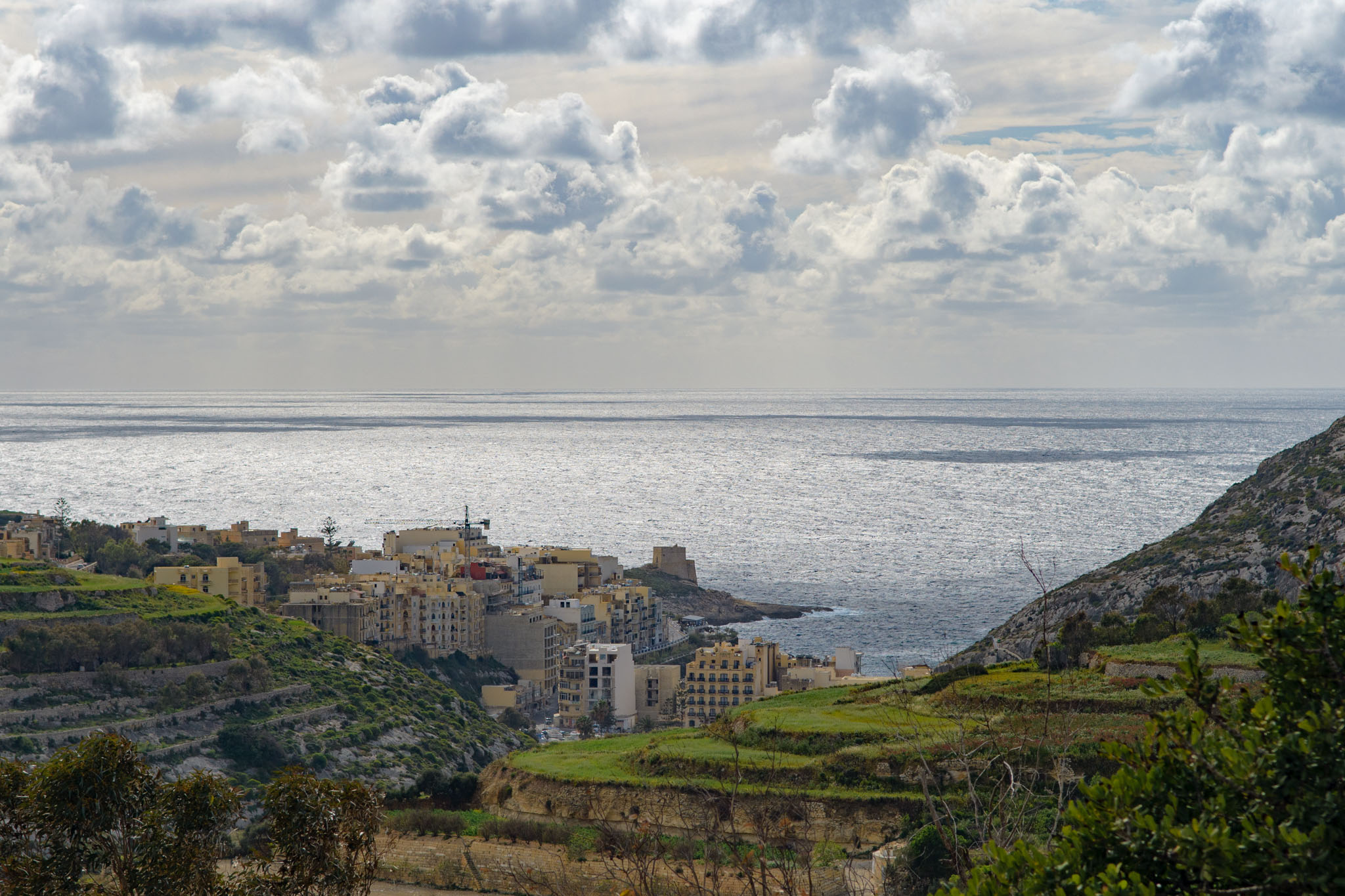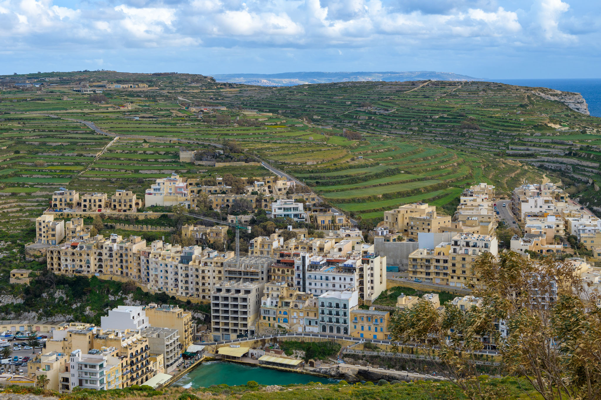 Xlendi ist ein kleiner Ort im Südwesten Gozos, der am Ende einer weit ins Land eingeschnittenen Fjord-ähnlichen Bucht liegt. Das Titelfoto oben zweigt einen Blick von unserer Wanderung zurück auf Xlendi und die Bucht, in der es liegt.