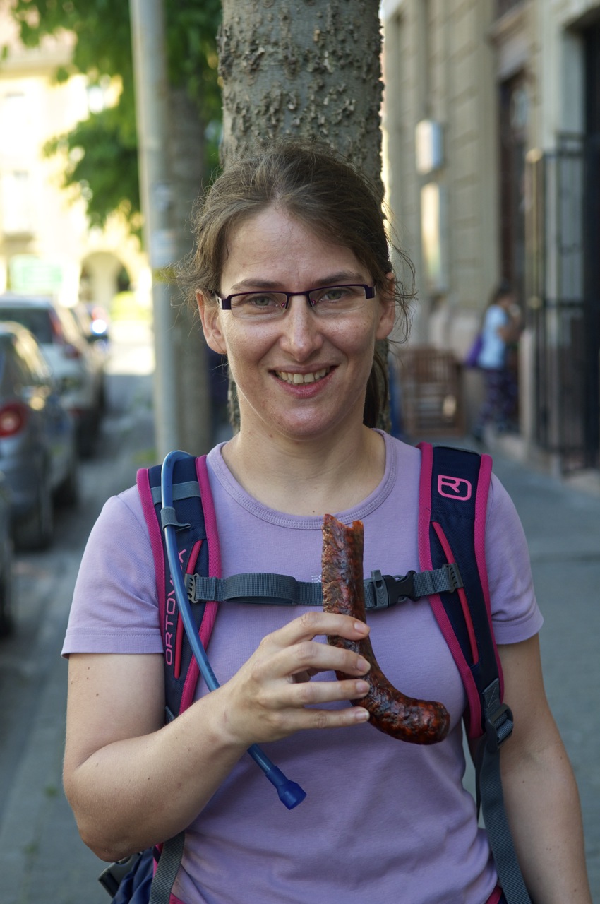 Am Ziel wurde Mia dann richtig glücklich, denn sie hat erstmals in diesem Urlaub eine ungarische Kolbász bekommen (s. Foto).