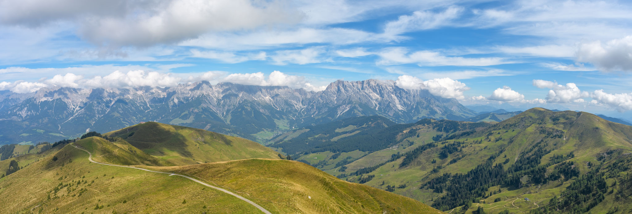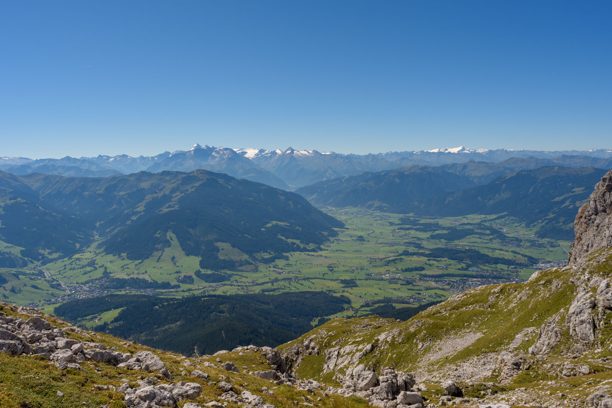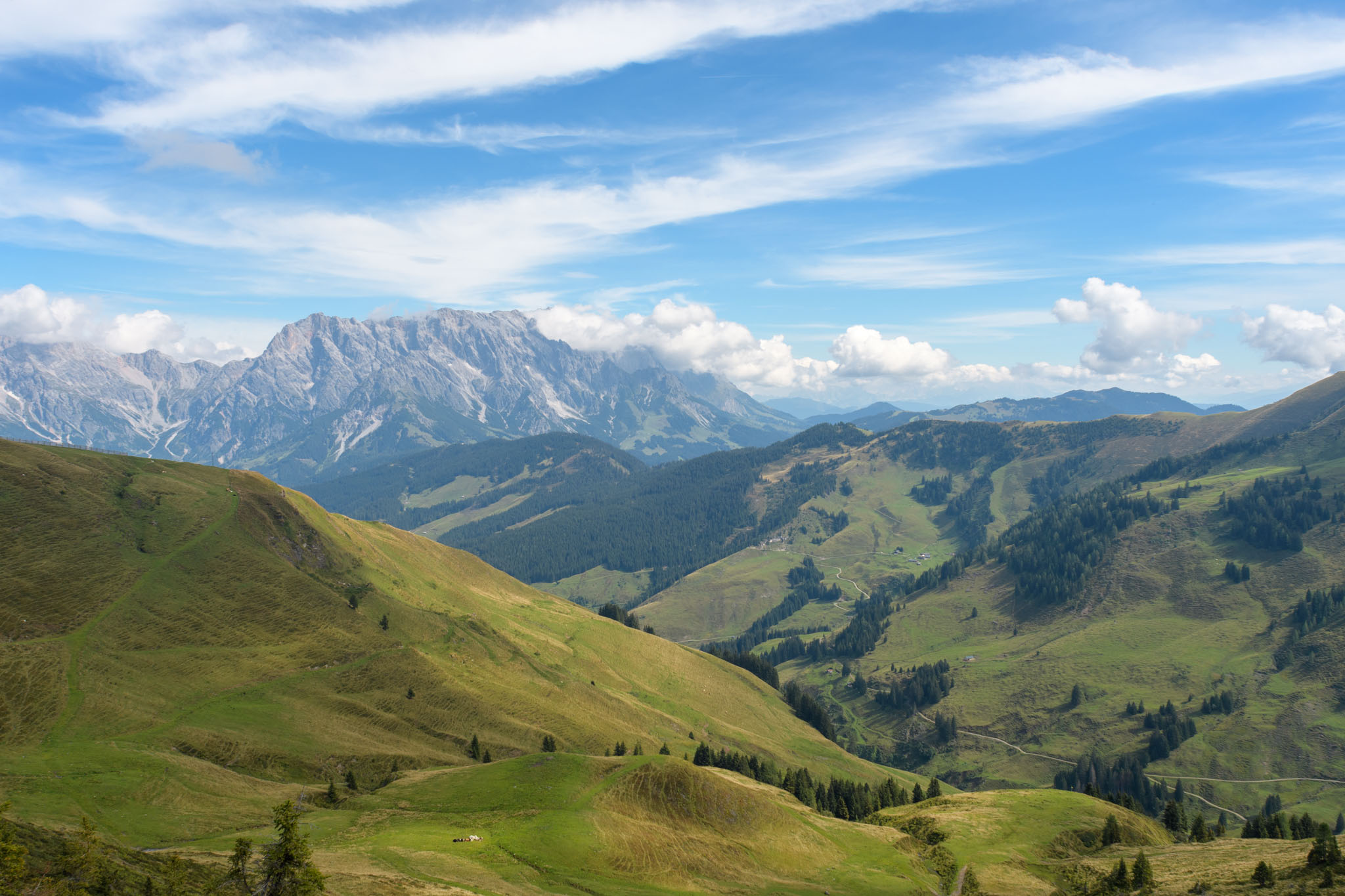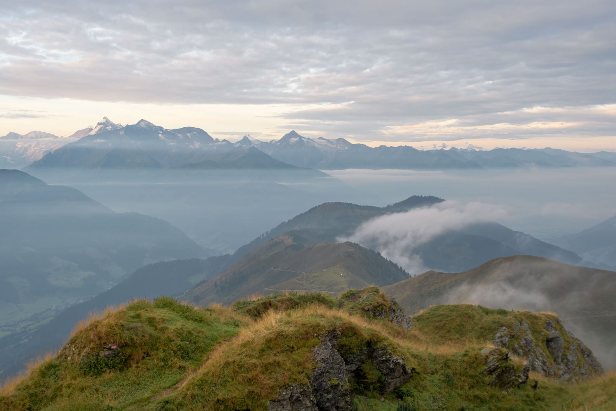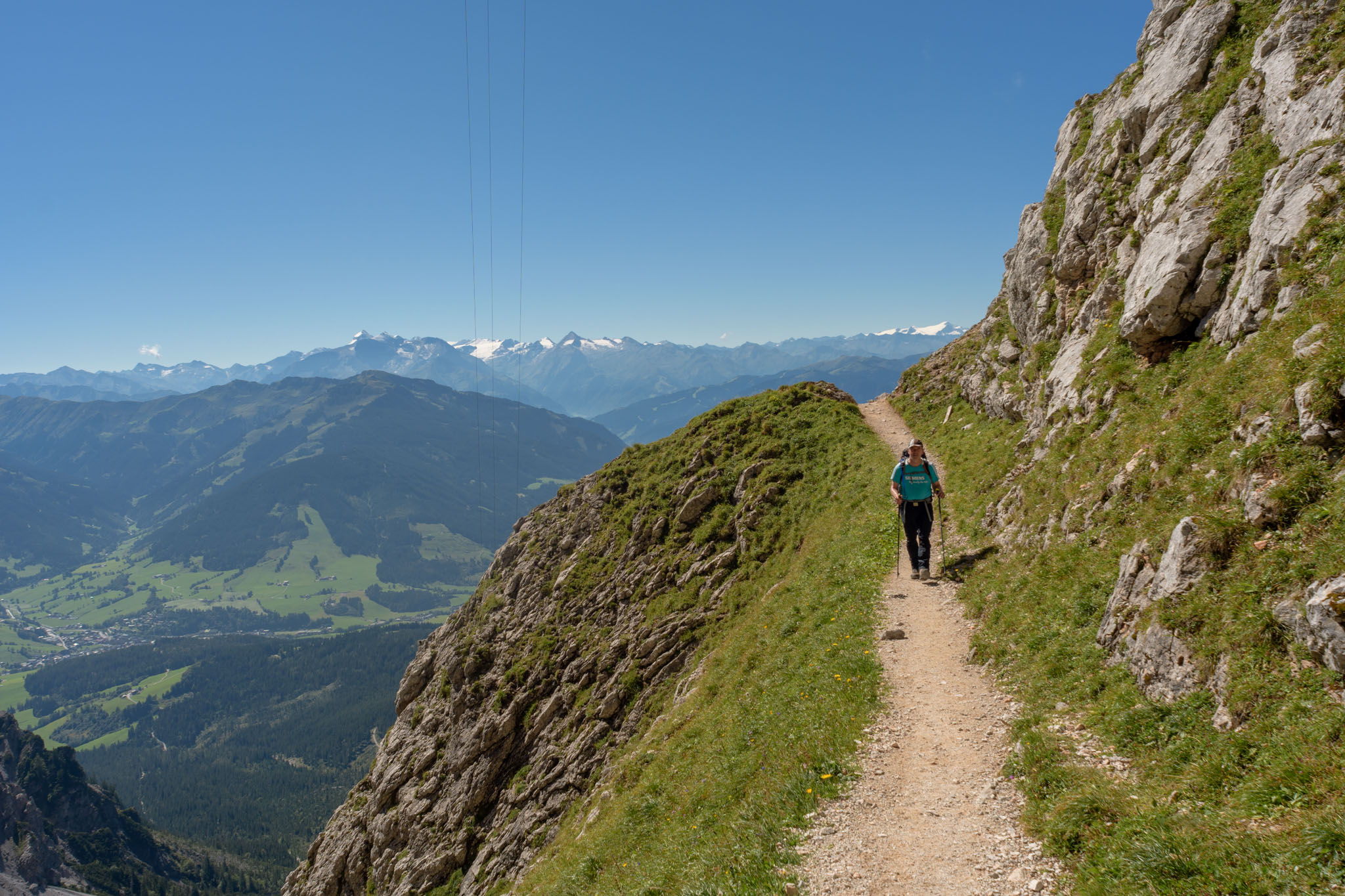 Über die Wiesen ging es weiter bergauf und wir waren froh über jede Wolke, die uns Schatten gespendet hat. Die Aussicht wurde immer besser, man sieht auch den Zeller See und den Hundstein mit Statzerhaus recht gut, der war teilweise aber in Wolken.
