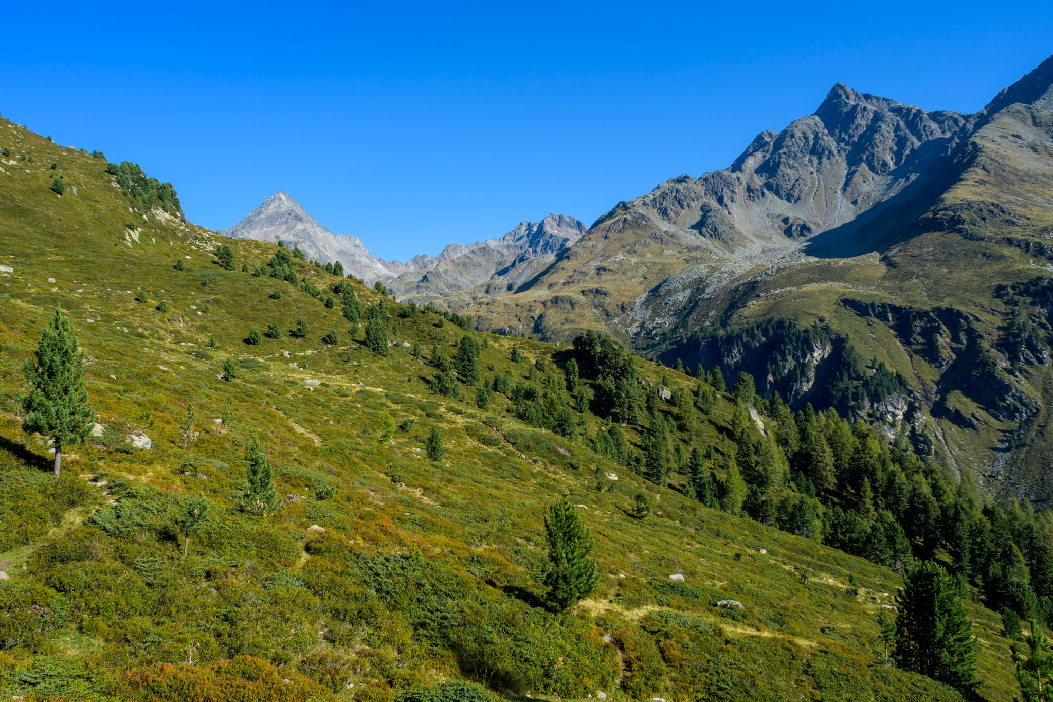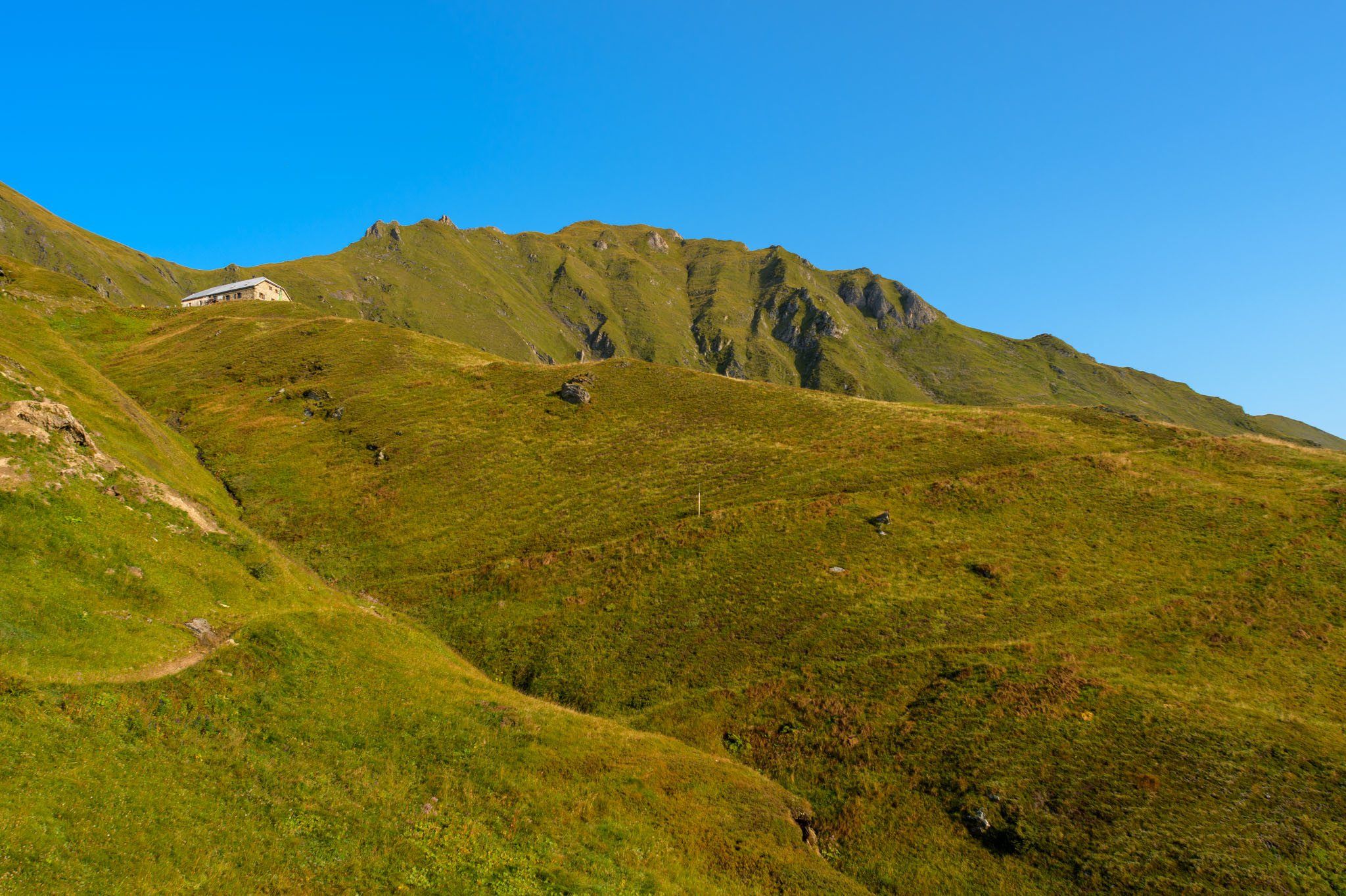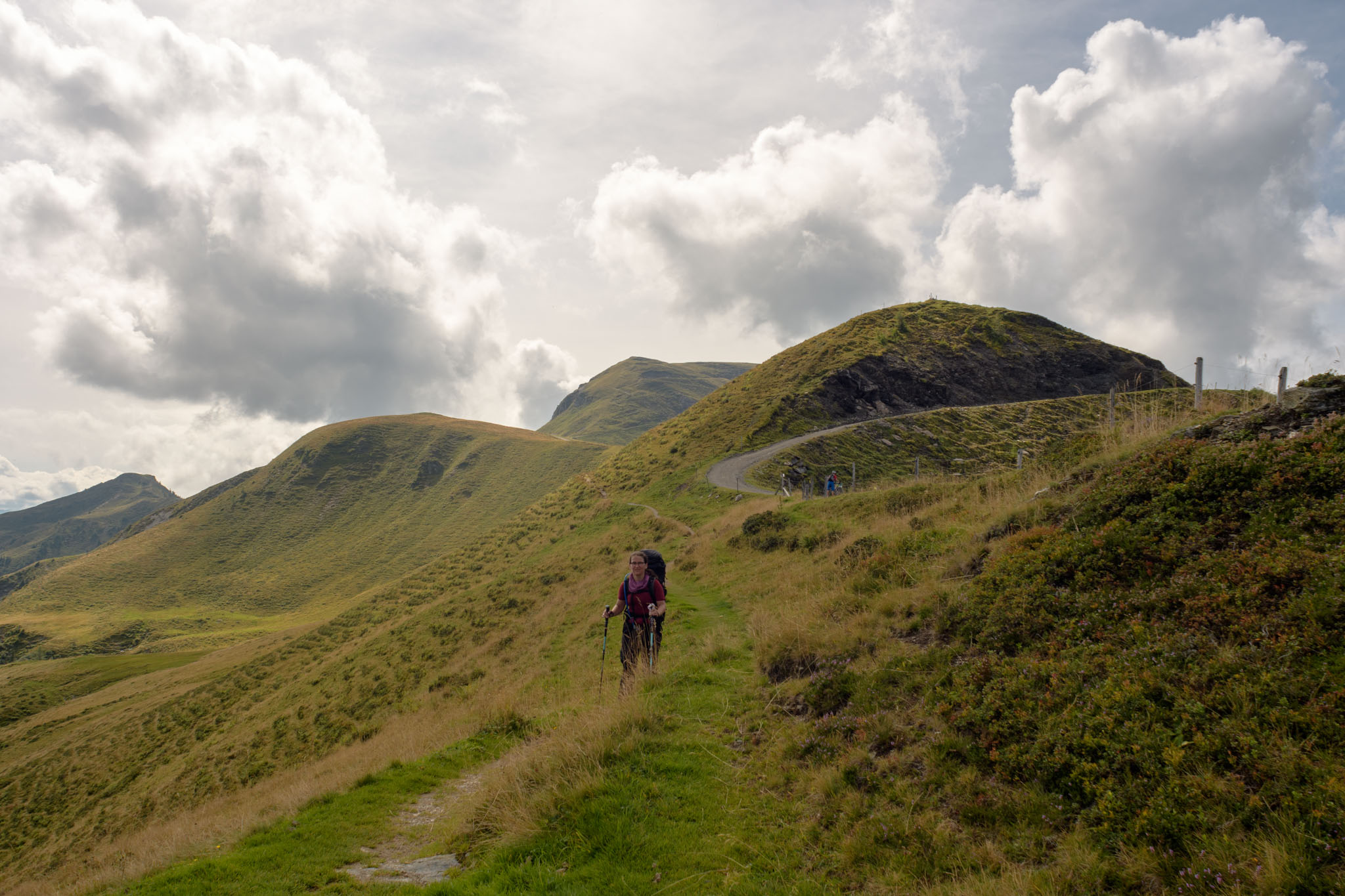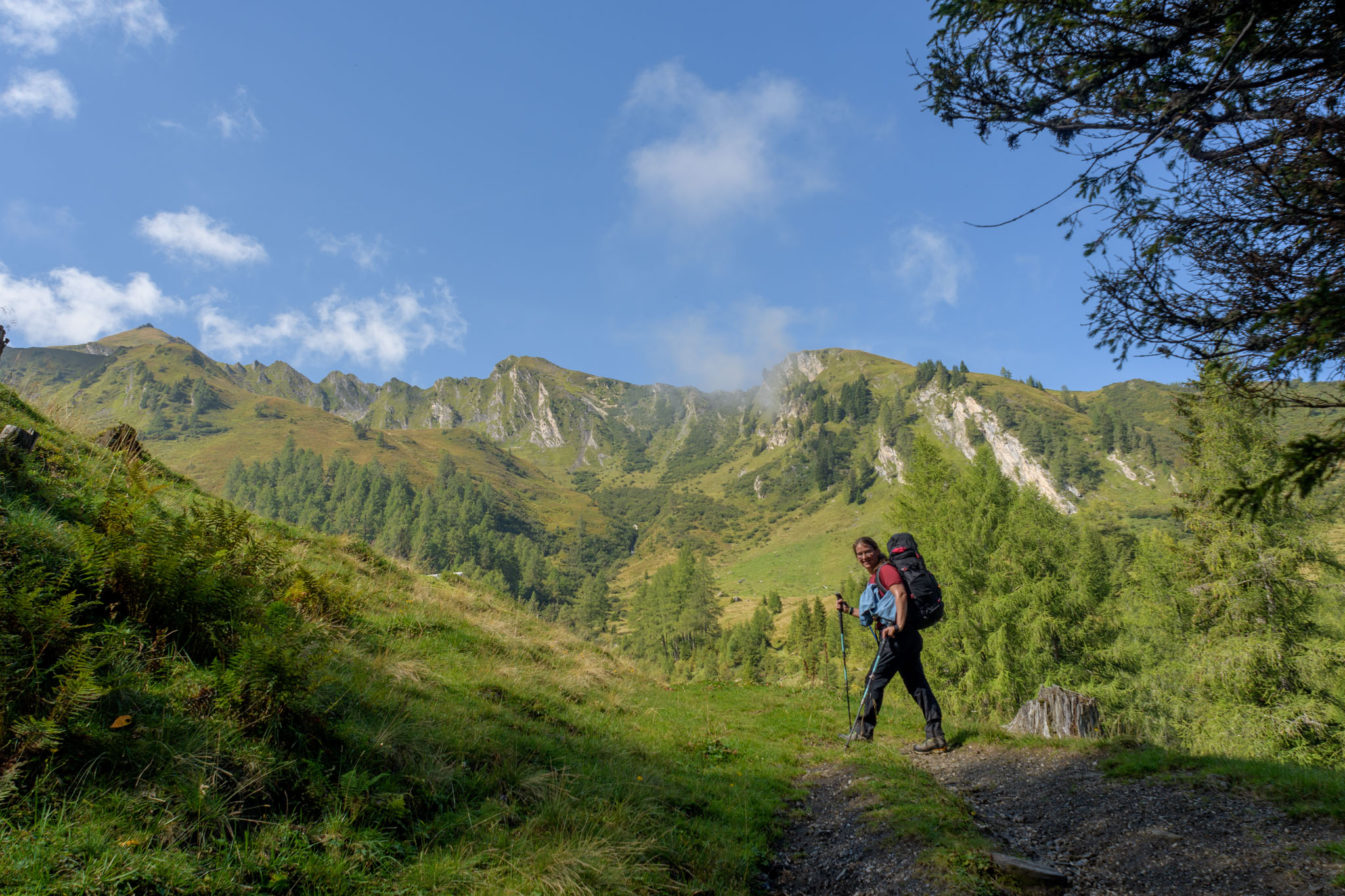 Heute geht es zwar nicht besonders weit, dafür aber die ganze Zeit in der prallen Sonne stetig bergauf zum Hundstein auf 2117 m. Damit geht es quasi die Höhenmeter, die wir gestern runter sind, heute wieder rauf.