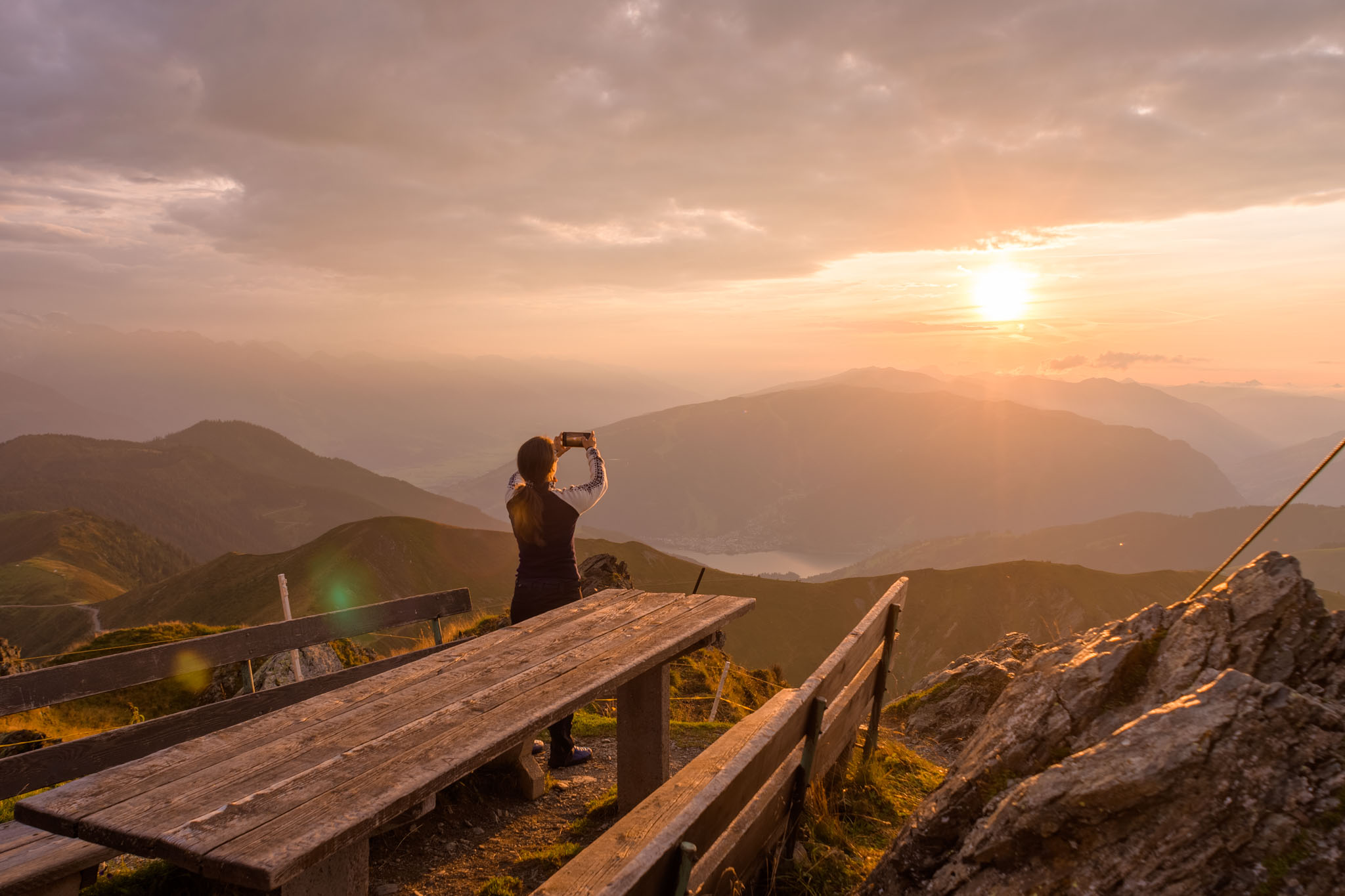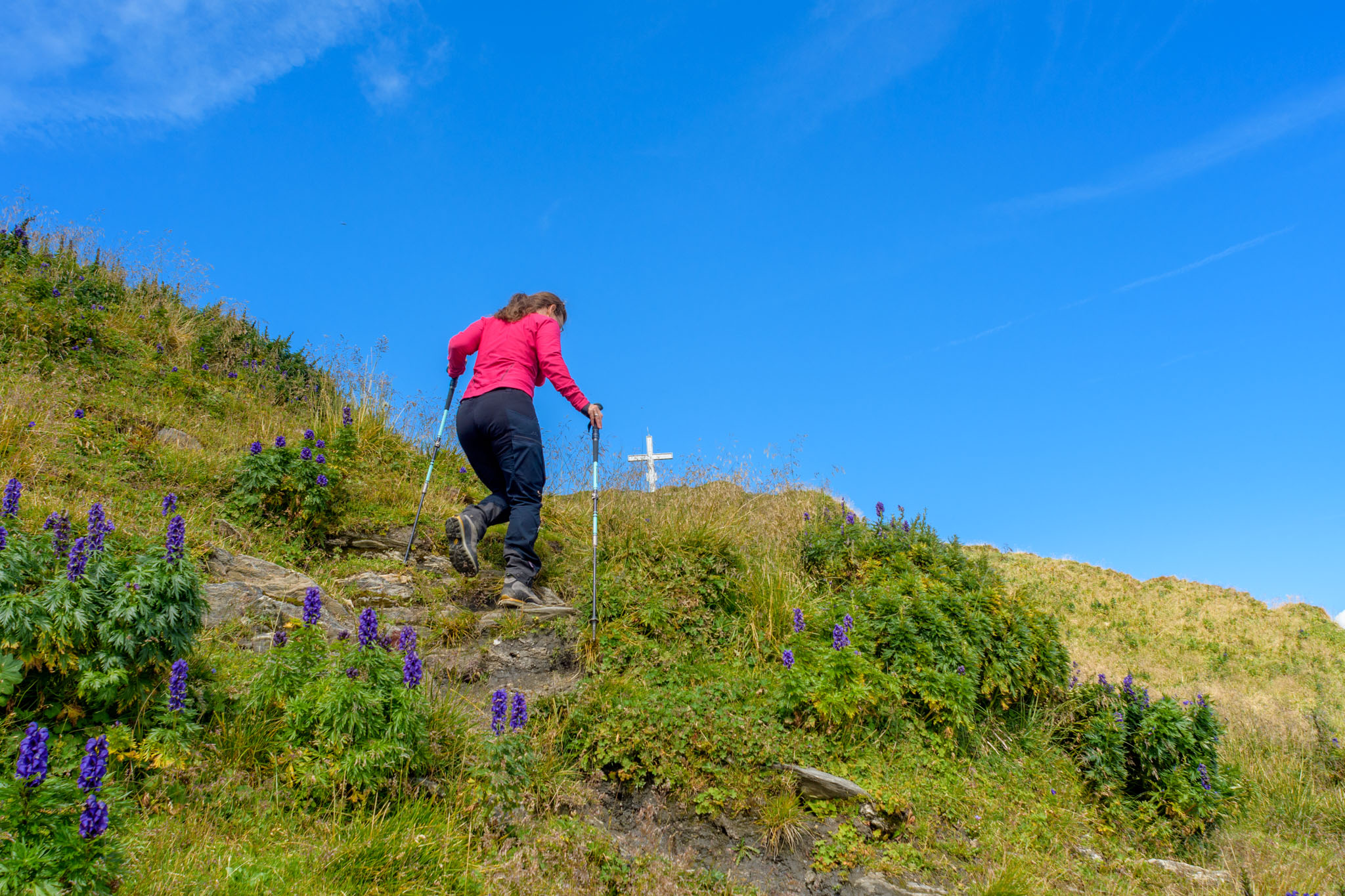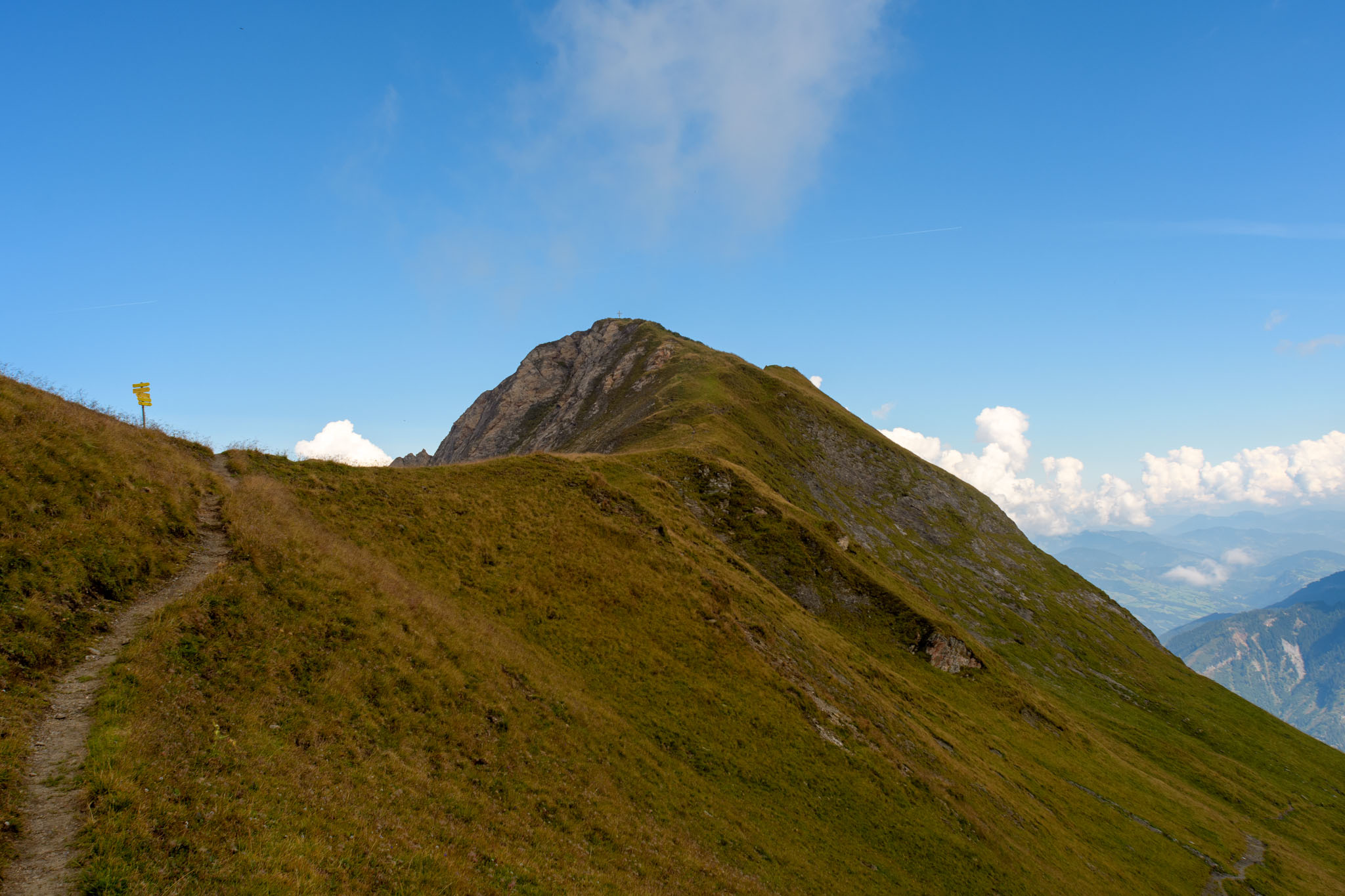 An der Kreuzung zum Imbachhorn ist schnell klar, dass der Abstecher hoch zum Gipfel wohl der einfachste Teil des heutigen Weges ist. Unsere Rucksäcke lassen wir trotzdem am Wegweiser liegen. Am Gipfel hat man eine wunderschöne Aussicht, vor allem auf den Zeller See.