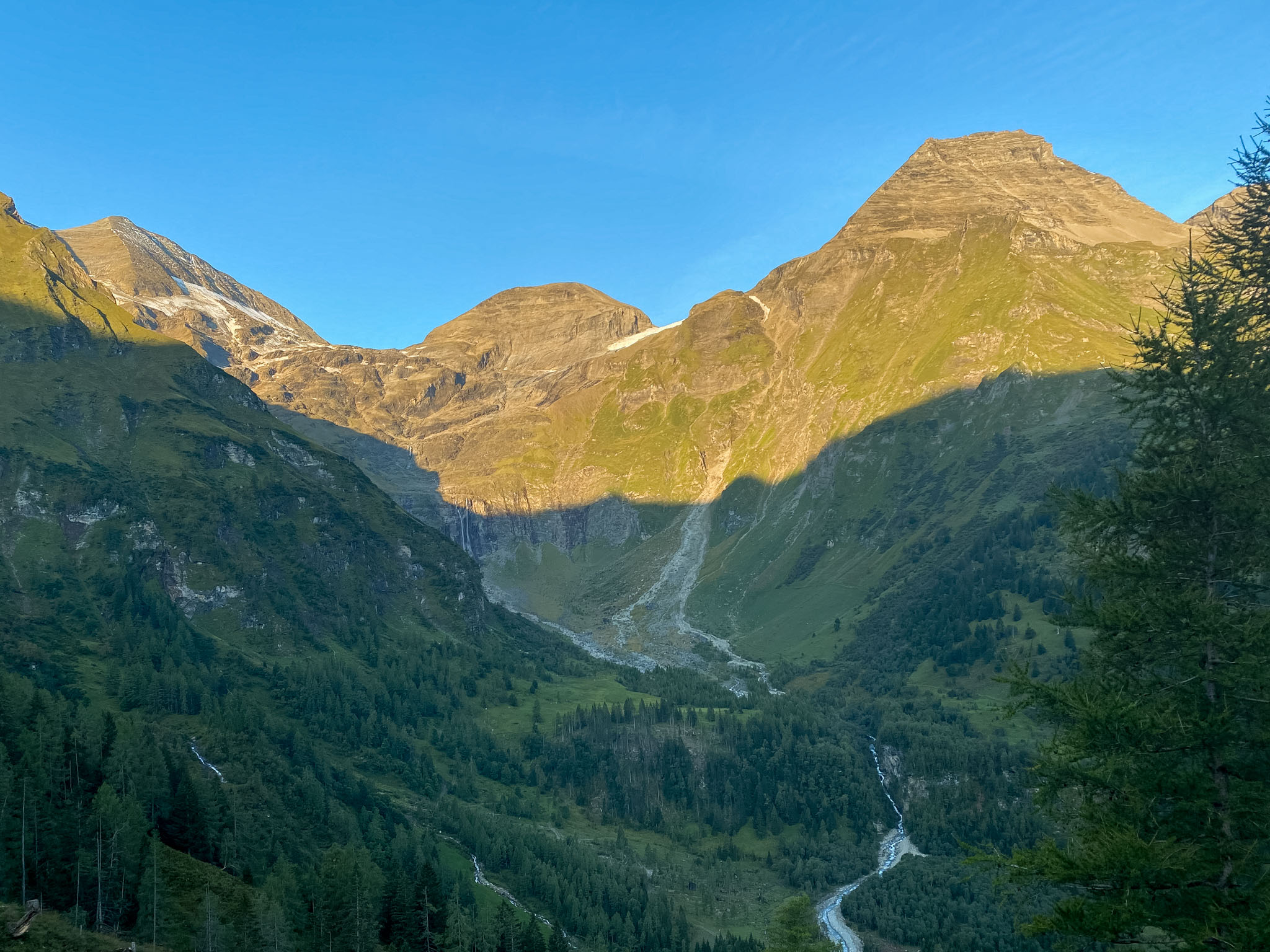 Im Tal haben wir dann bis zur Mautstelle der Großglockner-Hochalpenstraße den Bus genommen und sind von dort in der Sonne zur Trauneralm im Tal gelaufen, nur am Schluss geht es ein bisschen hoch.