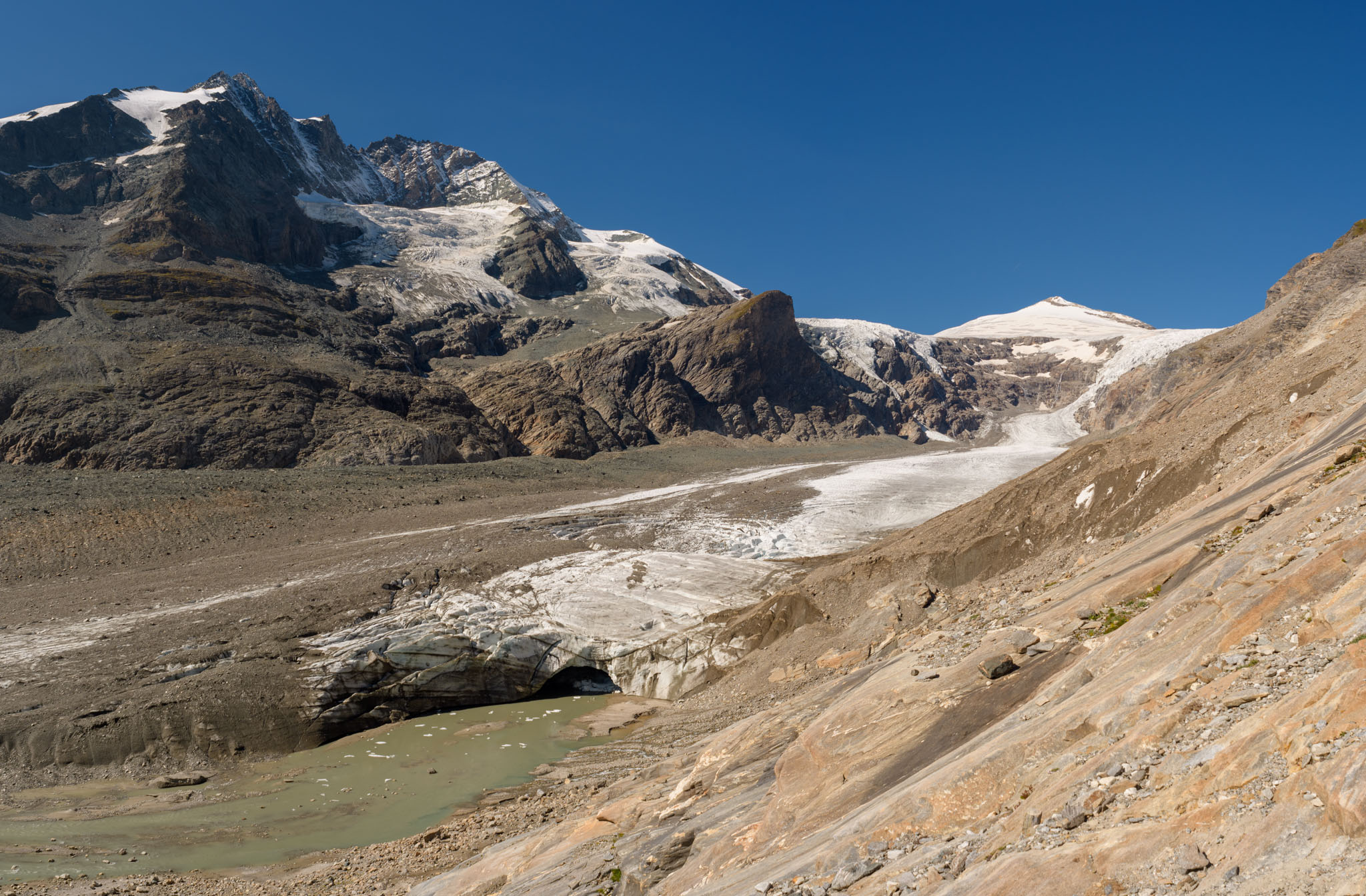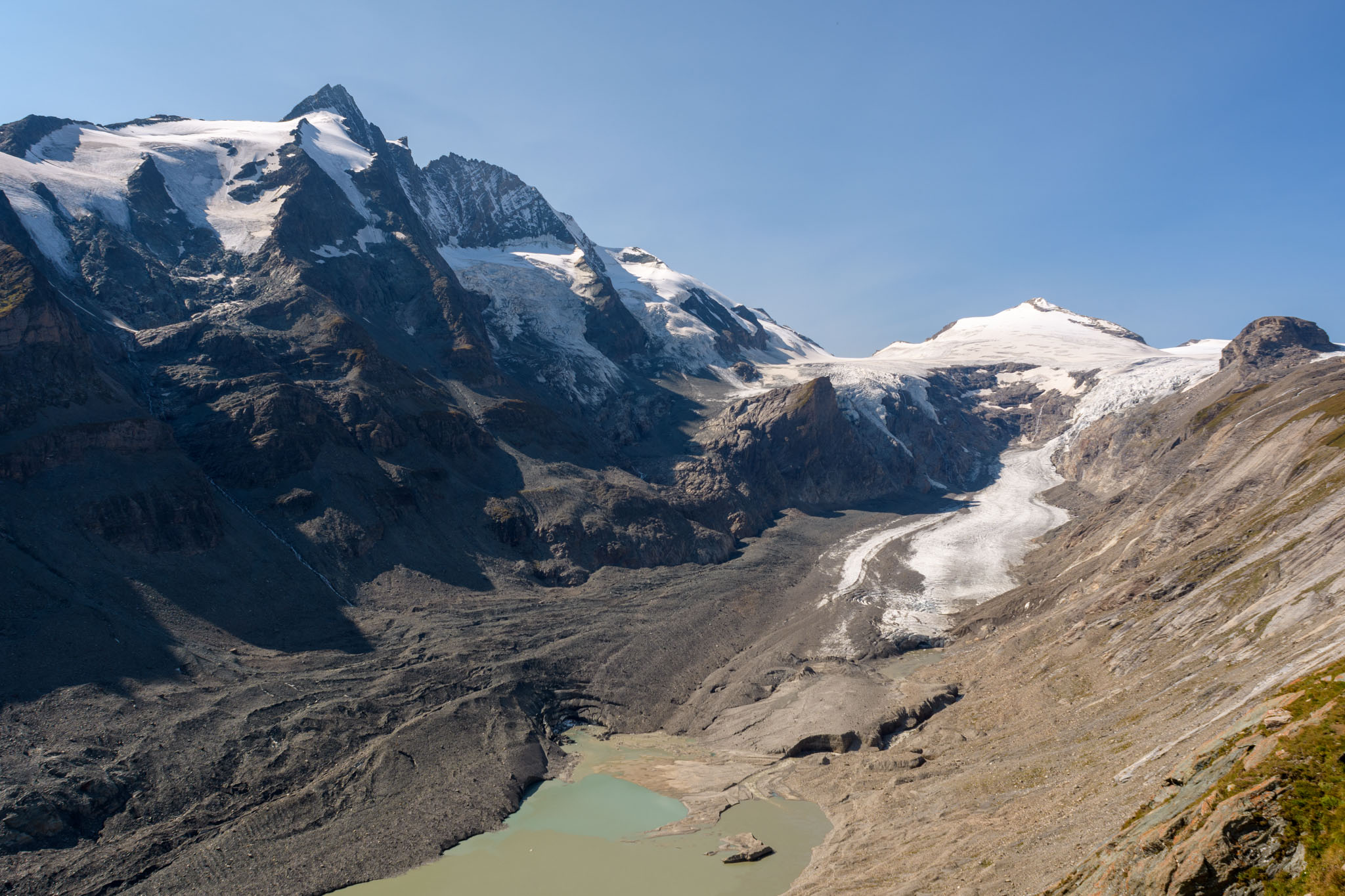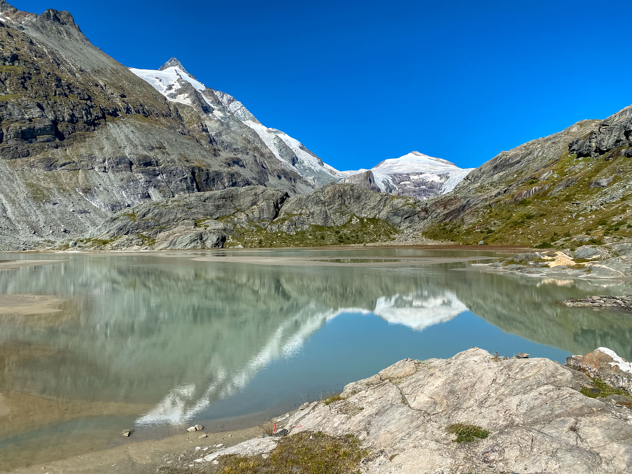 Dort hat man einen wunderbaren Blick auf den Gletschersee, den Großglockner und den Gletscher, auch wenn der schon deutlich kleiner ist als früher. Der Gamsgrubenweg war leider nur 1 km begehbar. Danach ist er wegen Steinschlaggefahr gesperrt. Man sieht den Gletscher trotzdem gut.