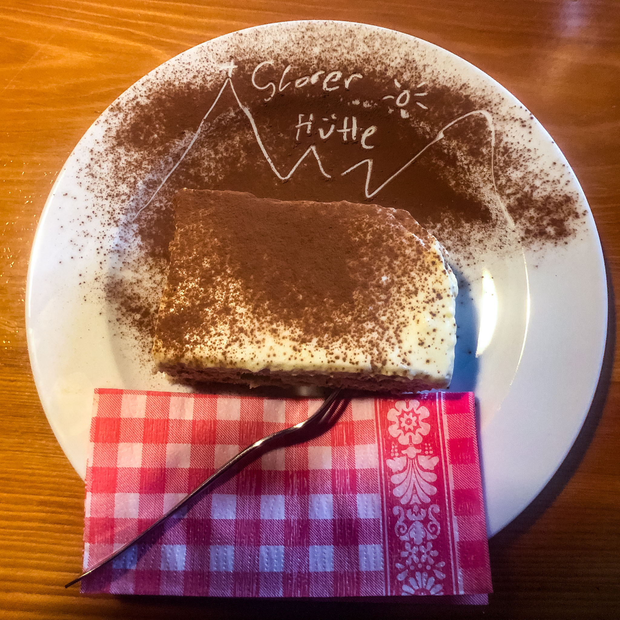 Um kurz vor 12 Uhr sind wir an der Glorer Hütte – von Regen keine Spur. Vor der Hütte ist es schön sonnig, es pfeift jedoch ein eisiger Wind, so dass wir zuerst unsere Jacken herausholen und dann trotzdem schon am Nachmittag in die Hütte umziehen. (Gegen 17 Uhr beginnt es dann tatsächlich zu hageln.)