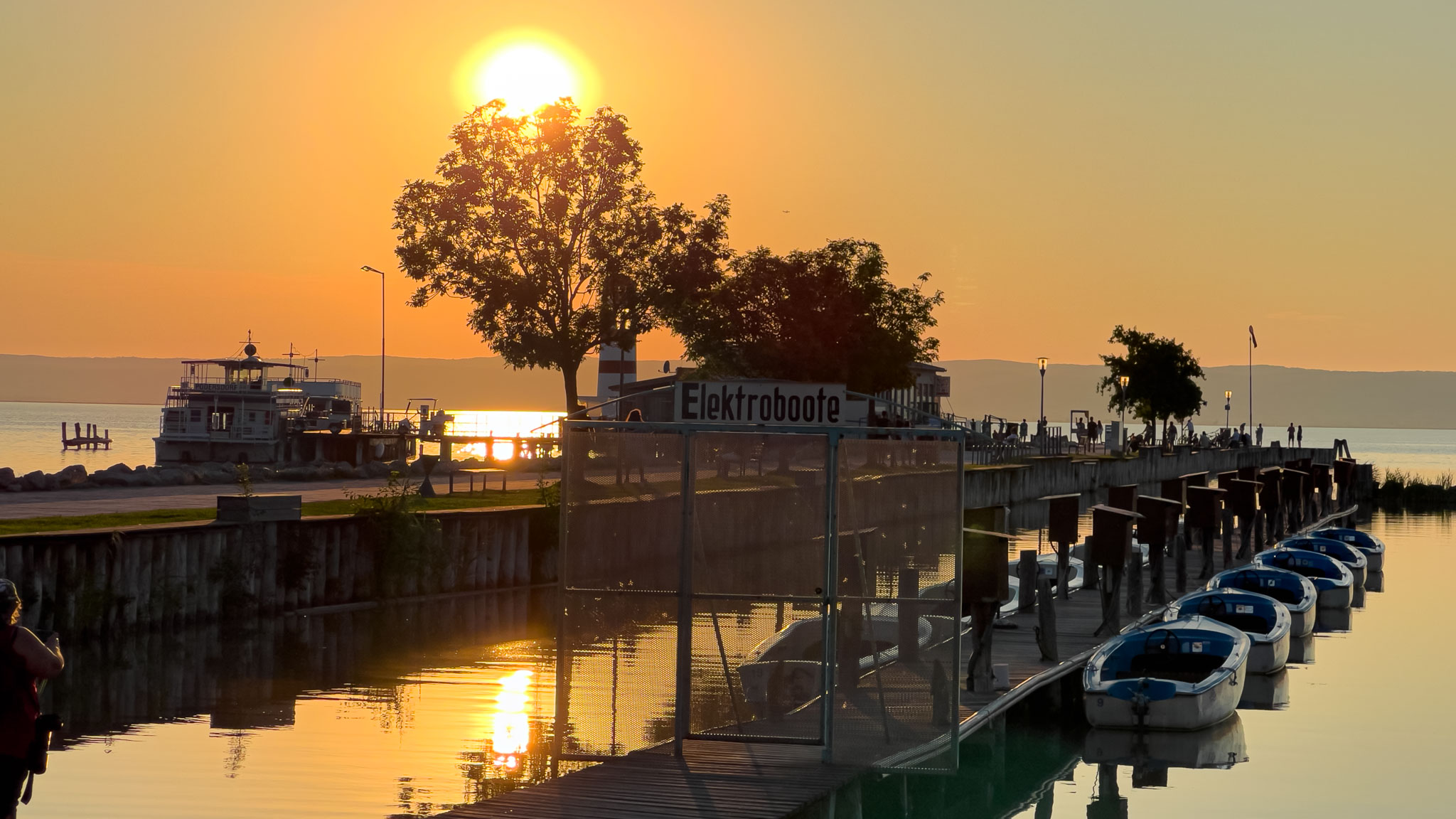 Und wenn wir schon zur richtigen Zeit da waren, dann haben wir selbstverständlich auch noch das Motiv schlechthin des Neusiedler Sees fotografiert: den Podersdorfer Leuchtturm bei Sonnenuntergang.