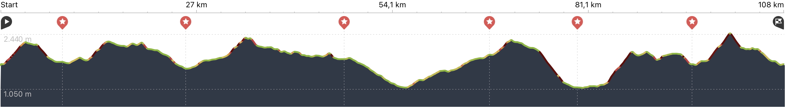 Die Tour war – so wie wir sie letztendlich gemacht haben, inkl. dem Extratag auf den Großen Rosennock – rund 100 km lang und überwand knapp 5.900 Höhenmeter (5.300 m bergab). Der tiefste Punkt war Bad Kleinkirchheim auf 1.065 m, der höchste war der Große Rosennock mit 2.440 m.