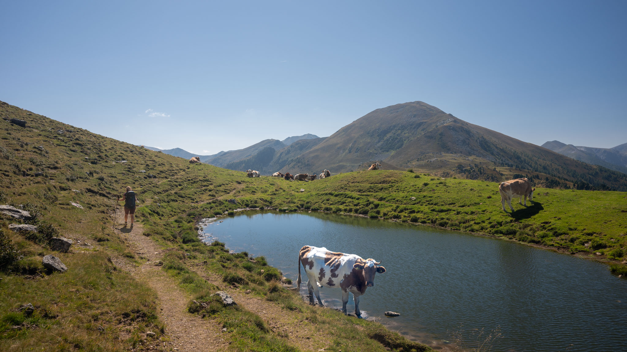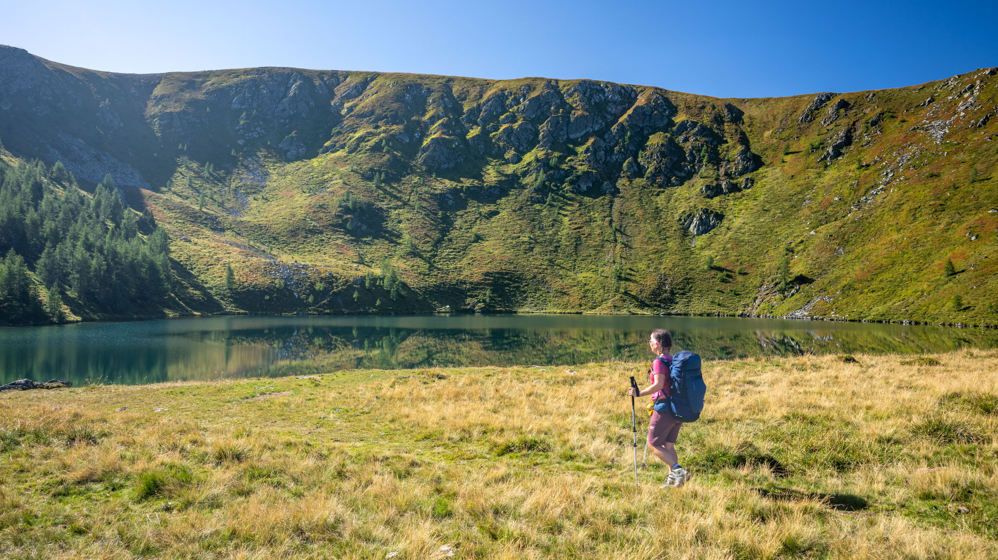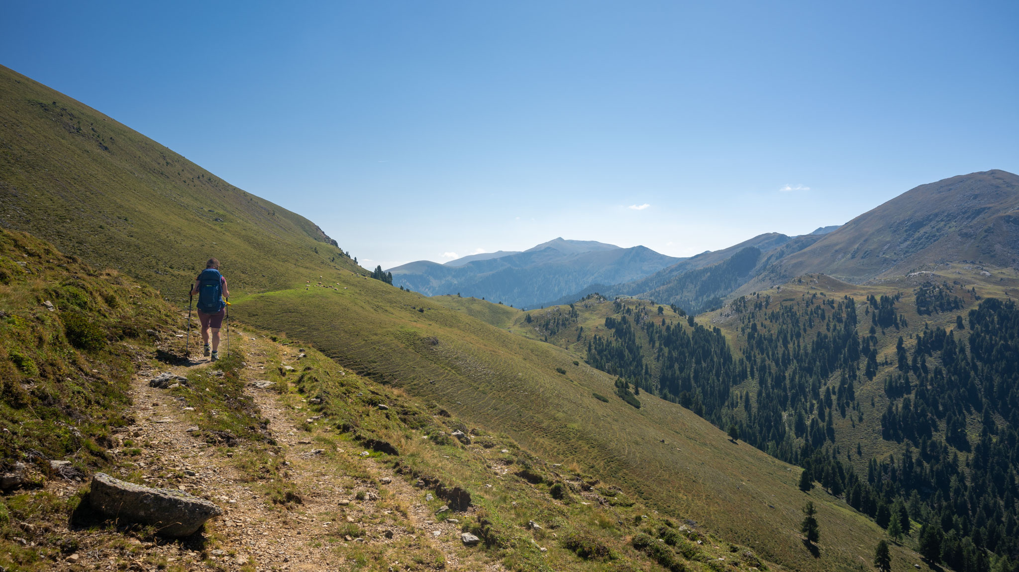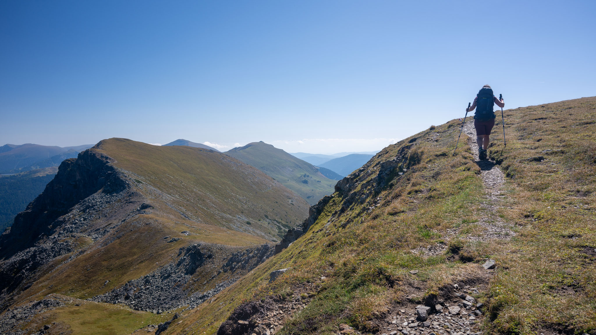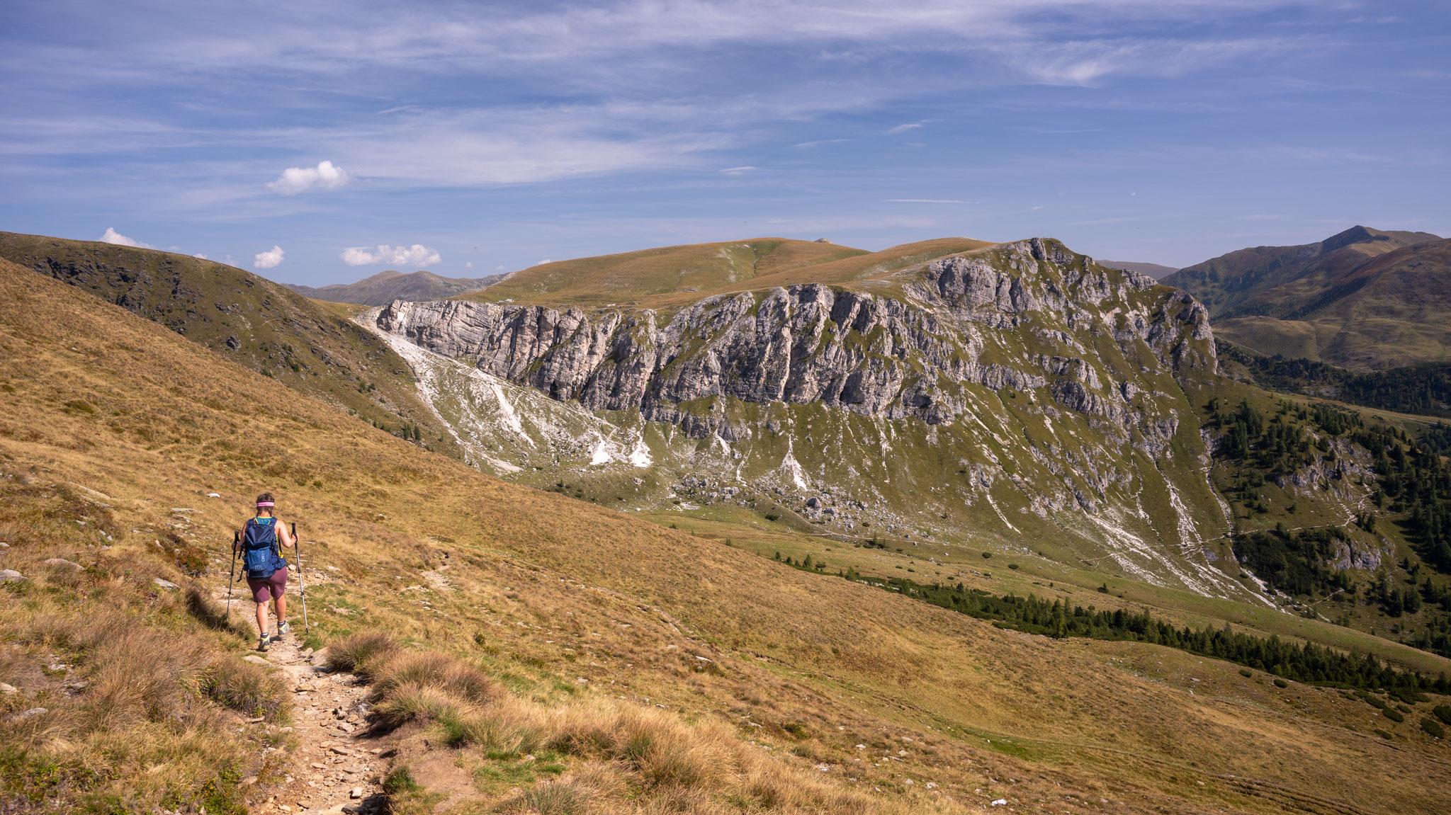 Maria war noch nie in den Nockbergen, ich zusammen mit einem Studienfreund zu Unizeiten das letzte Mal. Es war also mal wieder ein neues Wandergebiet für uns. Dabei durften wir feststellen, dass die Nockberge – obwohl sie nur wie sanft gerundete Graskuppen (eben "Nocken") aussehen – durchaus ziemlich steil und teilweise doch ganz schön felsig sind.