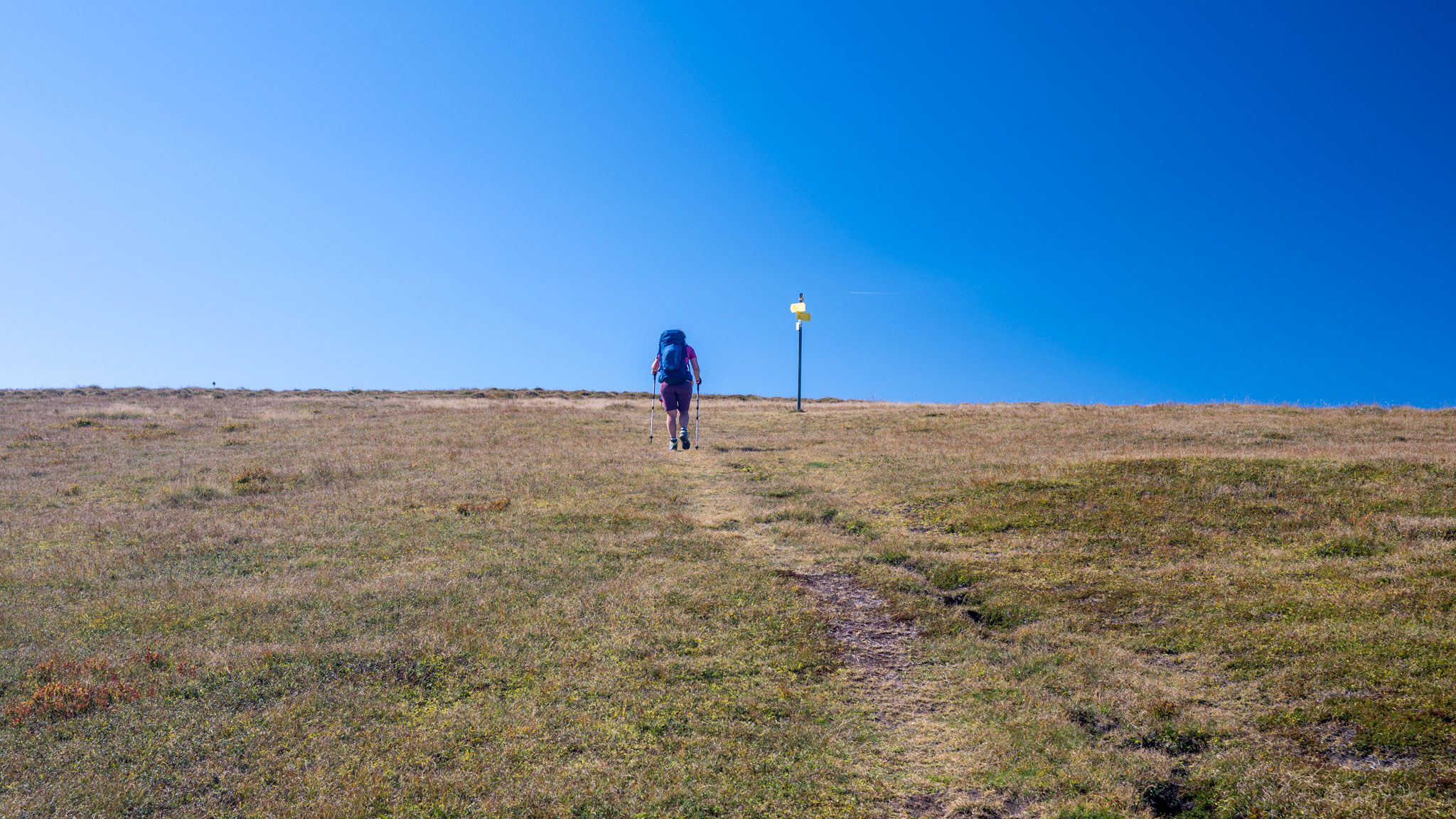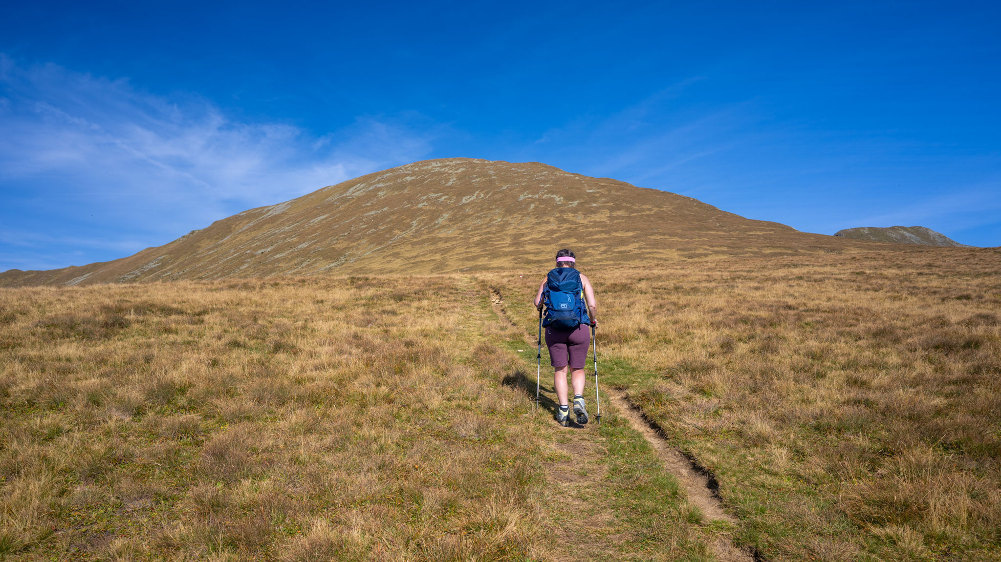 Weiter ging es über einen langen Bergrücken, der angenehm zu wandern war und später in einen steilen Abstieg abfiel, der aber ebenfalls angenehm gegangen werden konnte.