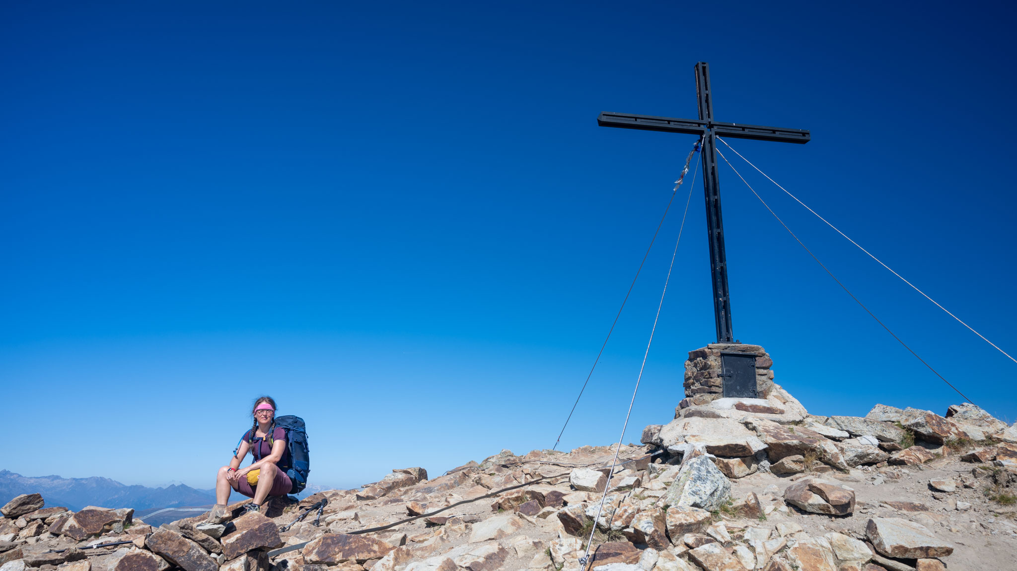 Nach der gestrigen Monsteretappe stand heute erneut eine Etappe mit mehr als sieben Stunden reiner Gehzeit auf dem Plan. Da dabei auch knapp 1.000 kniebelastende Höhenmeter bergab zu bewältigen gewesen wären und Maria seit dem B2RUN etwas mit Knieproblemen zu kämpfen hat, haben wir gestern Abend überlegt, wie wir die Tour entschärfen können. Schließlich ist die wichtigste Eigenschaft in den Bergen, seine Grenzen zu kennen und keine unnötigen Gefahren einzugehen. Drei abgespeckte Alternativen waren möglich: