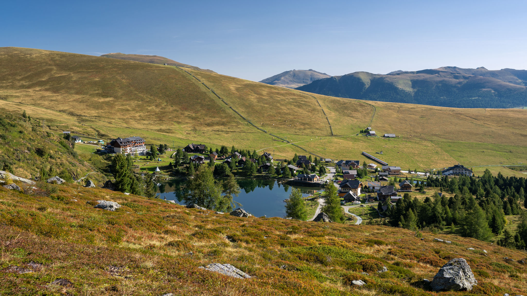 Route: Bad Kleinkirchheim/Obertschern (1.150 m) – Priedröf (1.963 m) – Speichersee Nockalm – Wiesernock (1.974 m) – Brunnachhöhe (1.902 m) – Erlacherhaus (1.655 m)