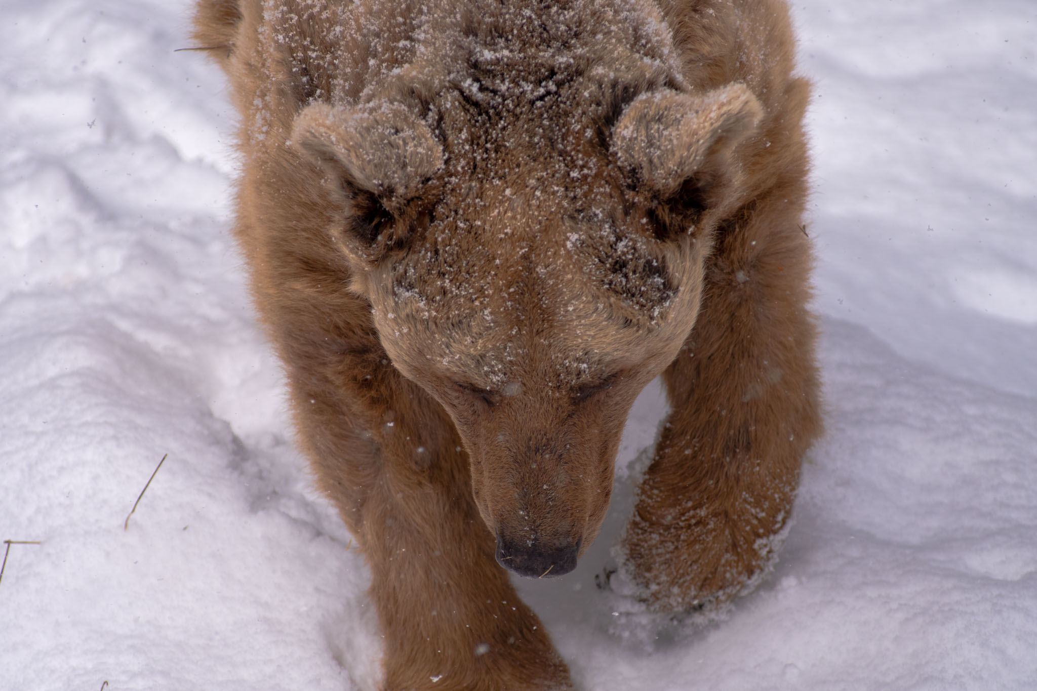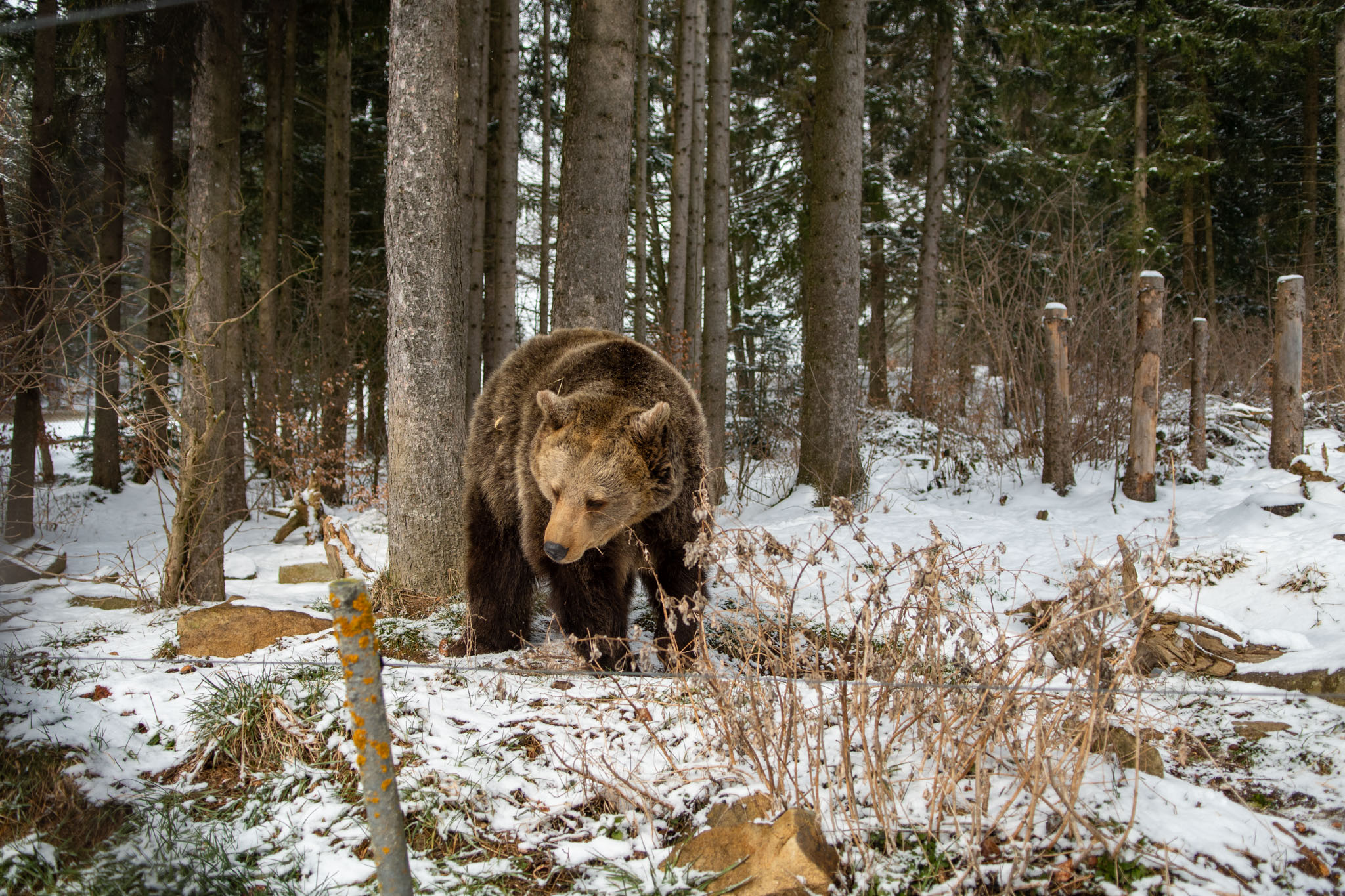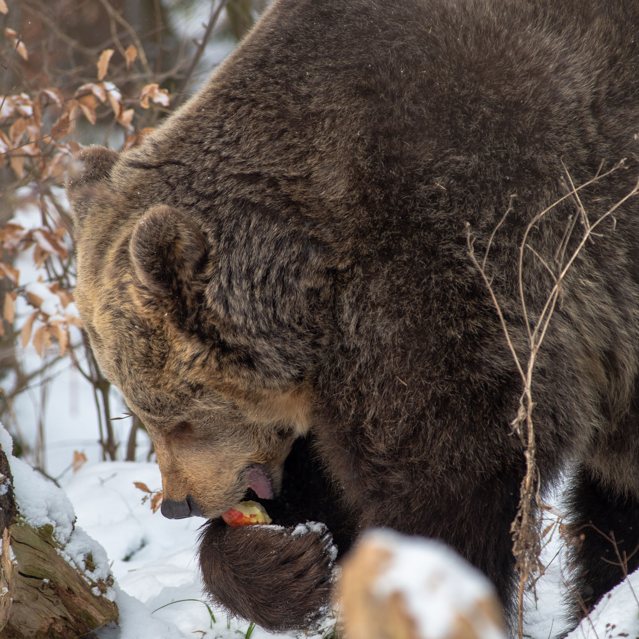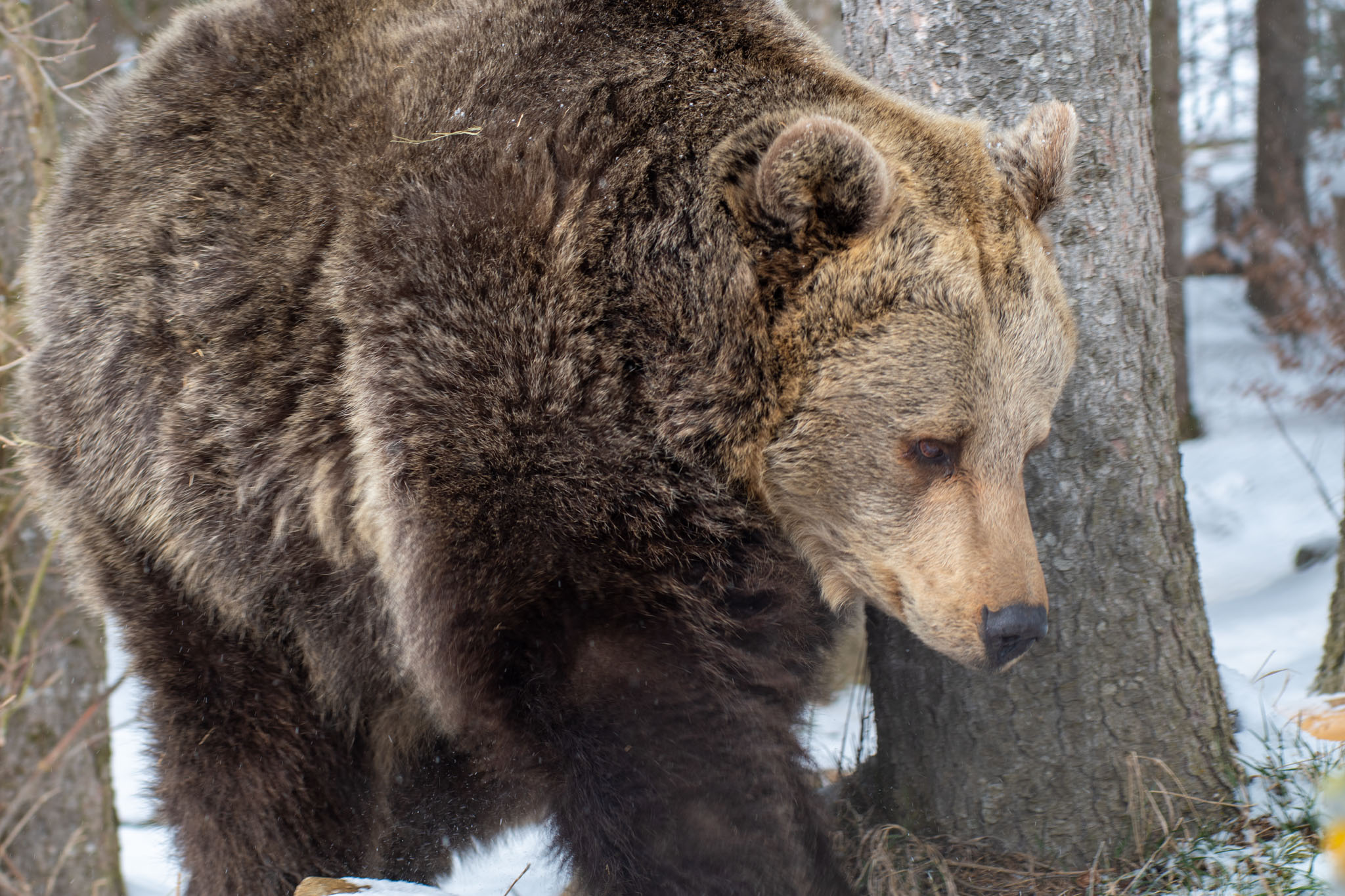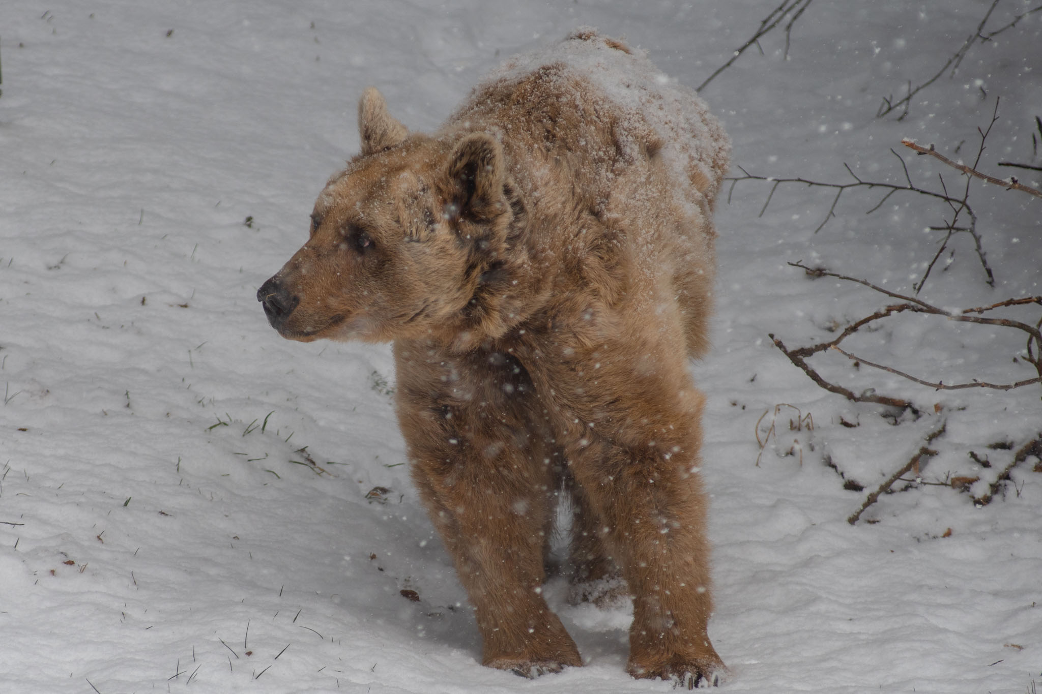Der Samstag, 20. März, war der erste Tag in diesem Jahr, an dem der Bärenwald Arbesbach im niederösterreichischen Waldviertel nach der Winterpause wieder geöffnet hatte und wir haben dort die erste private Führung des Jahres mitgemacht. Dort finden Bären aus schlechter Haltung (z. B. Zirkus- und Tanzbären) ein naturnahes und tiergerechtes Zuhause. Da es schneite, war zu befürchten, dass wir keine aktiven Bären sehen werden. Umso größer war unsere Freude, dass wir gleich zwei der vier Bären richtig aktiv beobachten konnten.